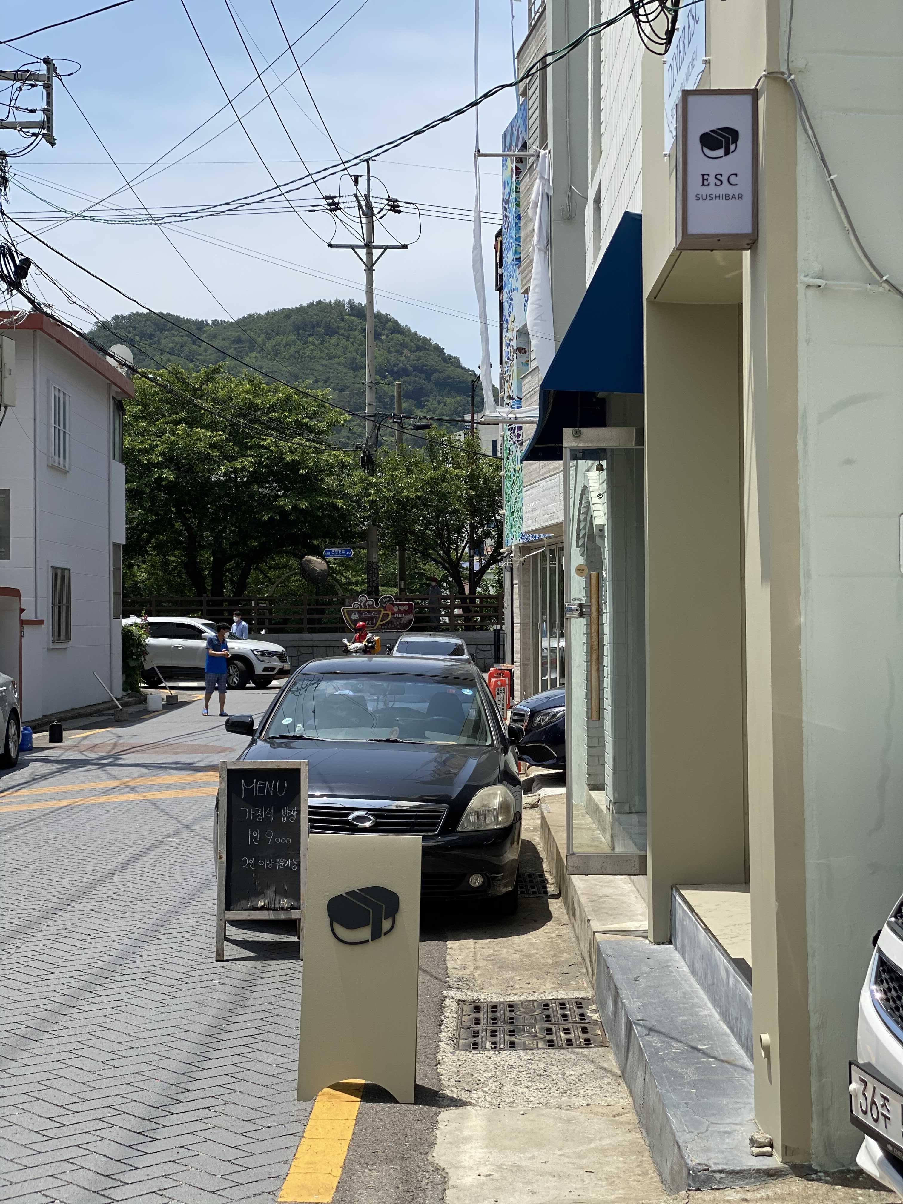 런치 오픈시간에 맞추어 방문. 햇볕이 강렬한 게 진짜 여름인가 보다. 간판에 상호를 ESC로 표기 해 놨다. 탈출? 키보드에서 항상 보는 익숙한 표기를 상호화했다.