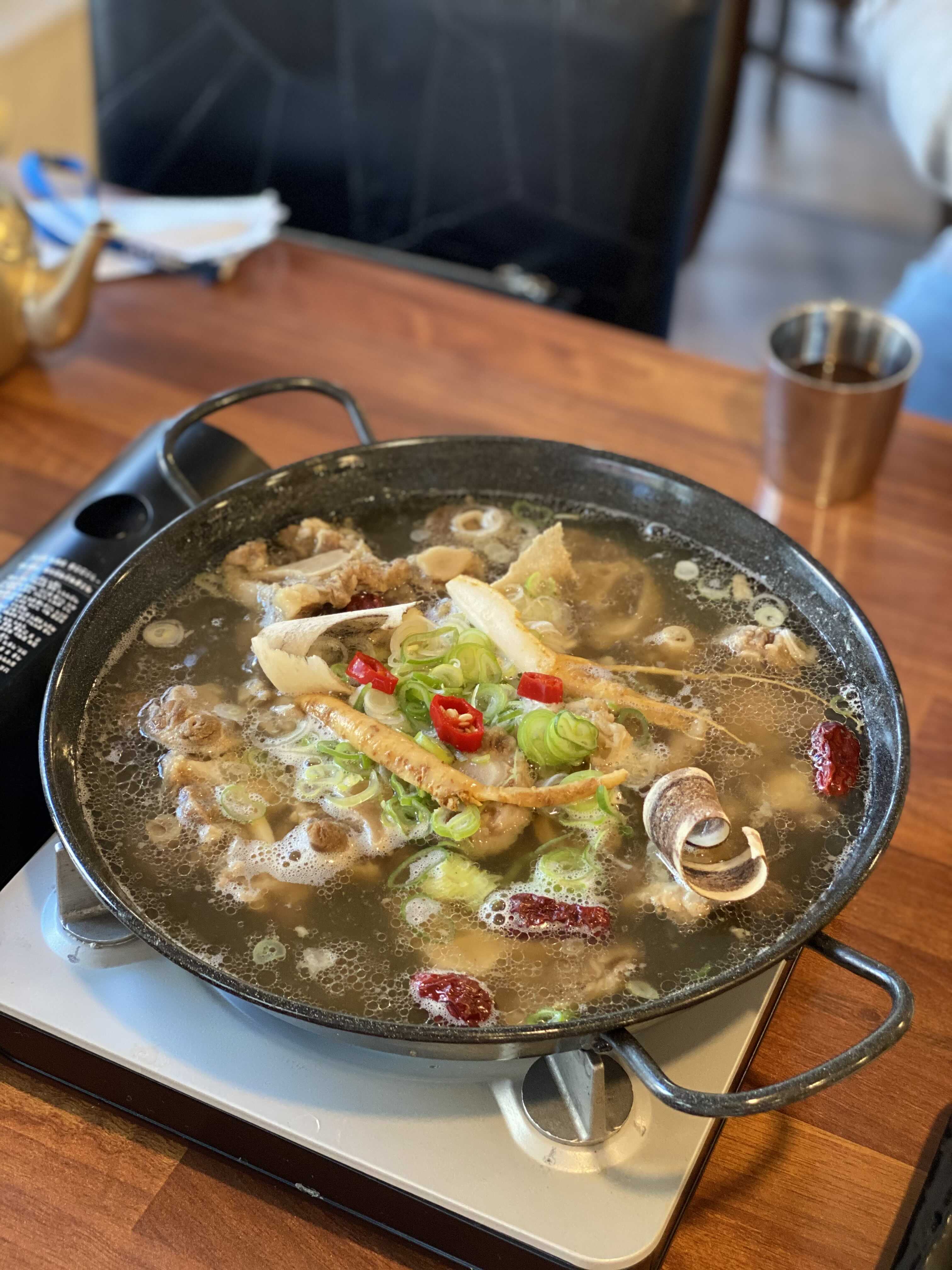 한우한마리꼬리수육. 소꼬리, 특히 한우꼬리는 가격대가 높은 편이다. 국물이 적당히 있는 전골식인데 구수하고 인삼향도 은근하다.