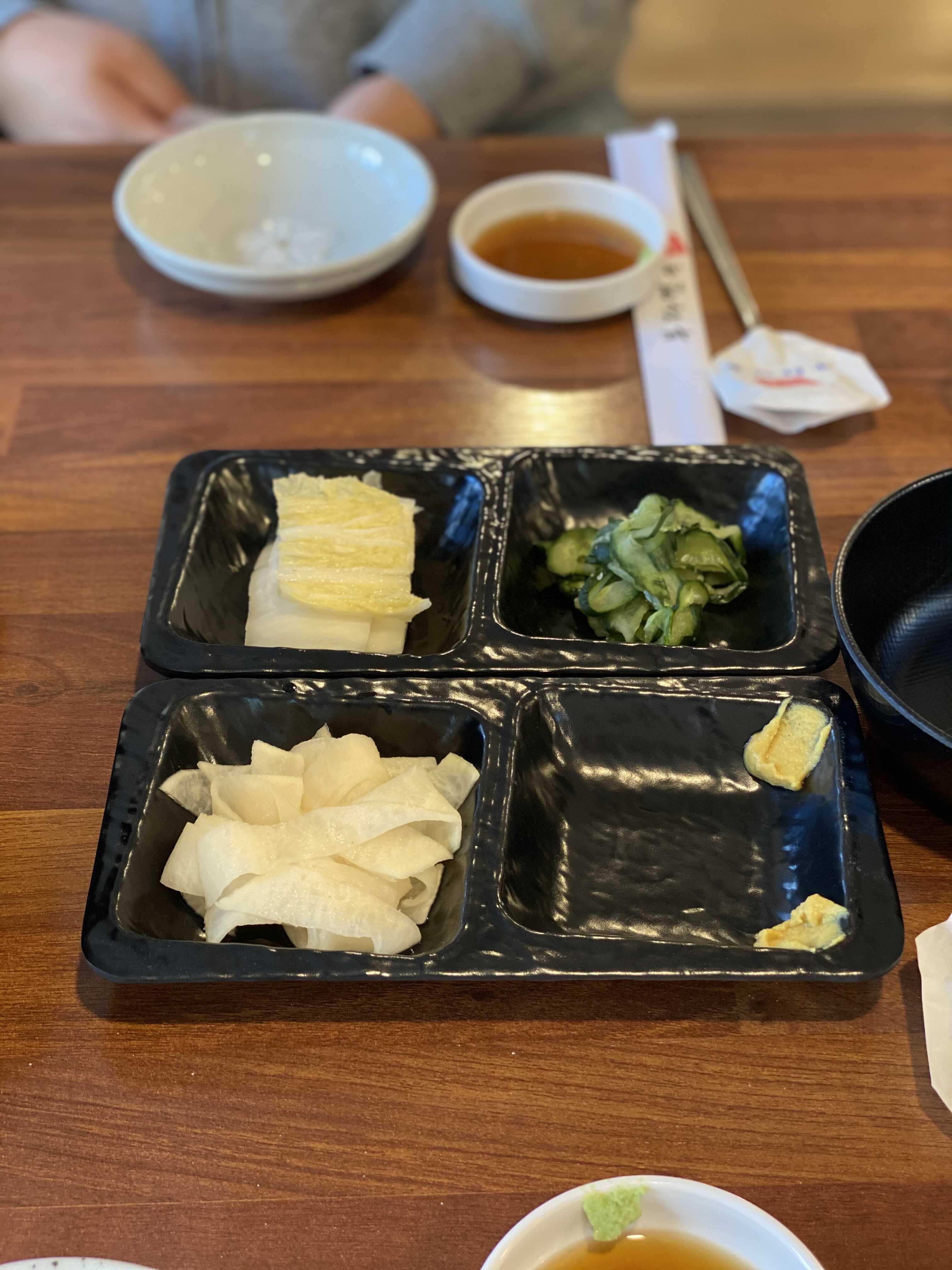 기호에 맞게 냉면에 넣어 먹을 수 있는 오이, 배추, 무절임, 겨자는 따로 담아준다.