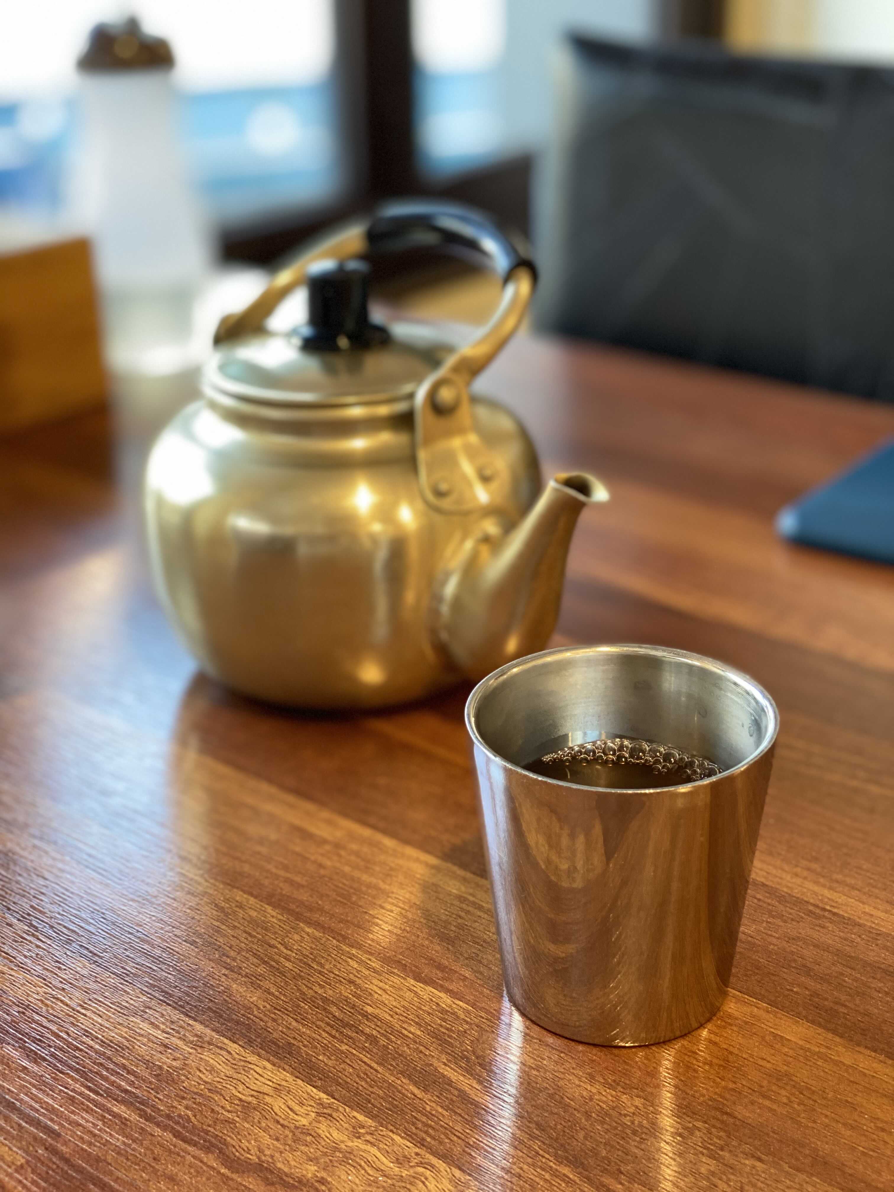 따뜻한 면수 한 잔으로 속을 데워준다. 육수와 다른 구수한 맛이 깔끔하다.