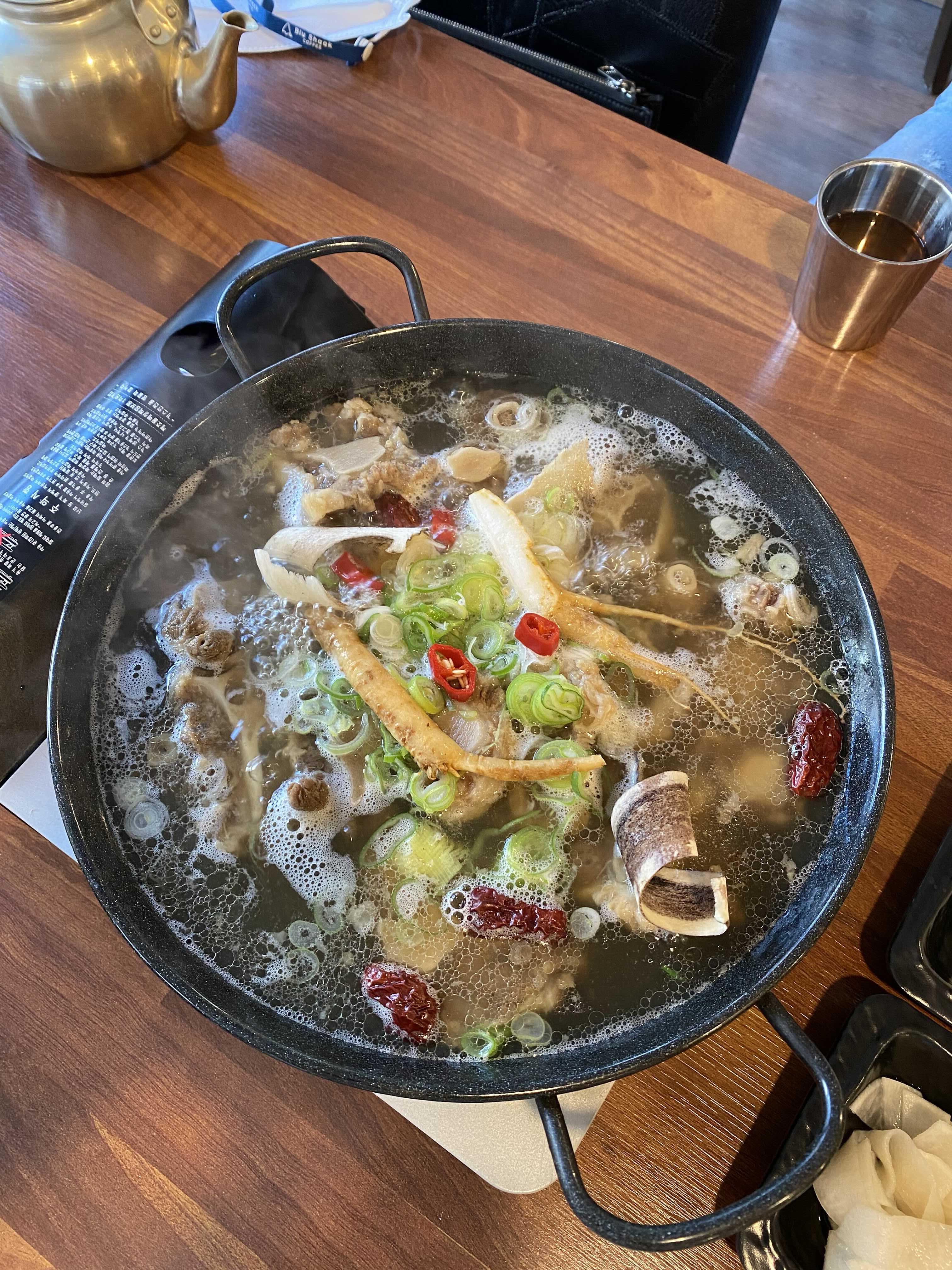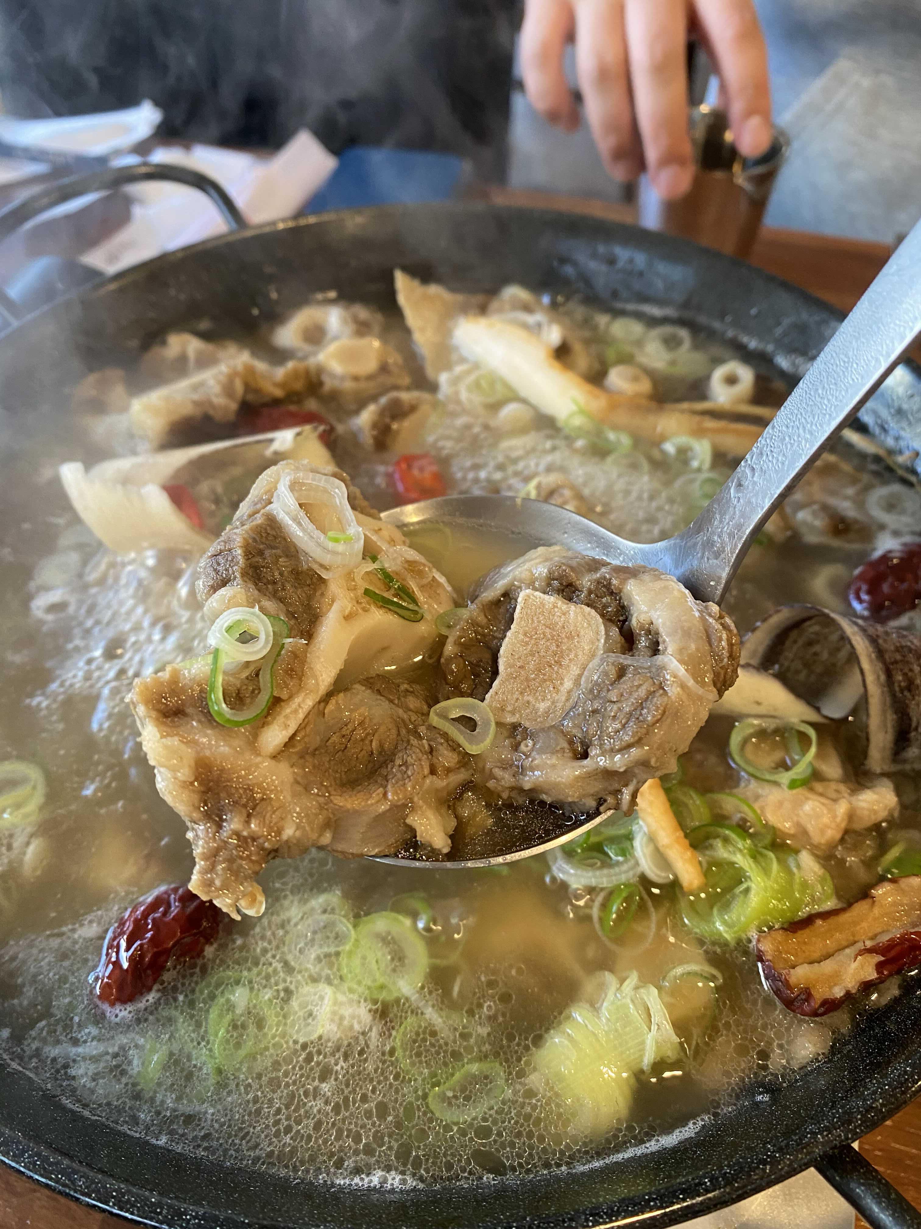 한우한마리꼬리수육. 소꼬리, 특히 한우꼬리는 가격대가 높은 편이다. 국물이 적당히 있는 전골식인데 구수하고 인삼향도 은근하다.