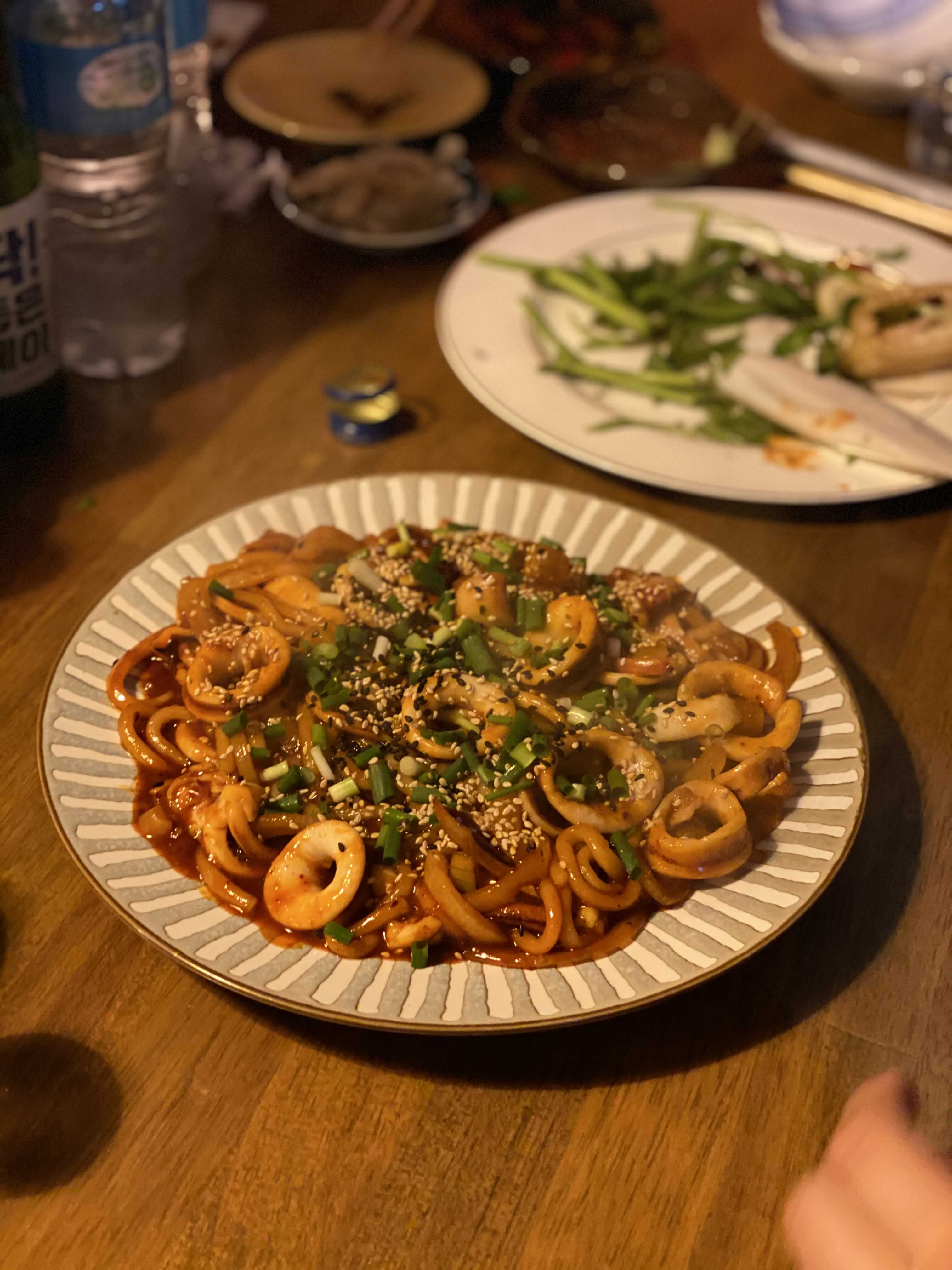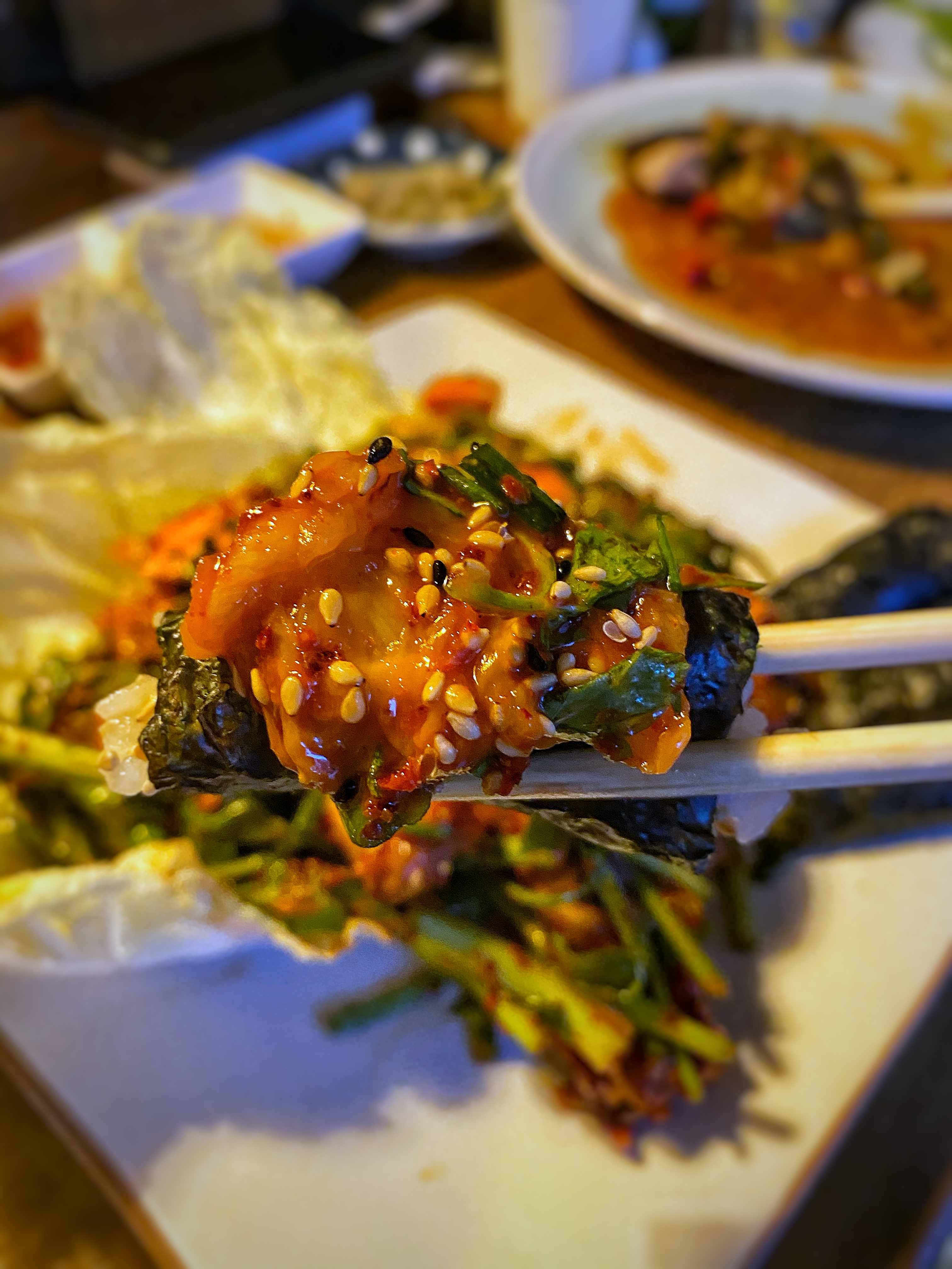 내가 주문한 멍게무침. 집집마다 특색이 있어서 어떤 스타일의 멍게무침이 나올까 했는데 멍게만 무친건 아니고 미나리와 당근 등 채소와 함께 무쳤다. 멍게향도 진하게 감돌고 식감도 살아 있어 딱 좋은 소주안주.