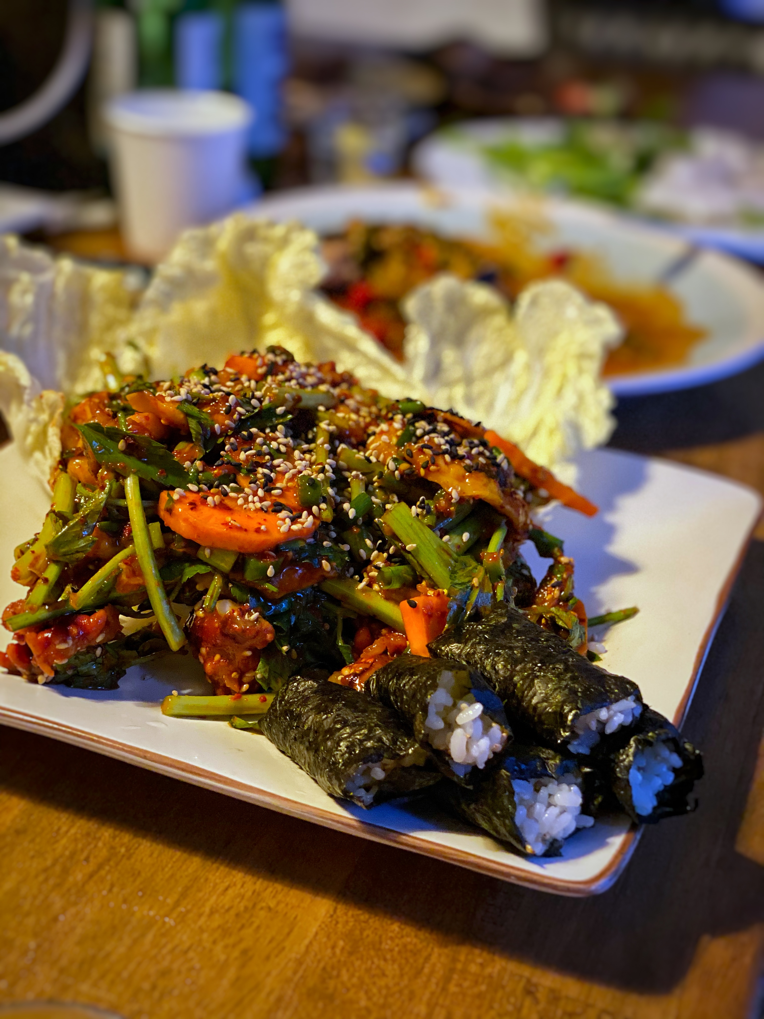 밥을 갓김치로 감싸주고 참치와 땡초를 올린 메뉴. 역시나 탄수화물러버를 위한 메뉴였다.