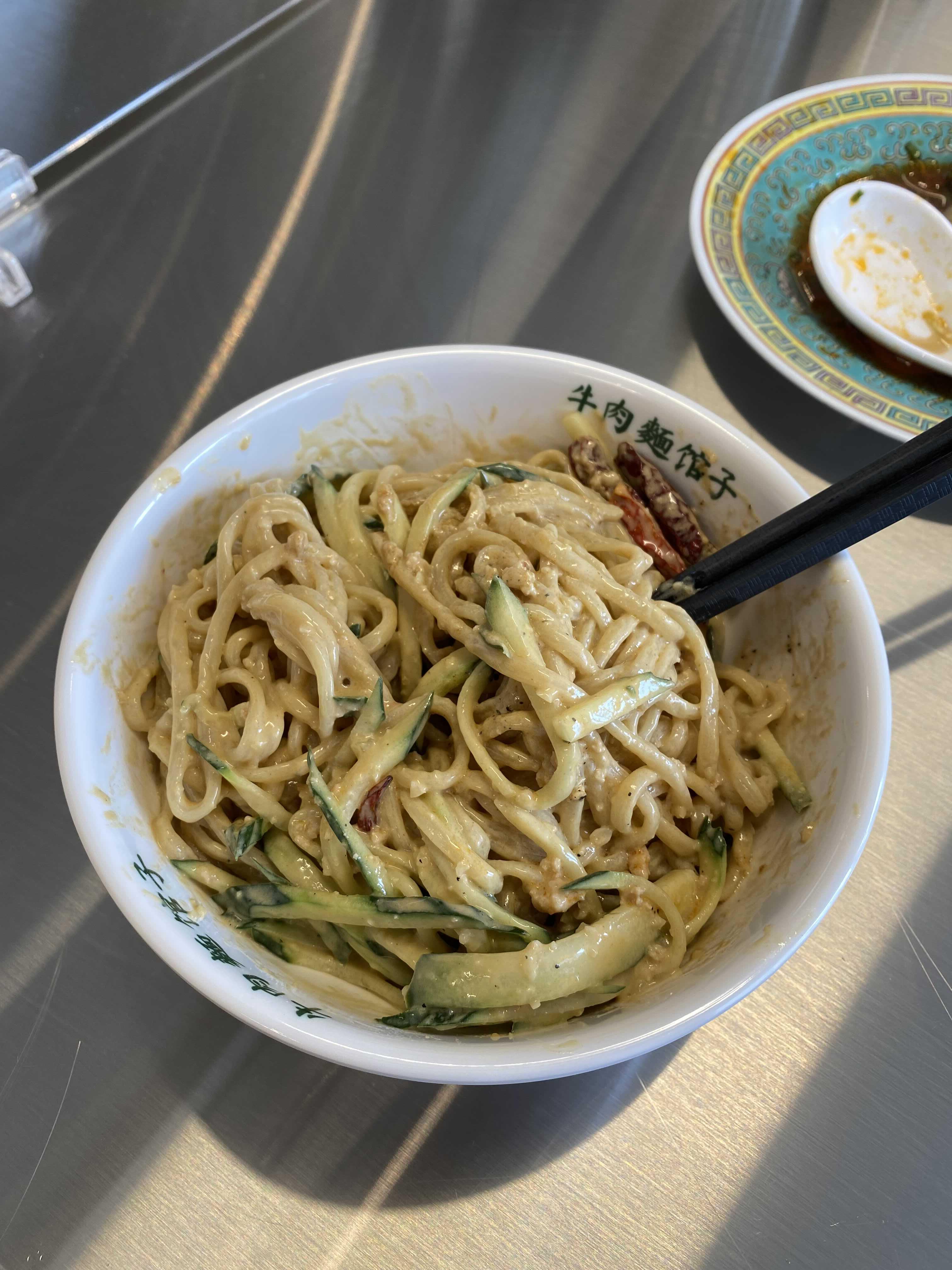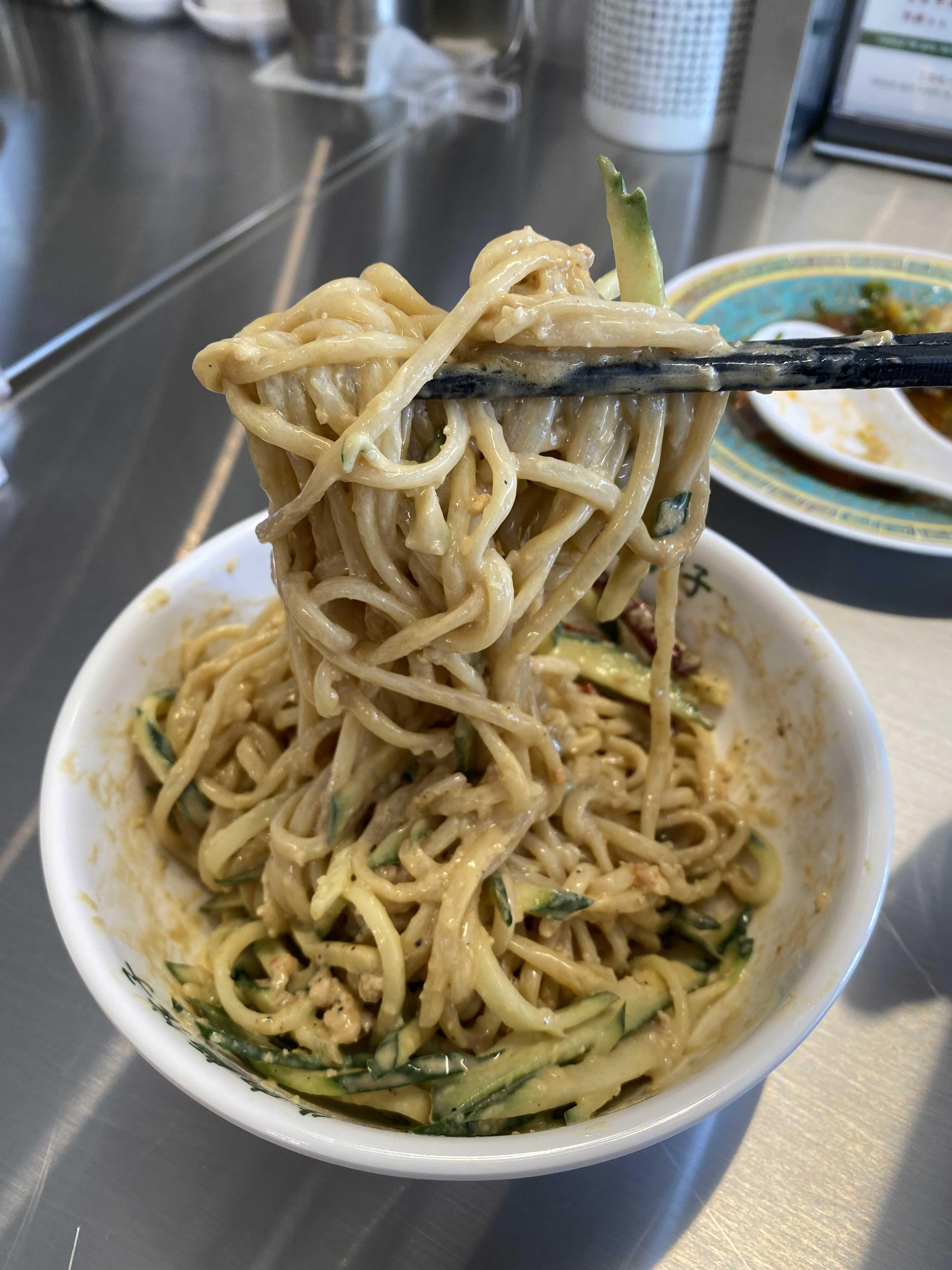 탱글한 면발에 땅콩소스가 뻑뻑하게 묻어있다.