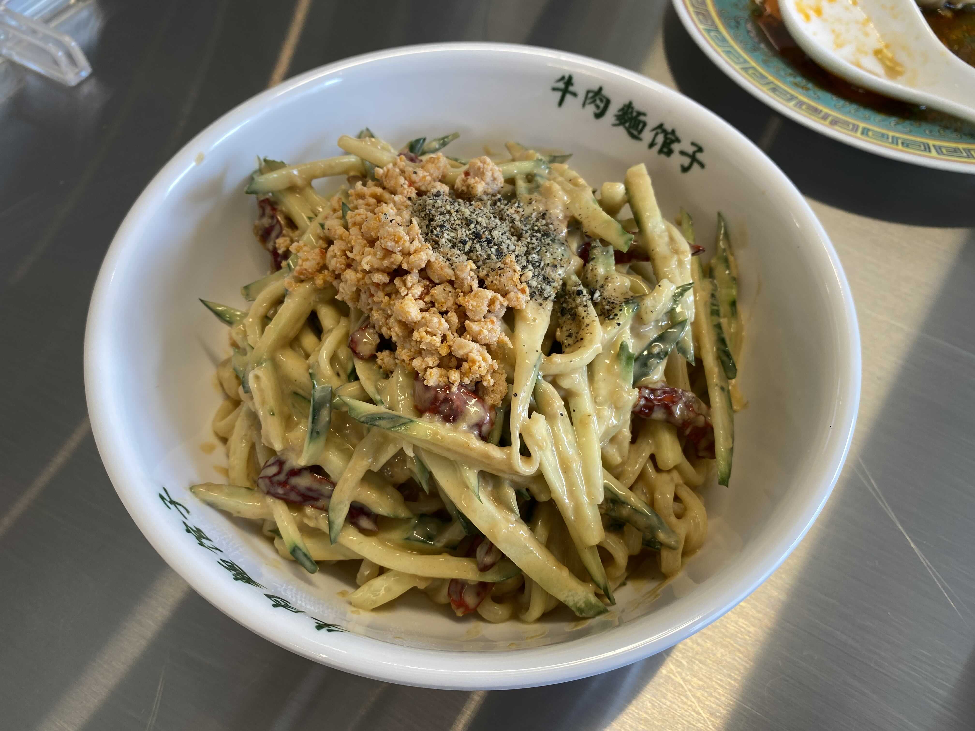 땅콩소스를 이용한 중화비빔면이라는 량멘.
