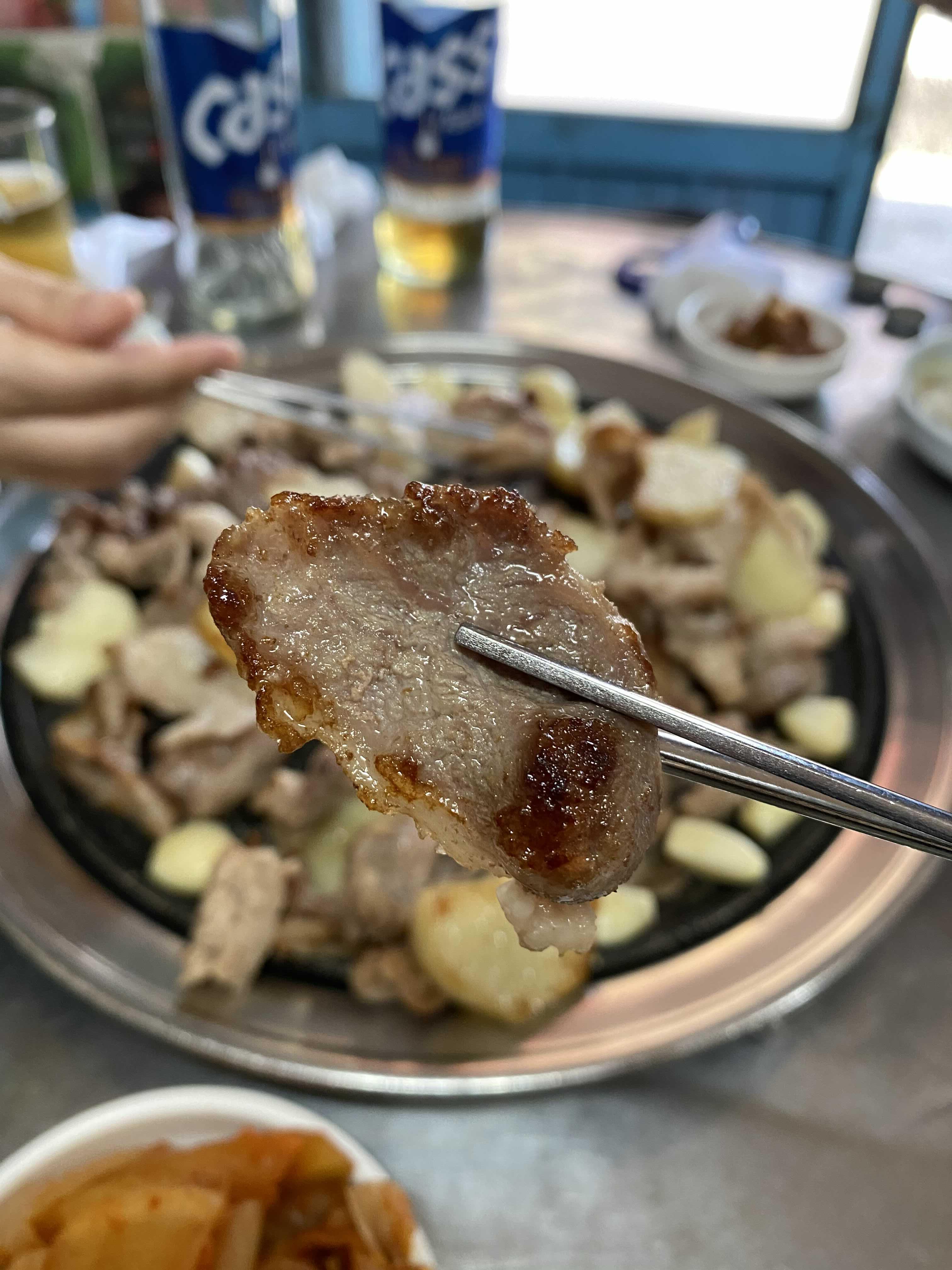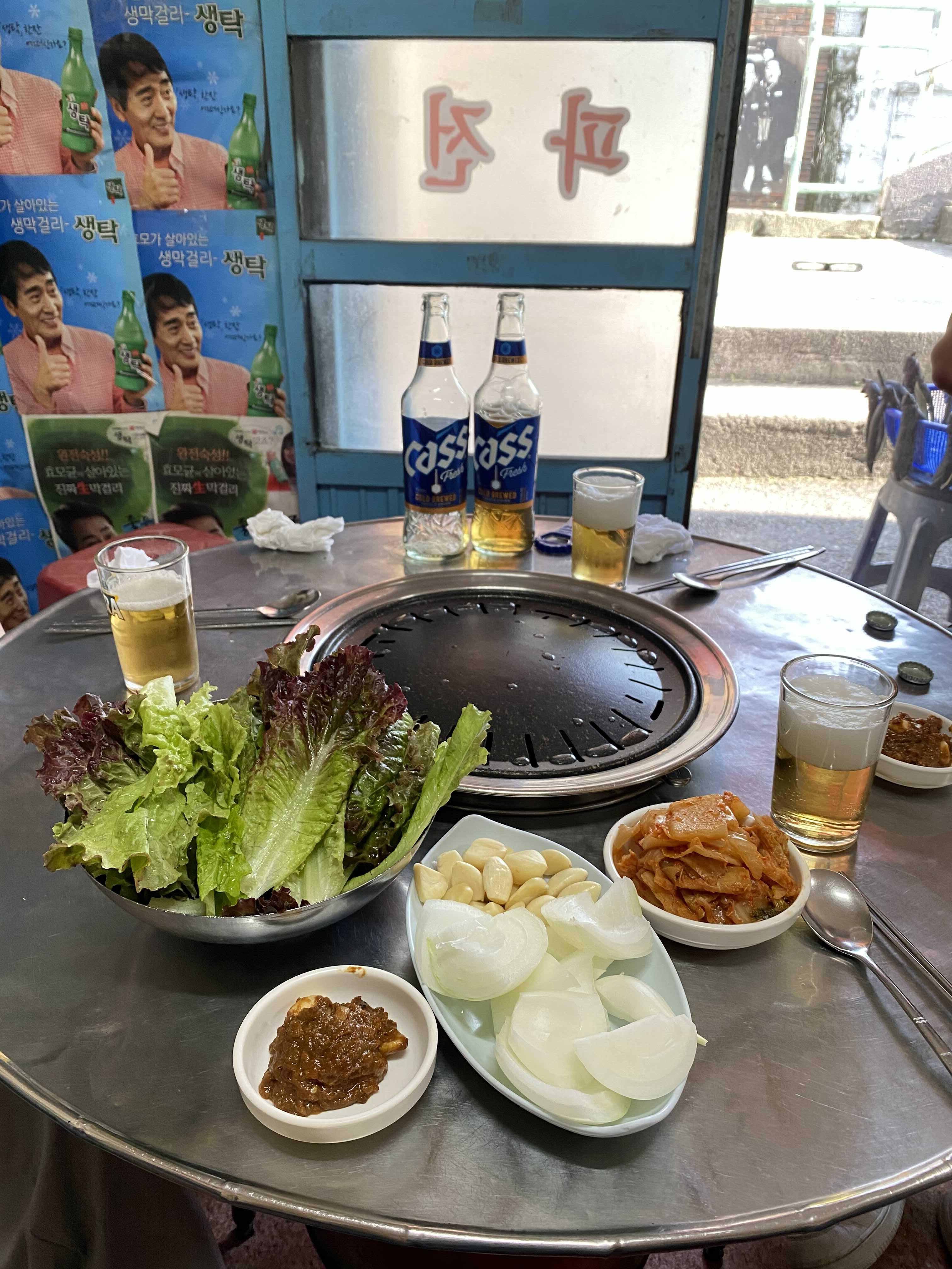 고소한 냄새를 풍기는 고기를 앞에 두니 회가 동한다. 시원한 맥주 두어잔에 취기도 올라온다.