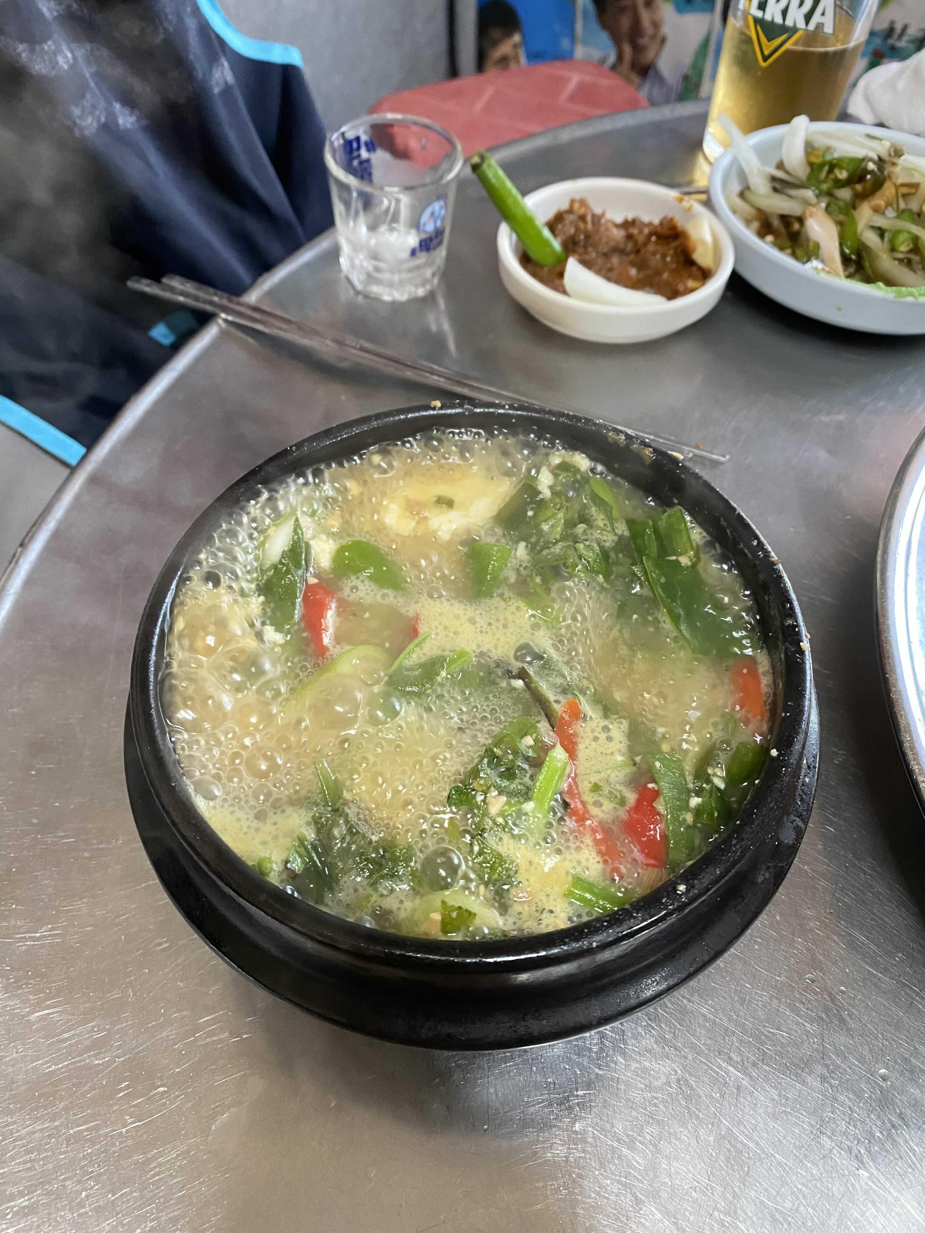 두부가 투박하게 들어있다. 좀 묽긴 했지만, 시골에서 할머니가 끓여주는 그런 그런 된장찌개 맛이다.