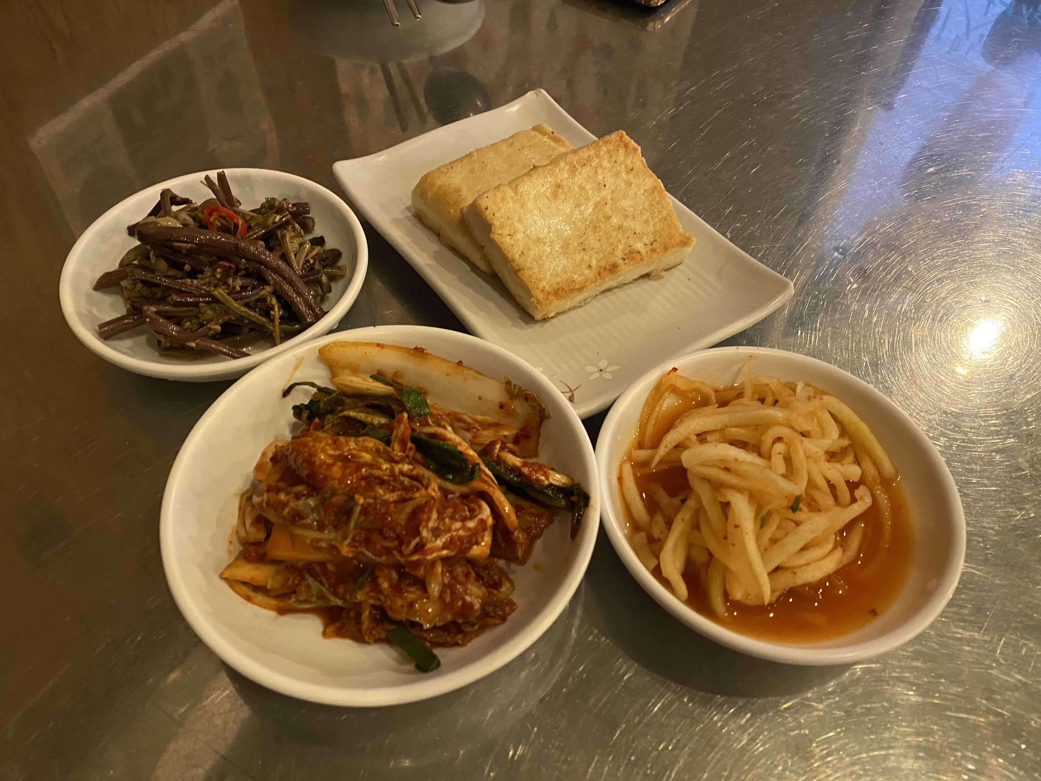 사실 이 집 기본 안주도 술 한잔하기 참 좋다. 돼지기름에 구운 두부는 따뜻하고 고소하고, 나물종류는 막걸리랑 참 잘 어울린다.