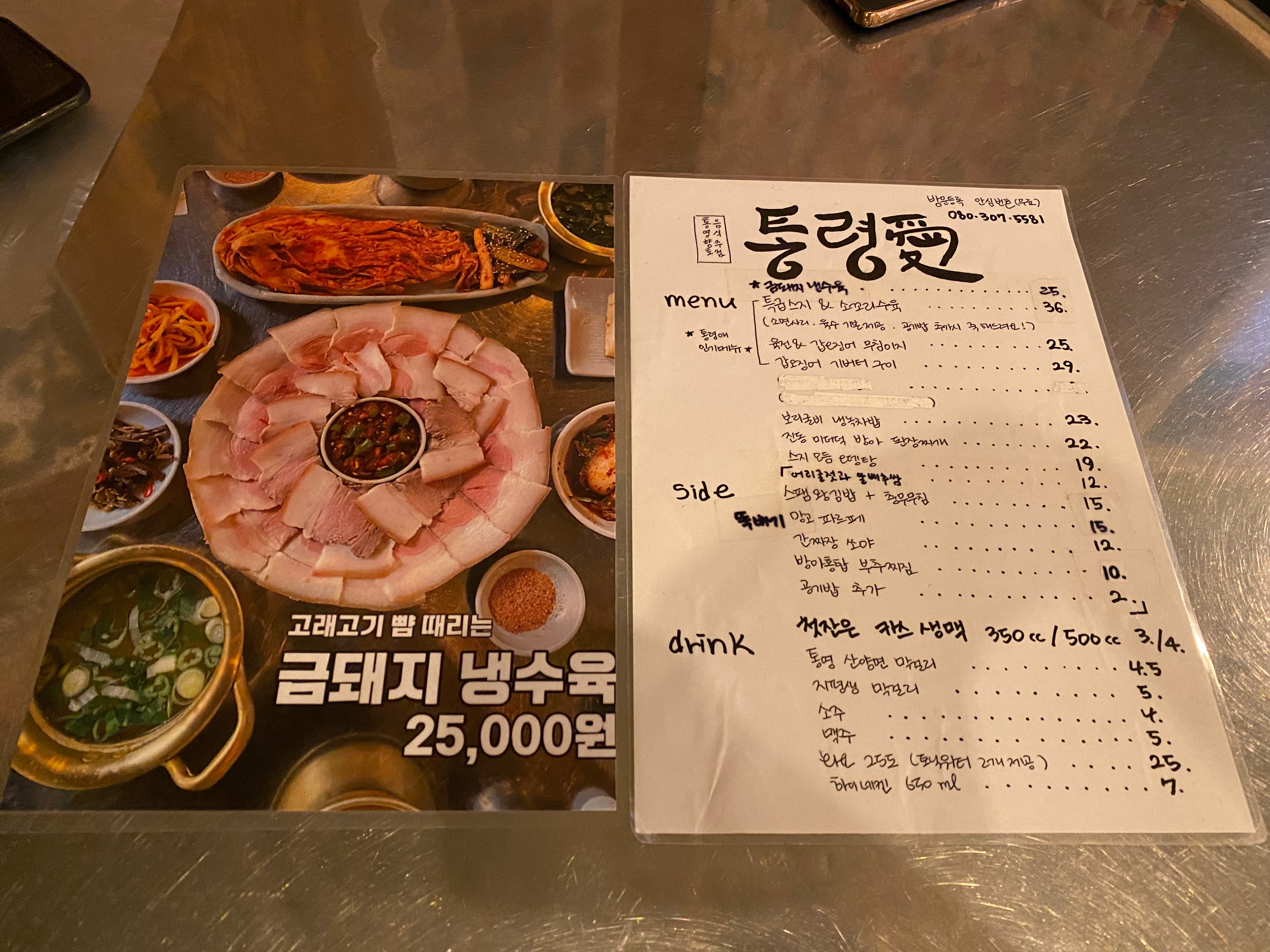 최근 통령애 메뉴판