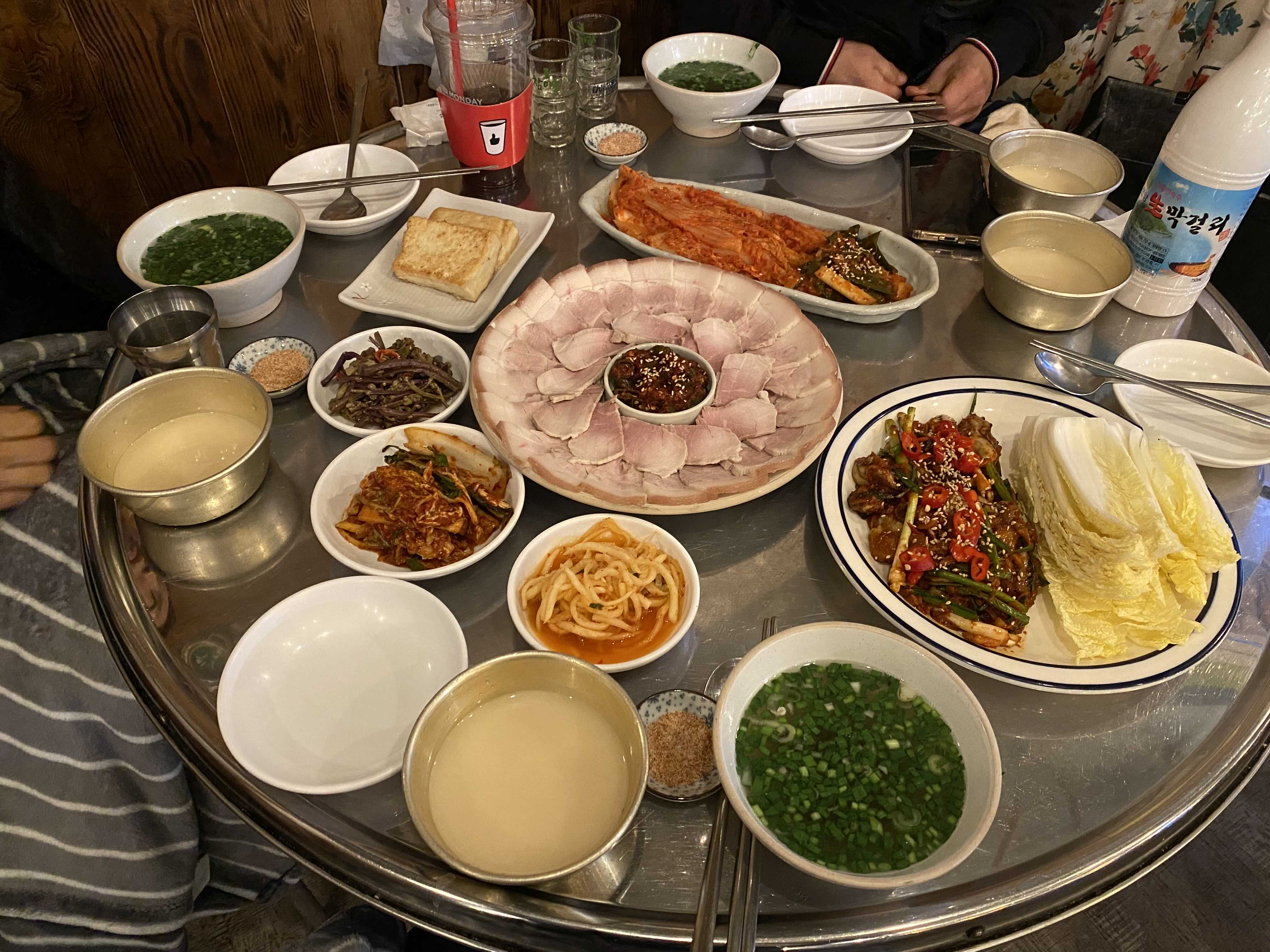 사실 이 집 기본 안주도 술 한잔하기 참 좋다. 돼지기름에 구운 두부는 따뜻하고 고소하고, 나물종류는 막걸리랑 참 잘 어울린다.
