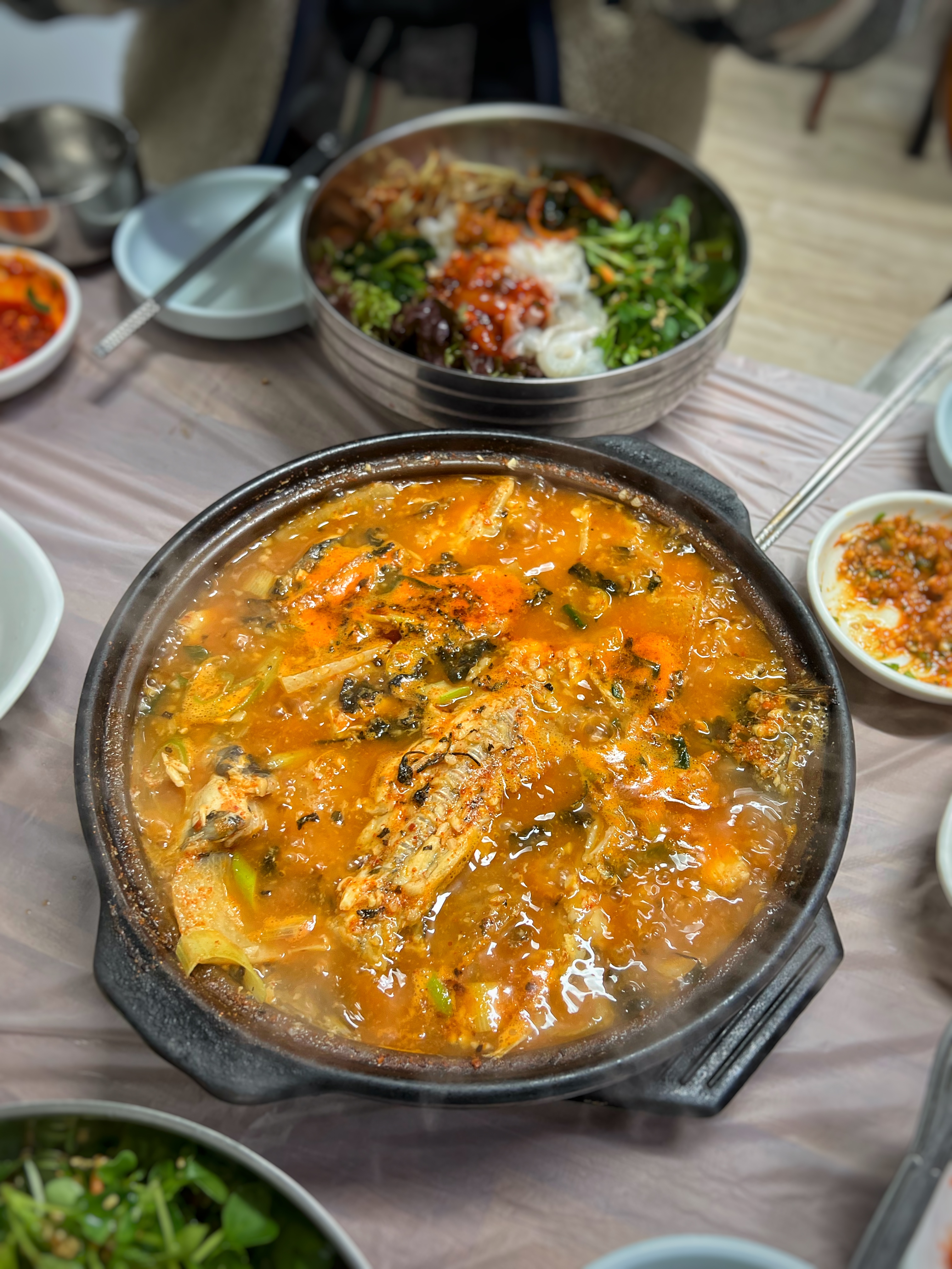매운탕에는 서더리가 넉넉하게 들어있다. 취향에 따라 제피가루를 넣어 먹어도 맛이 좋다. 개인적으로 매운탕을 먹을 때 만큼은 제피가루를 팍팍 넣어서 먹는 걸 선호한다.