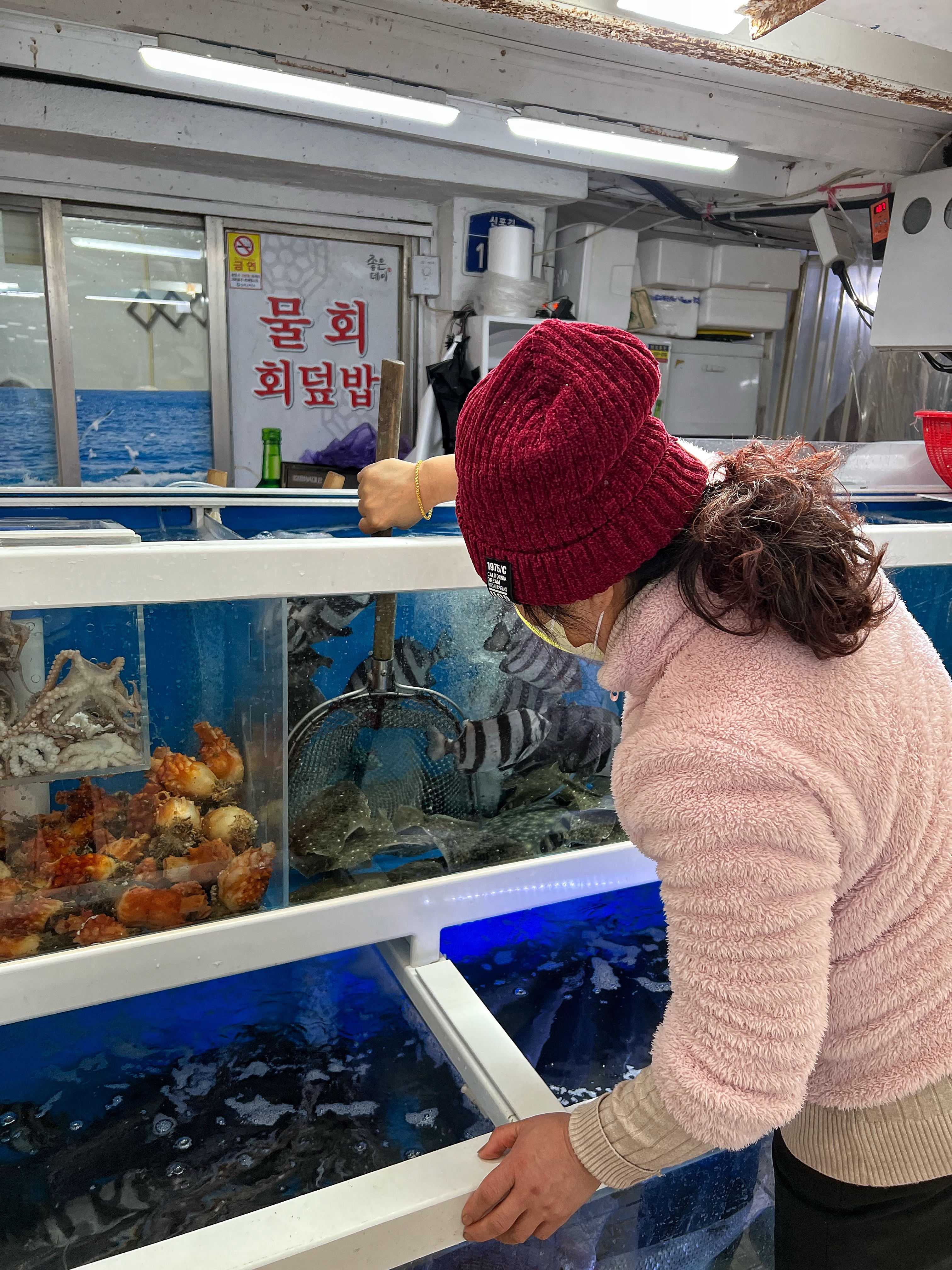 의령횟집에서 회를 고르고 안쪽에 있는 초장집에 자리를 잡으면 된다. 수조가 맑고 깨끗해서 마음에 든다.