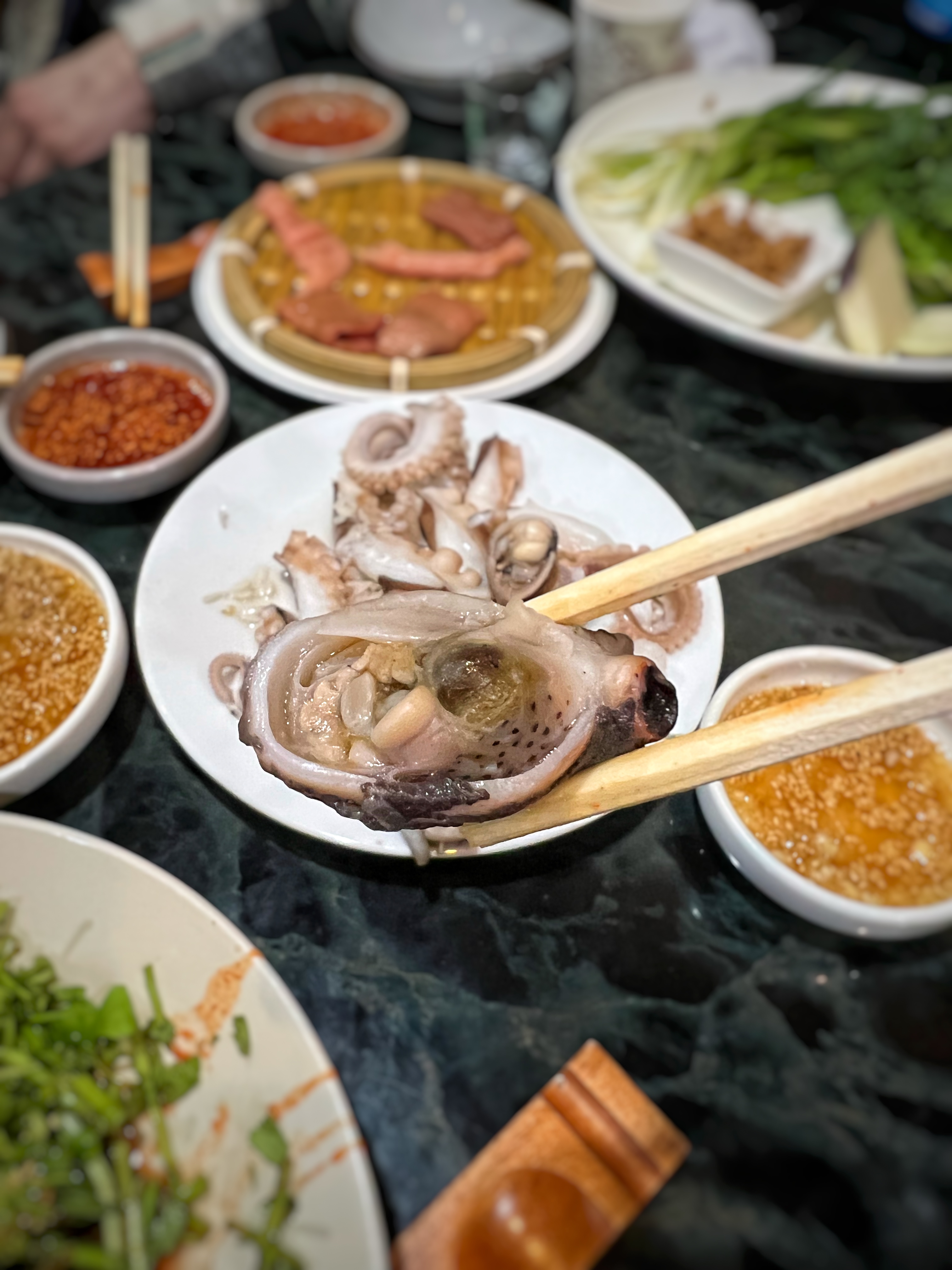 하단 낭만에대하여, 남해출신 자이언트개불과 알찬 주꾸미숙회