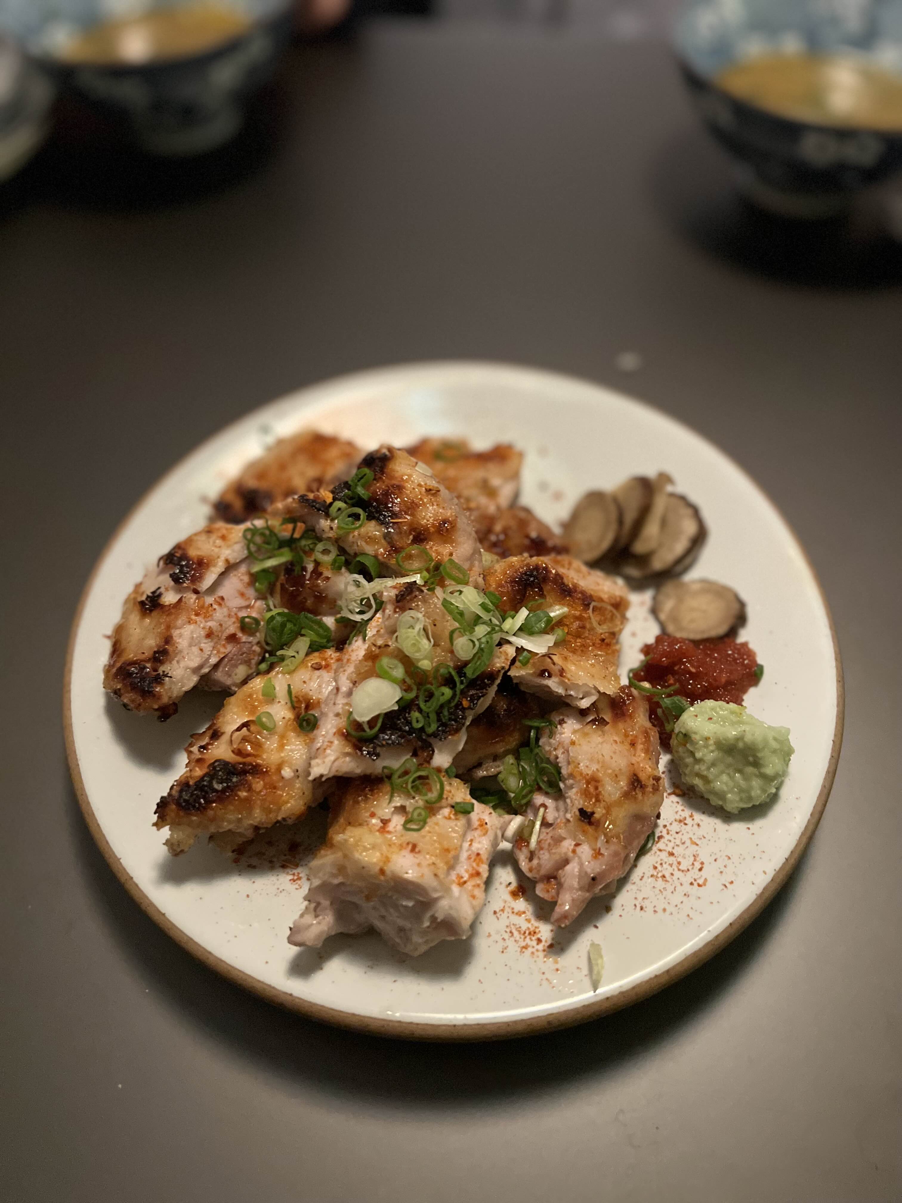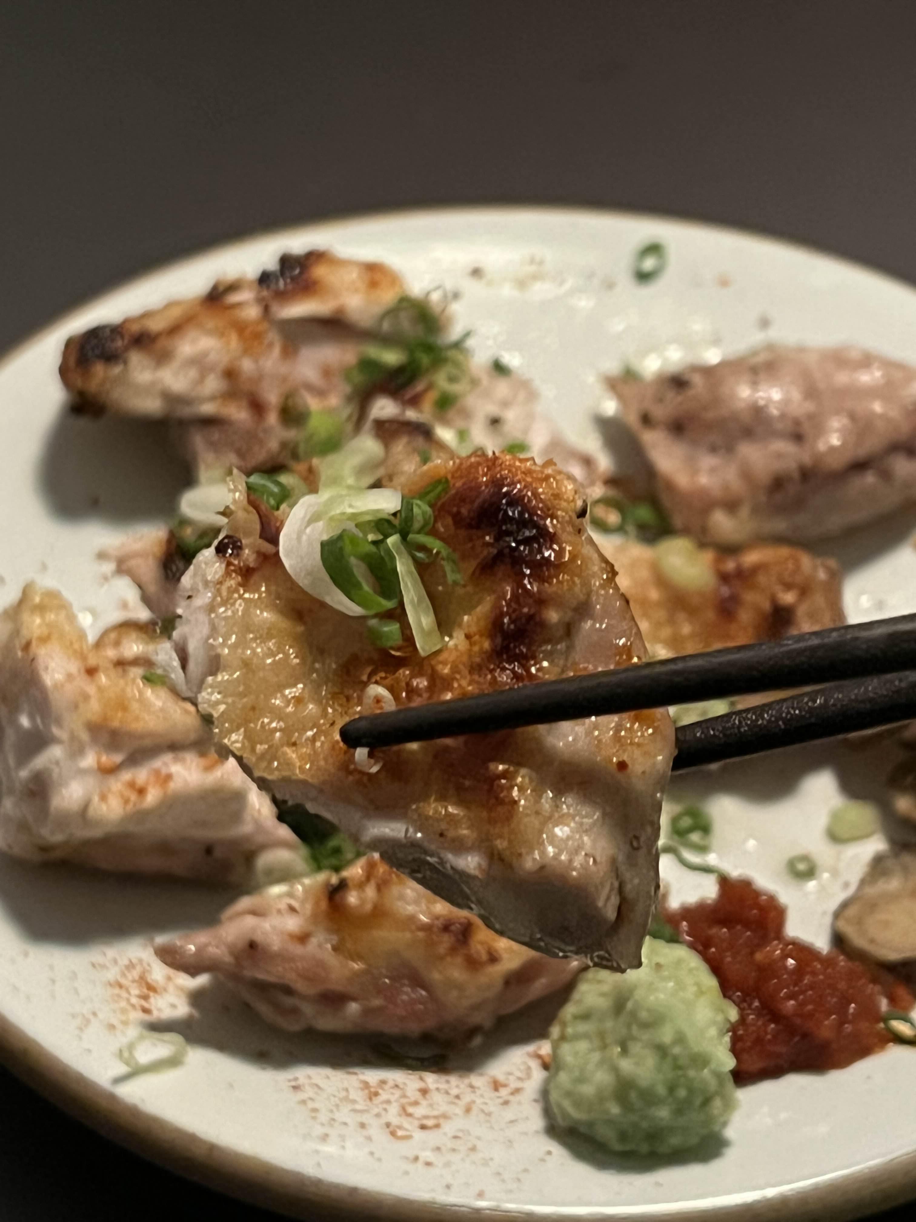 뼈를 발라내고, 불향을 입힌 닭고기. 짭조름한 게 맥주한잔 하면서 안주하기 좋겠다.