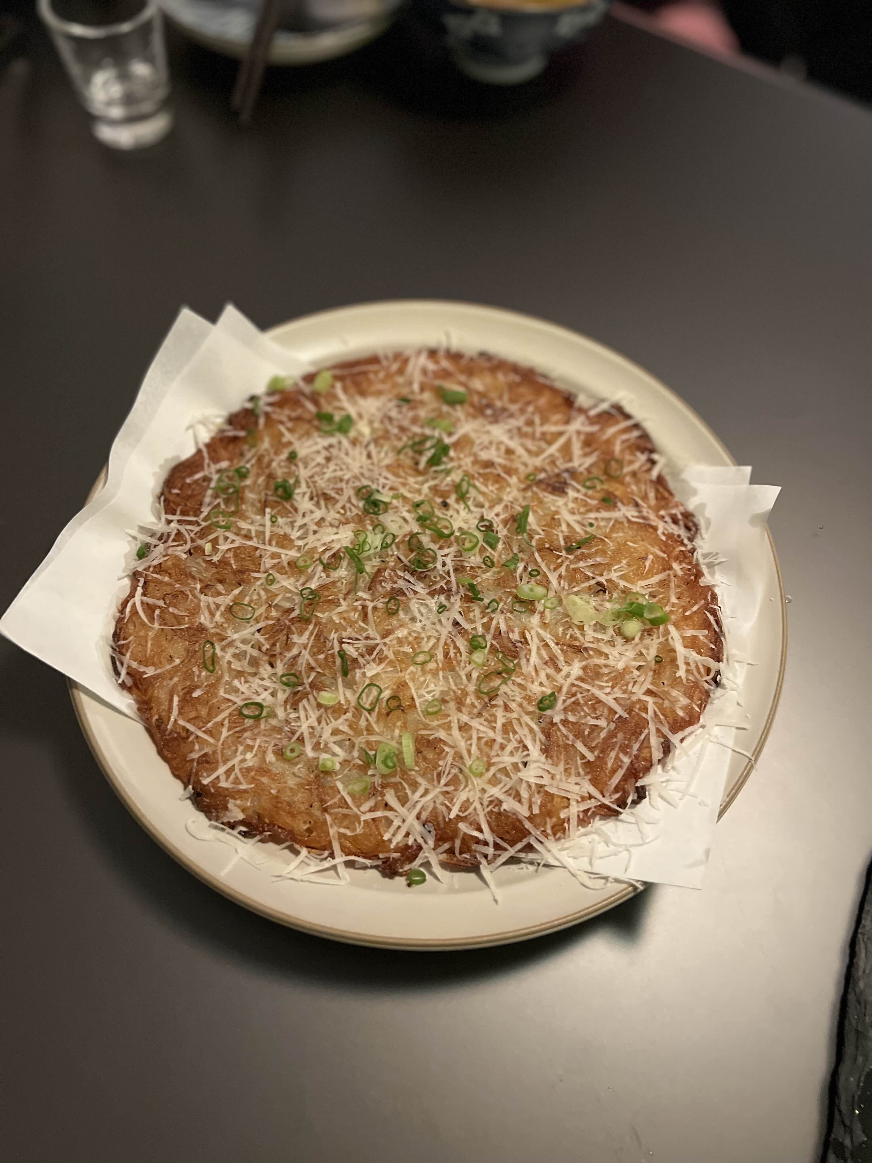 트러플 감자전도 하나 주문했다. 감자를 가늘게 채 썰어서 전을 굽고 치즈를 갈아주는데 고소한 게 막걸리랑  잘 어울리겠더라.