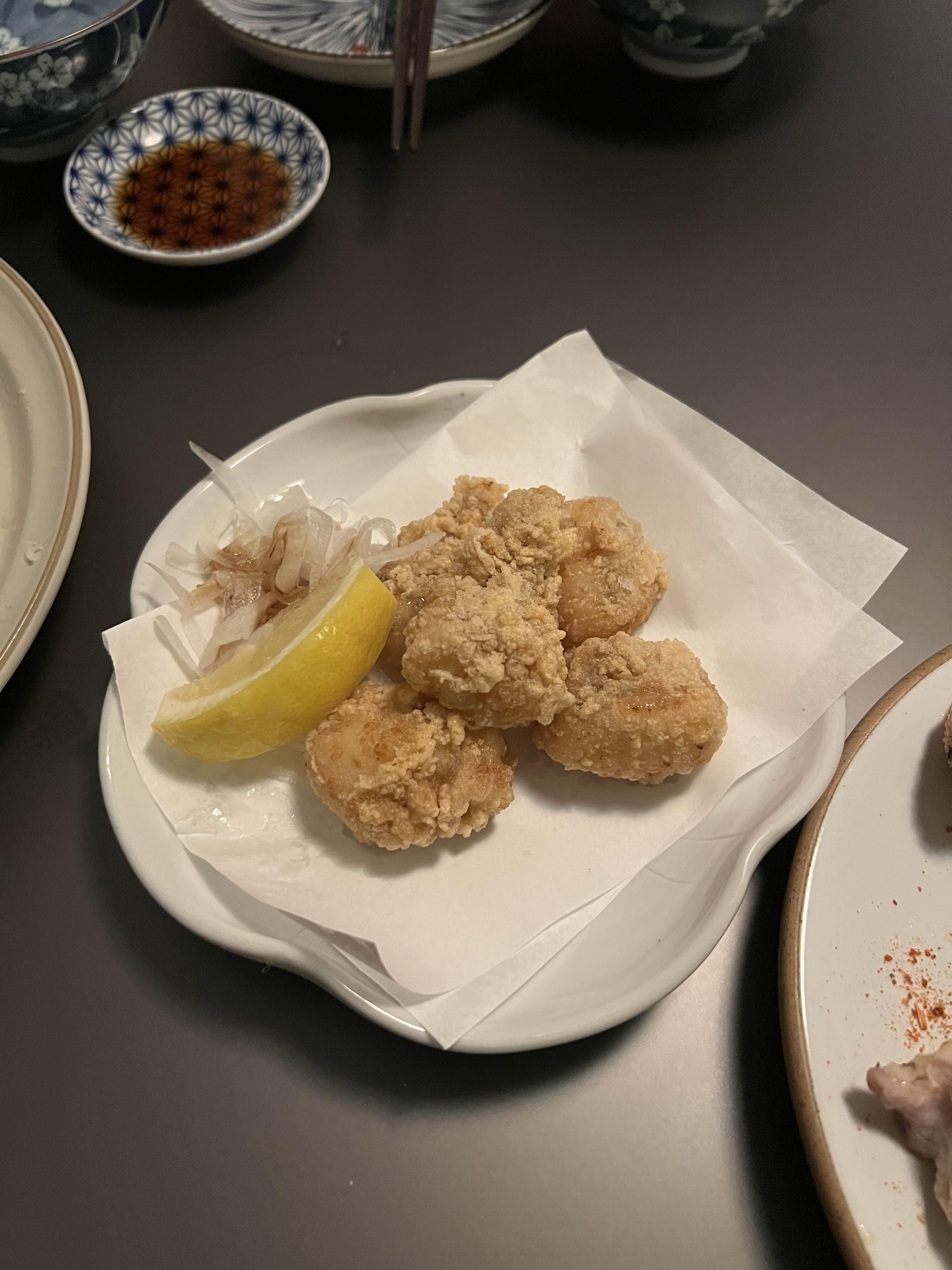 너무 잘 먹어서 그런가 서비스로 내어준 생아귀살튀김. 아귀의 살코기는 촉촉하고 부드럽고, 튀김옷이 적당히 바싹한 게 맛이 좋다.