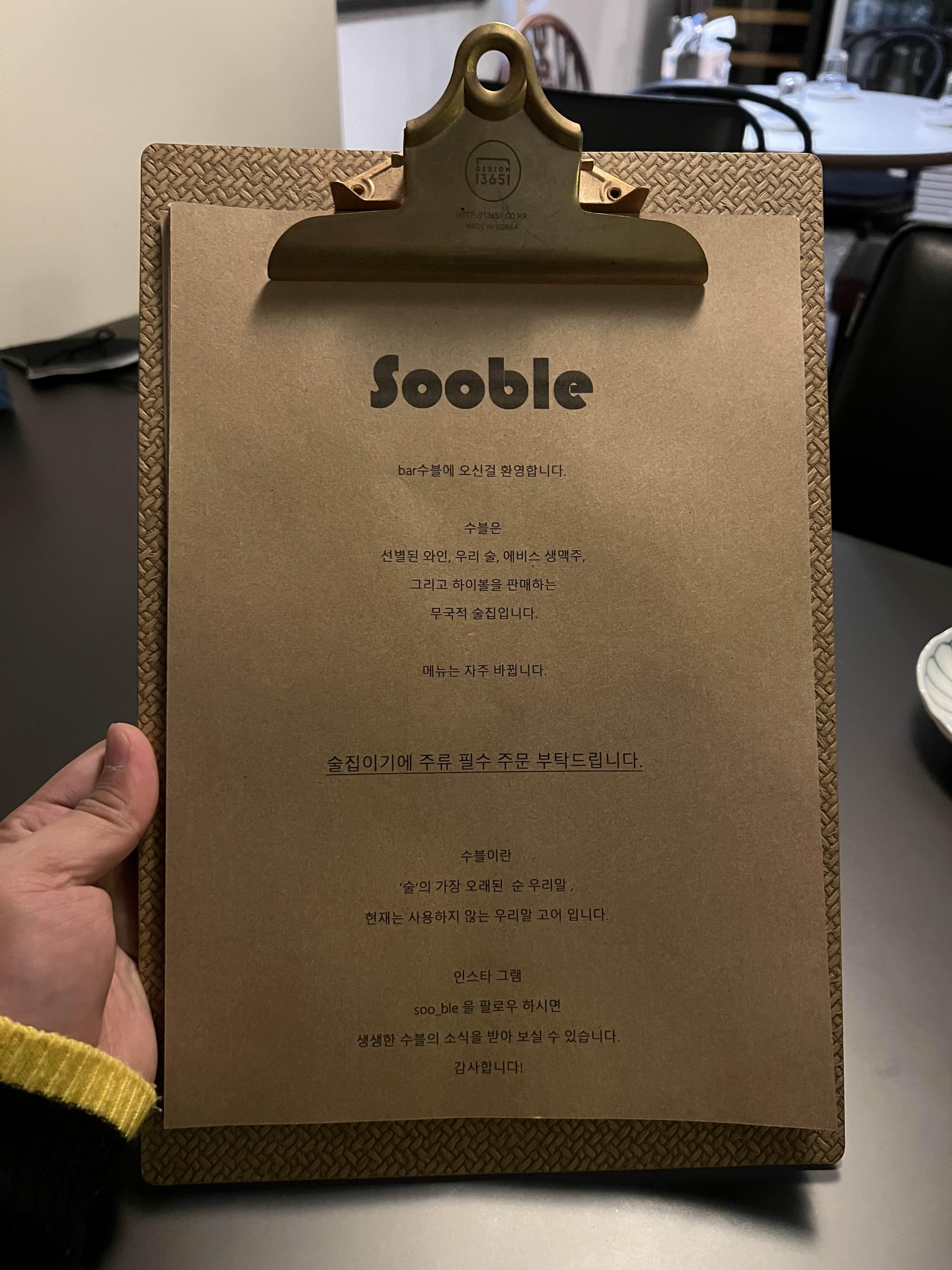 수블 메뉴판