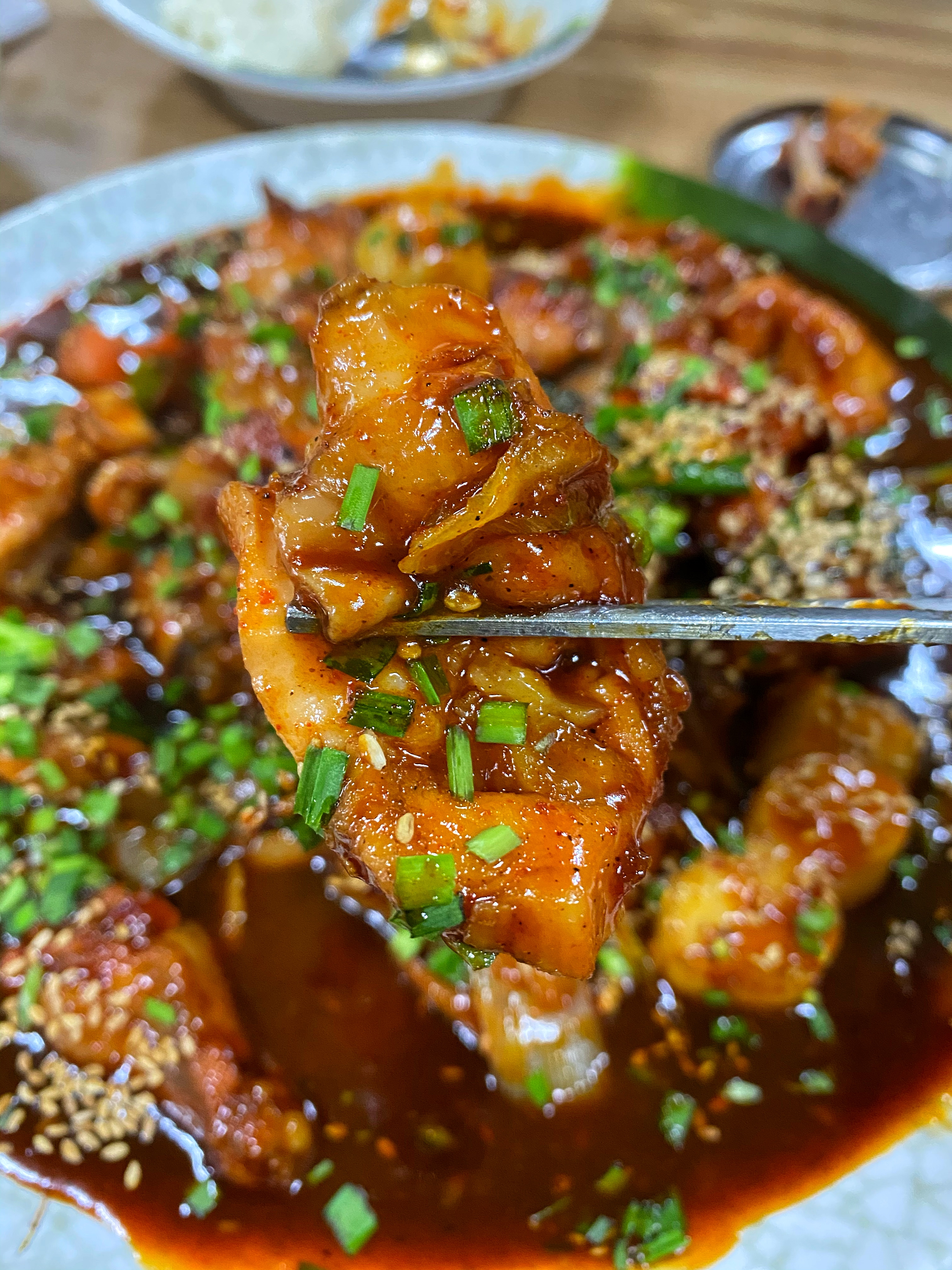 이맘 때의 대신동 삼익아파트는 벚꽃으로 절경이다. 벚꽃 구경을 갔다가 들린 철이네손찜닭. 매콤한 닭찜으로 동네에서 알려져 있다.