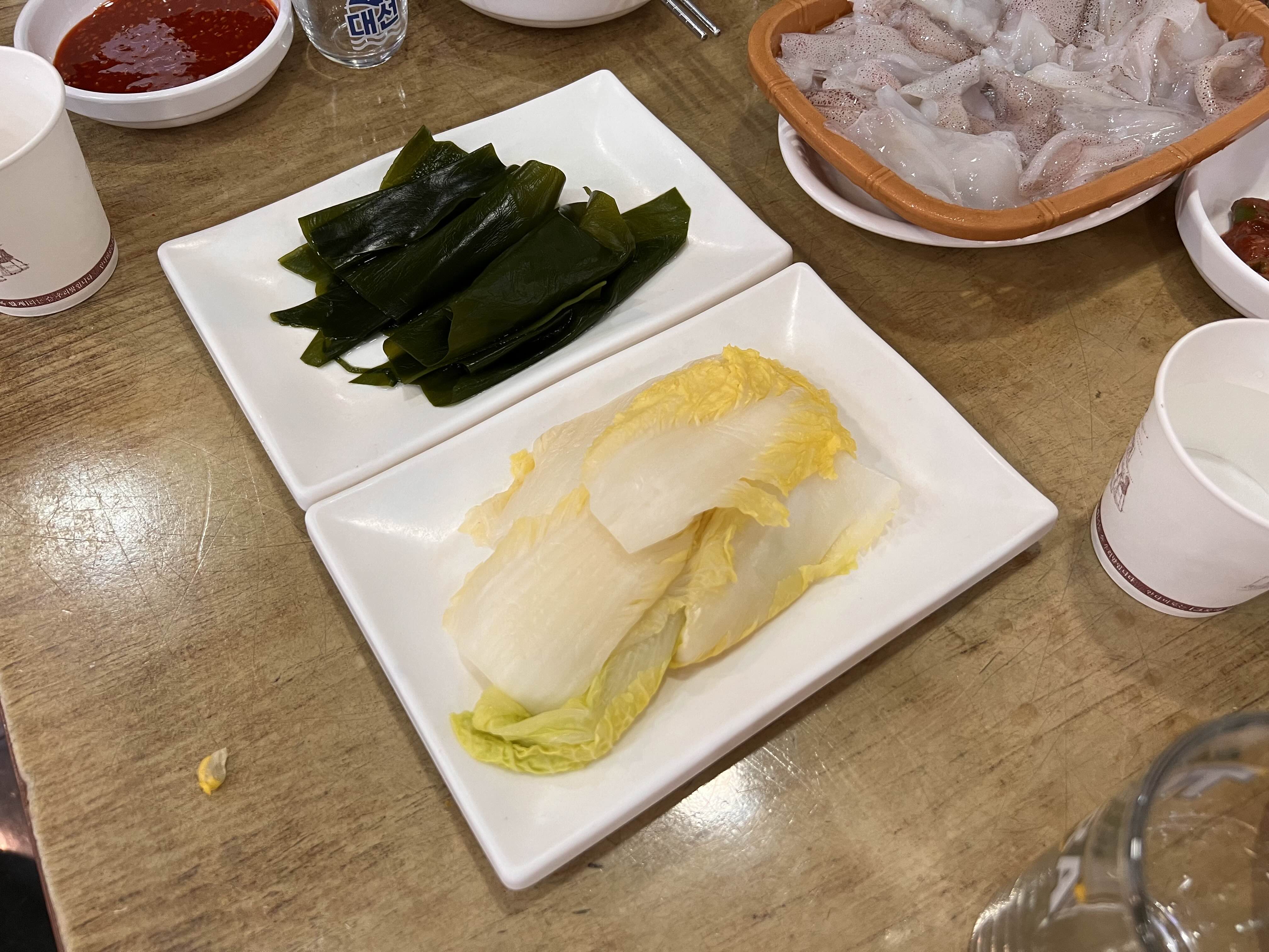 삶은 배추와 다시마를 젓국에 찍어 먹는 것도 별미인데 그럴 땐 밥 생각도 난다.