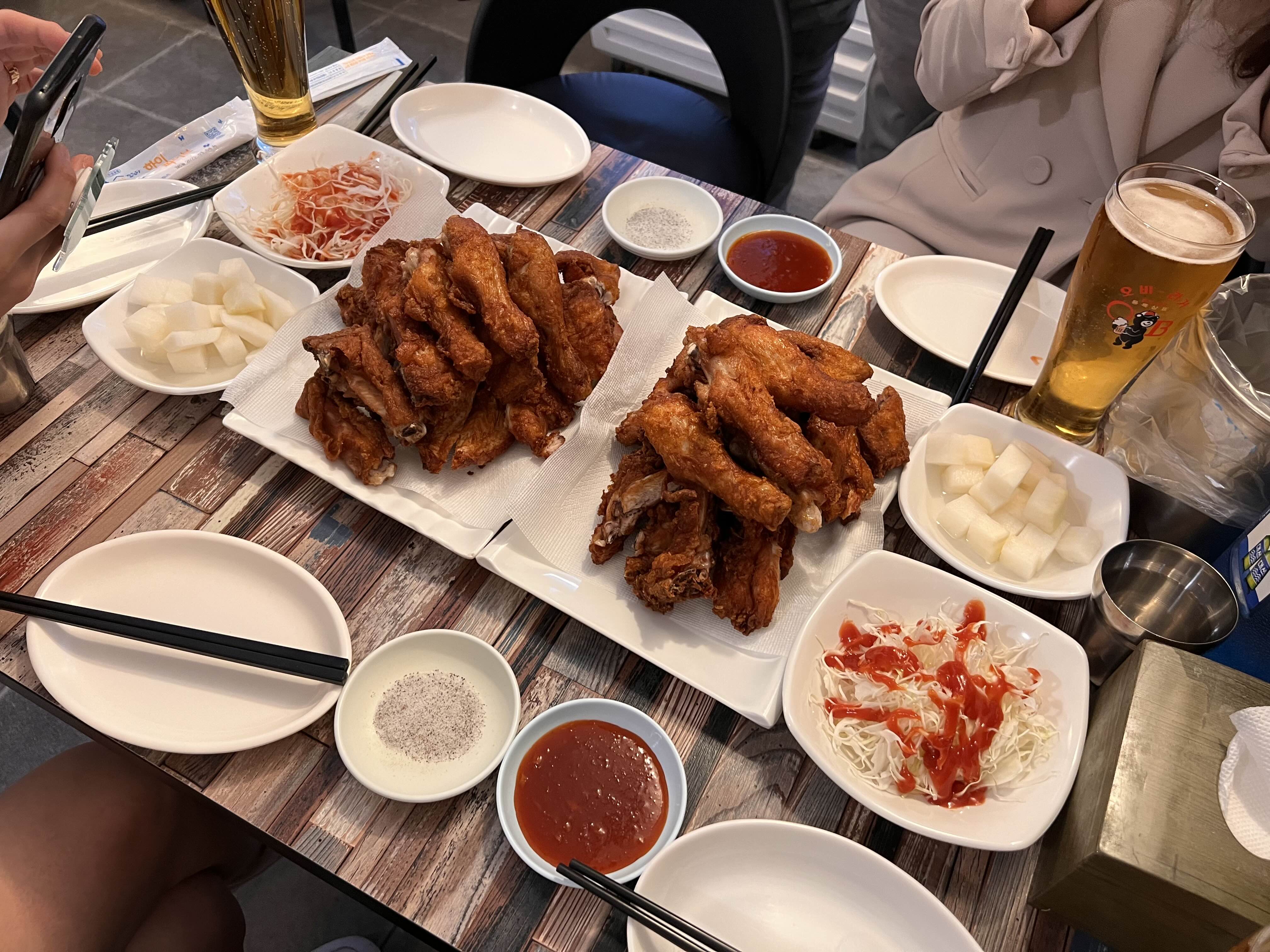 이렇게 자르지 않고 통으로 주는 게 원래의 동키치킨 모습인데 가게에서 먹을 때는 잘라주더라. 큼직한 치킨을 잡아 뜯고 싶다면 주문할 때 자르지 말아달라고 하자.