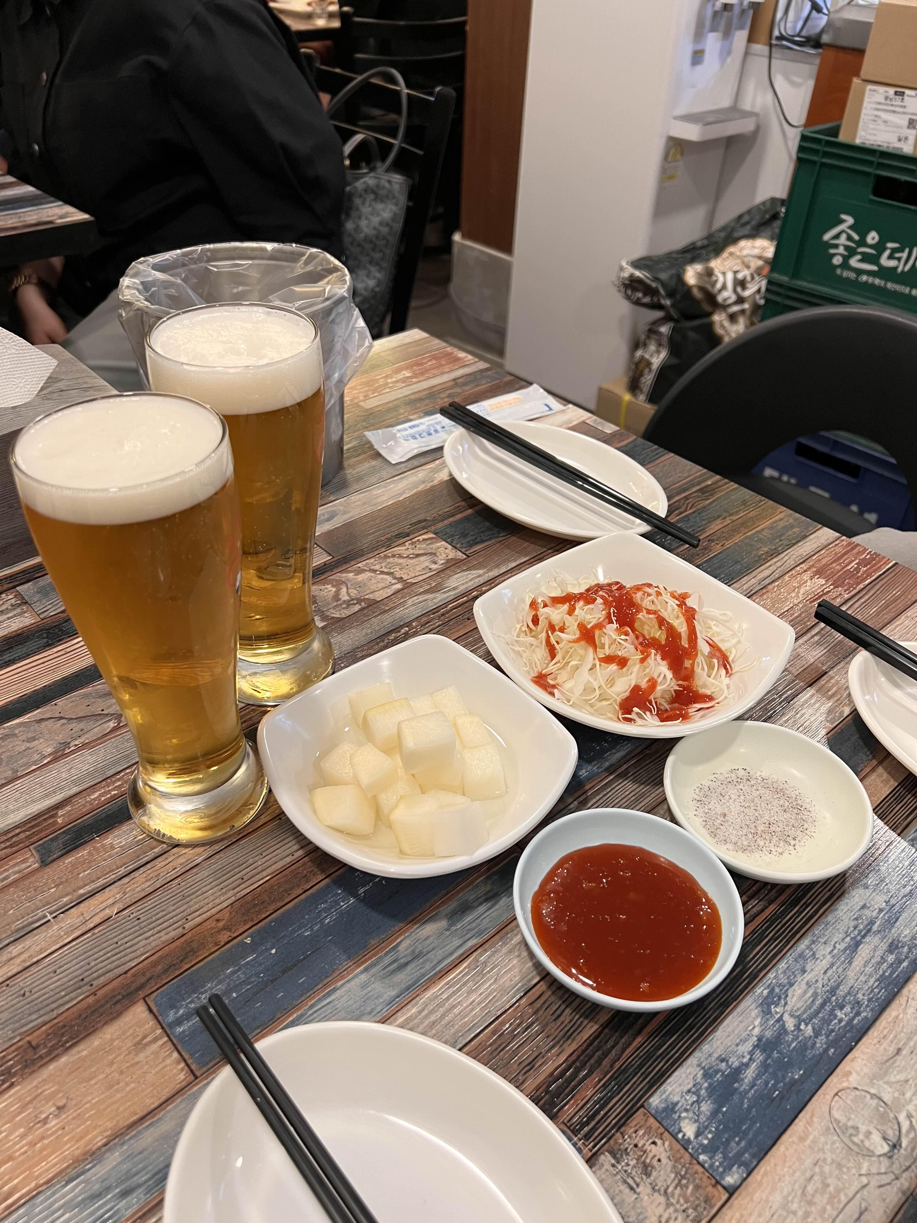 치킨은 맥주라는 공식을 깨고 생맥에 시원소주를 말아드시는 주당님.