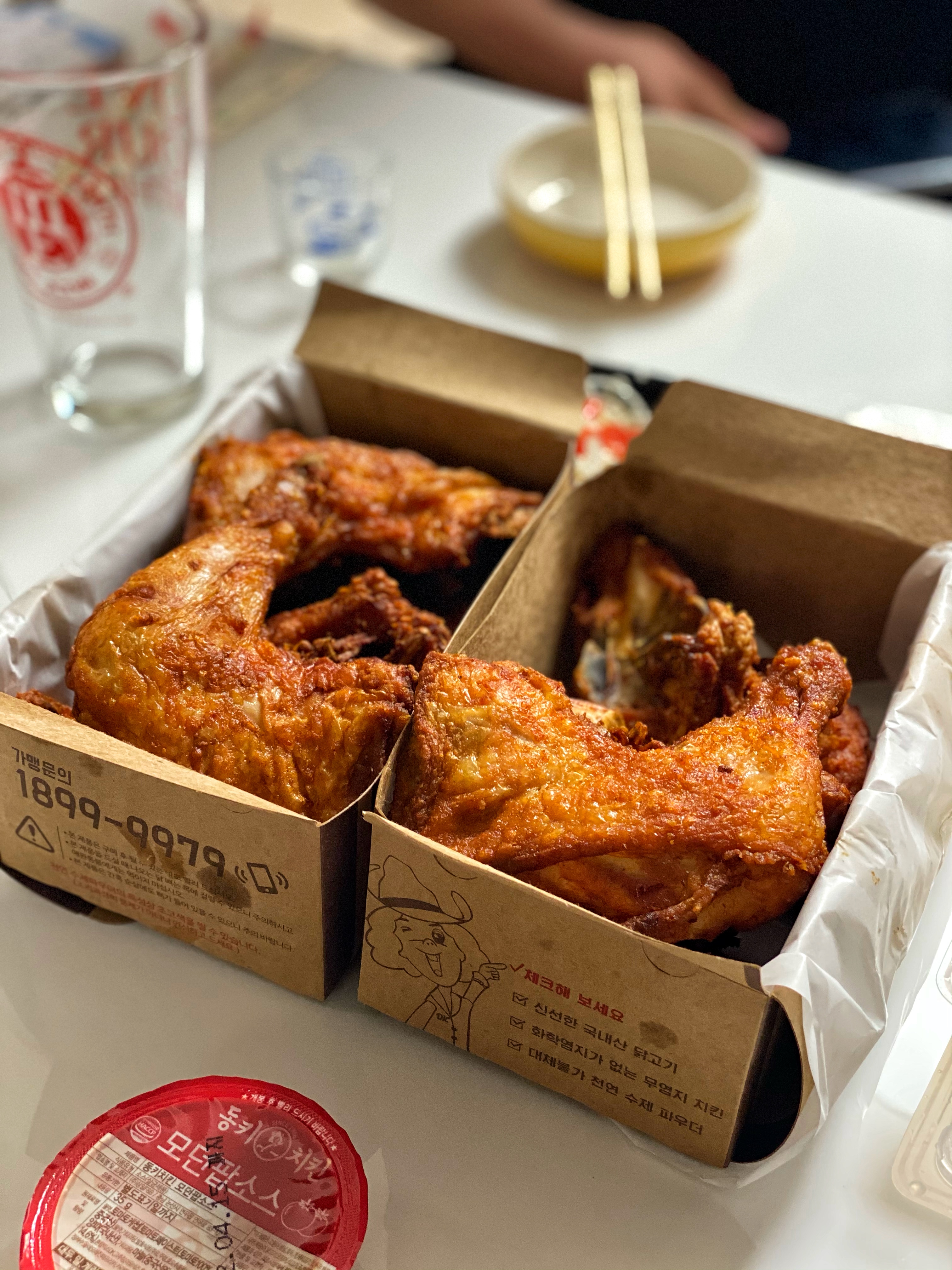 이건 포장했을 때. 역시나 수영 동키치킨에서 포장했다.