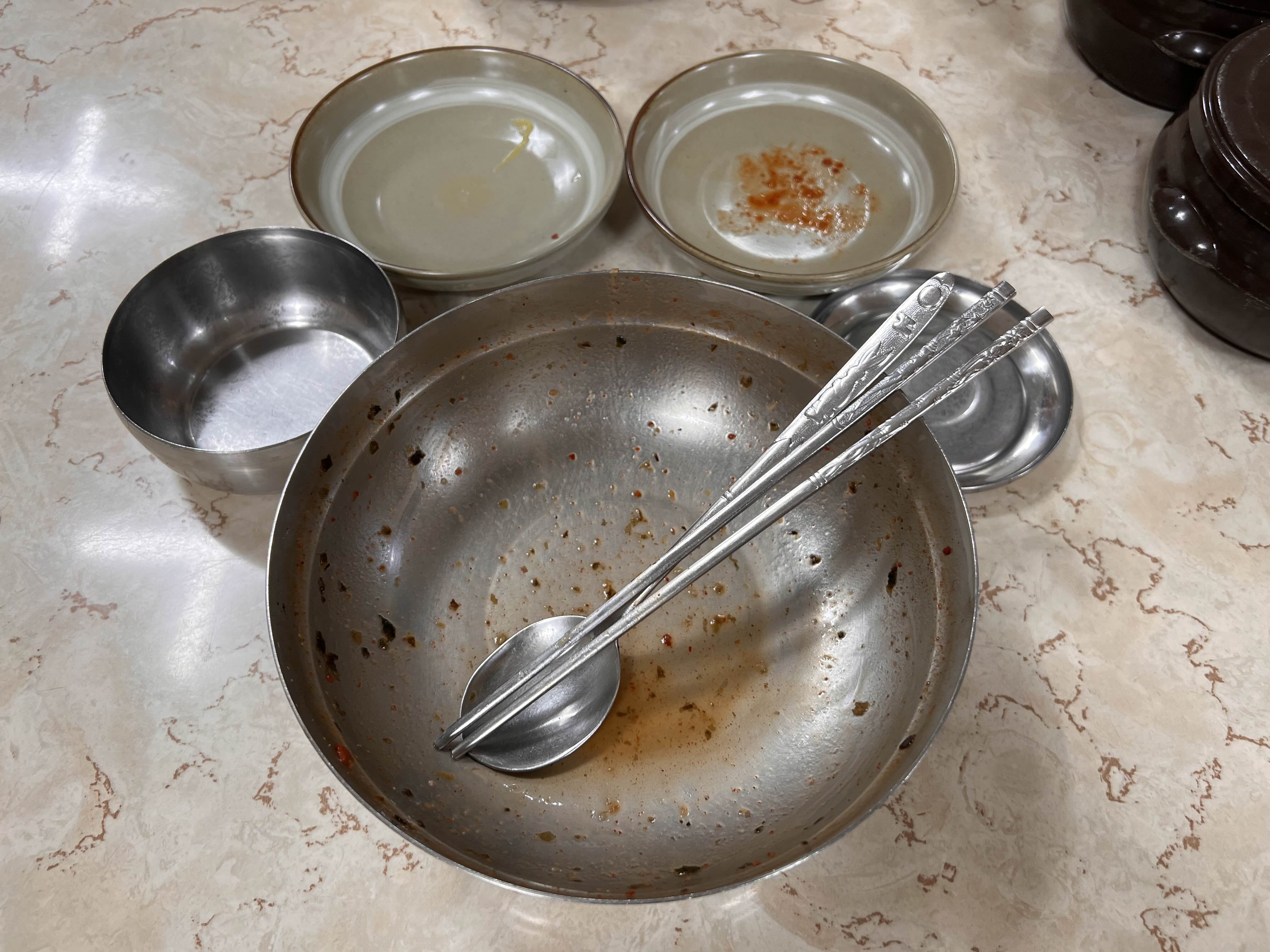 공깃밥 하나와 김치칼국수 한 그릇 클리어.
