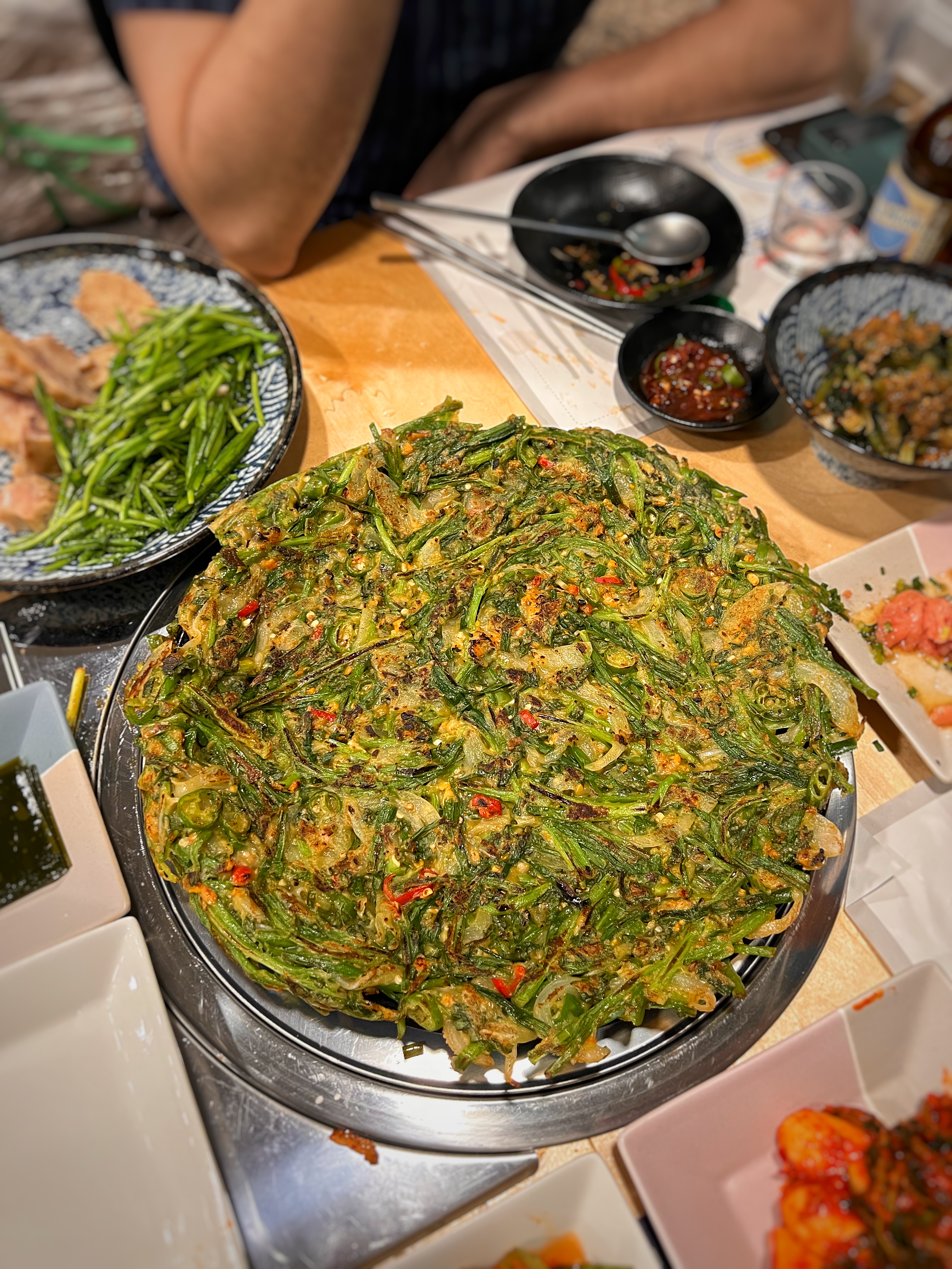 꼬막무침에 이어 개인적으로 이 집에서 좋아하는 메뉴인 홍합부추전. 부추전 가격이 16,000원이냐고 할 수도 있겠지만, 잘게 다진 홍합이 어마어마하게 들어간다고 한다. 실제로 부추전이 나오면 홍합냄새가 진하게 올라오는데...