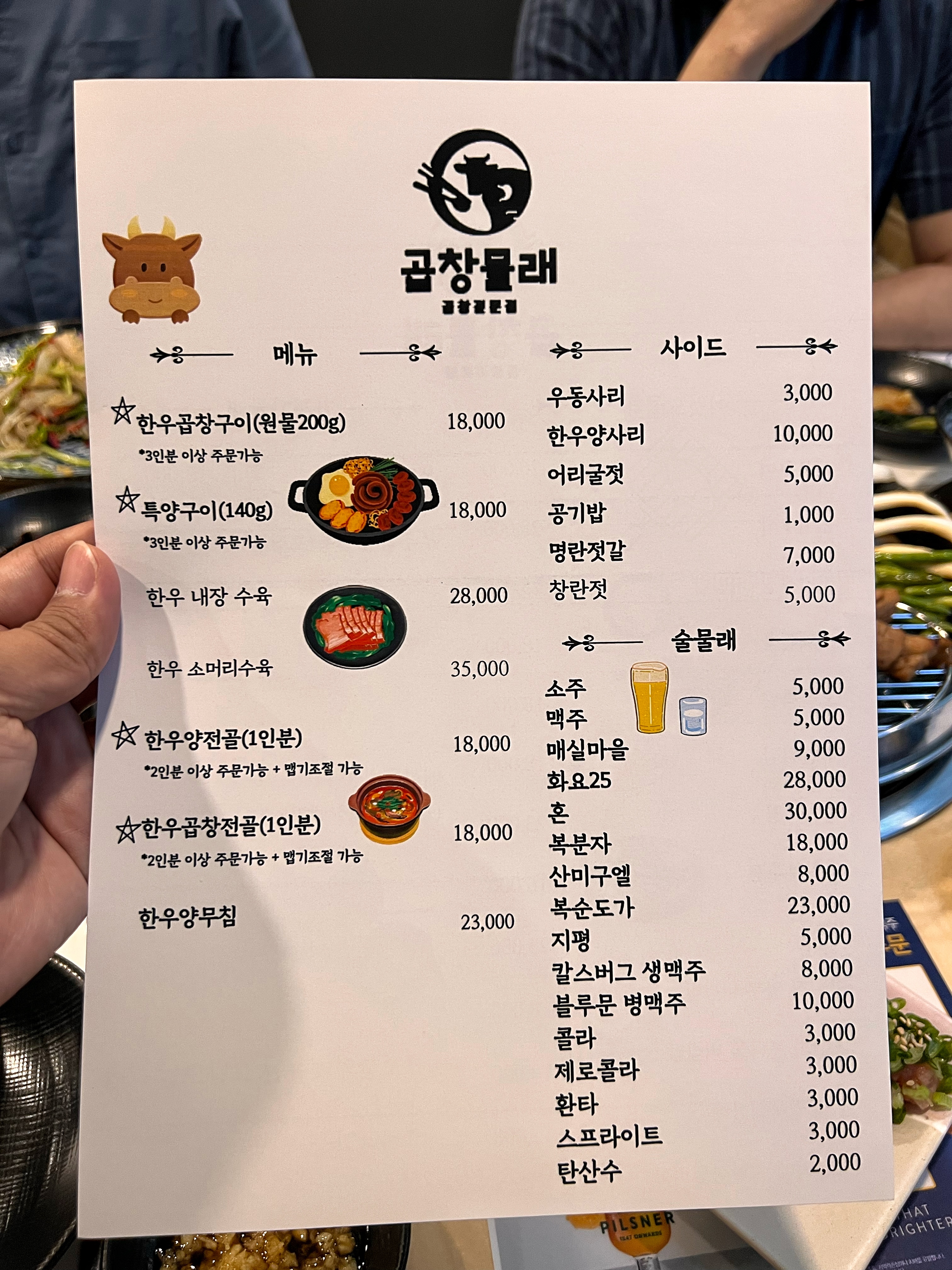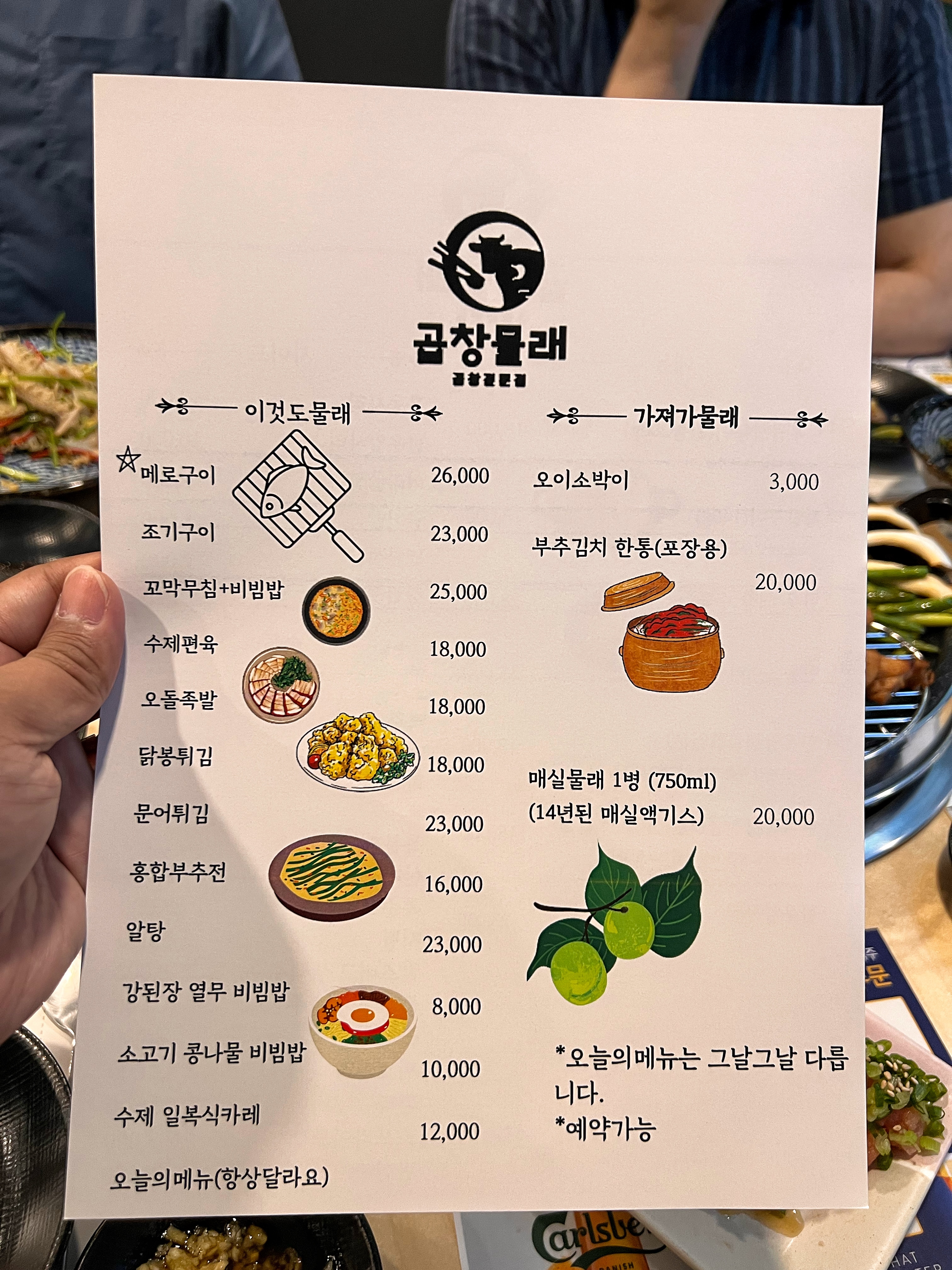 코로나 때문에 1년정도 가게 영업을 쉬었다고 한다. 4월초에 다시 오픈하면서 상호를 곱창물래로 바꿨다고 하는데 개인적으로 곱창물래보다는 온식당이 마음에 든다. 찾아보니 영업을 쉬는 동안 온식당이라는 상호의 식당이 다른데 생겼더라.
