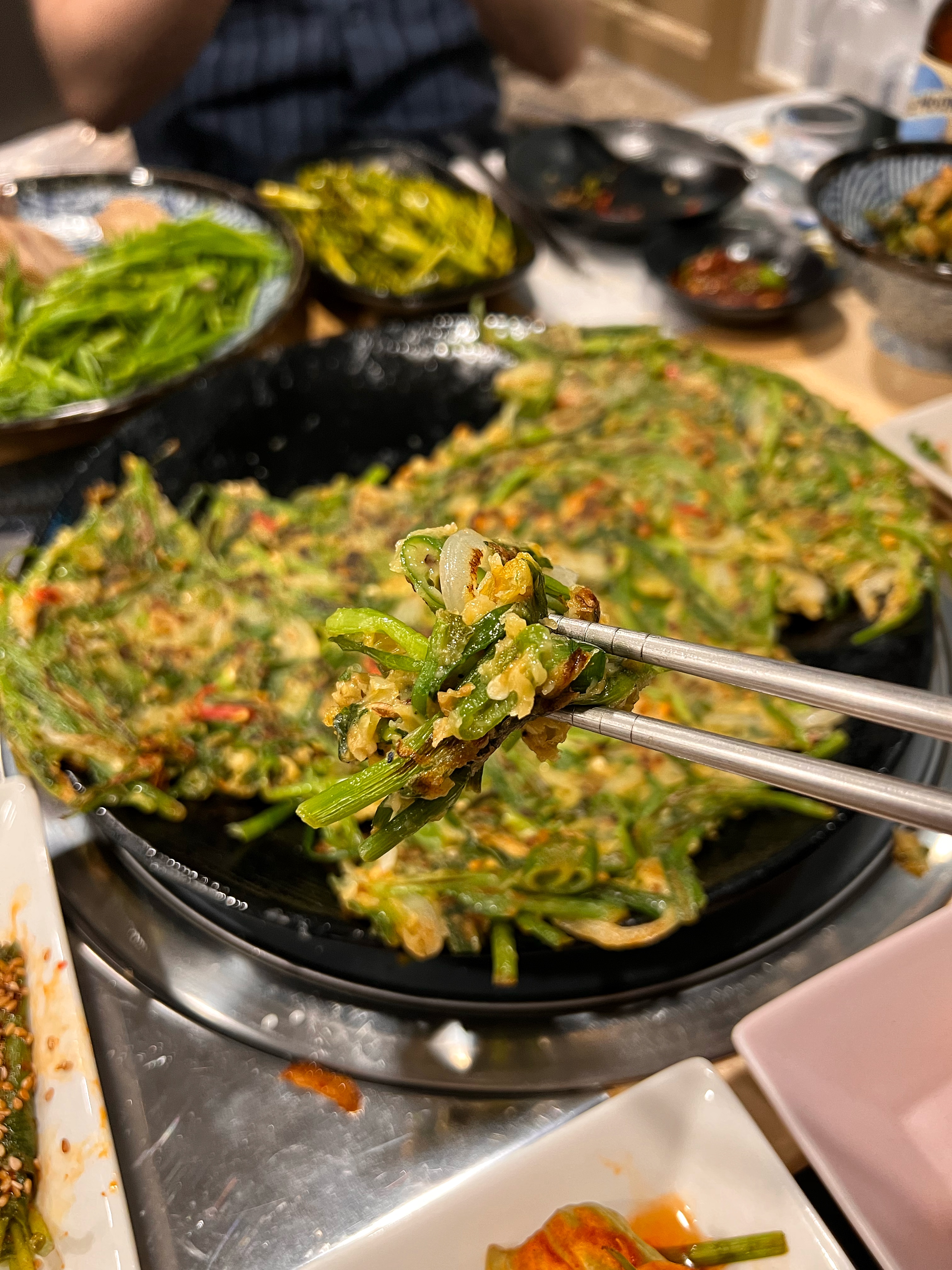 꼬막무침에 이어 개인적으로 이 집에서 좋아하는 메뉴인 홍합부추전. 부추전 가격이 16,000원이냐고 할 수도 있겠지만, 잘게 다진 홍합이 어마어마하게 들어간다고 한다. 실제로 부추전이 나오면 홍합냄새가 진하게 올라오는데...