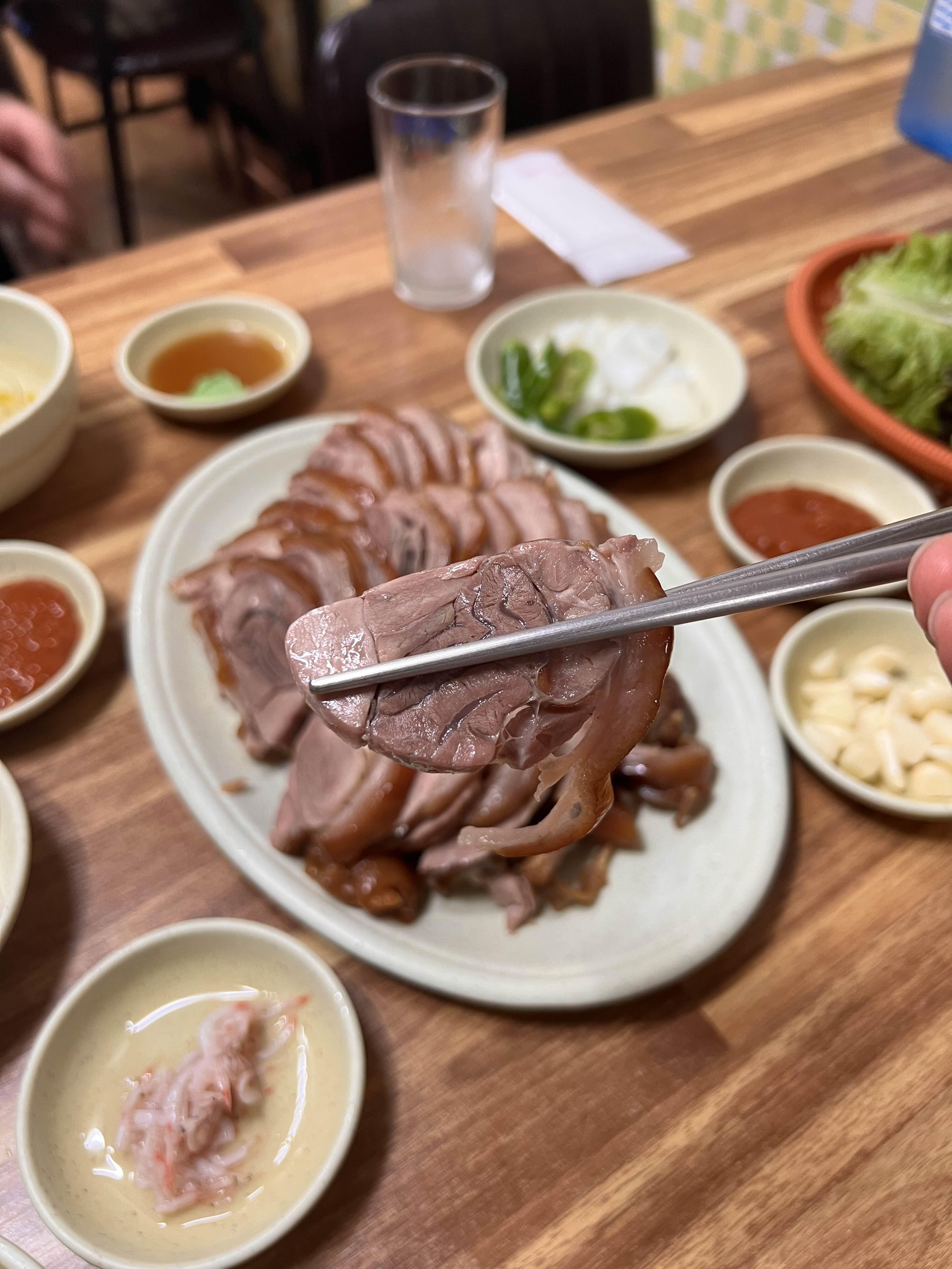 반대쪽으로 돌려서도 한 컷. 살코기 아래쪽에 뼈를 놓고 족발을 올려주는 집들도 있는데 여긴 살코기만 준다.