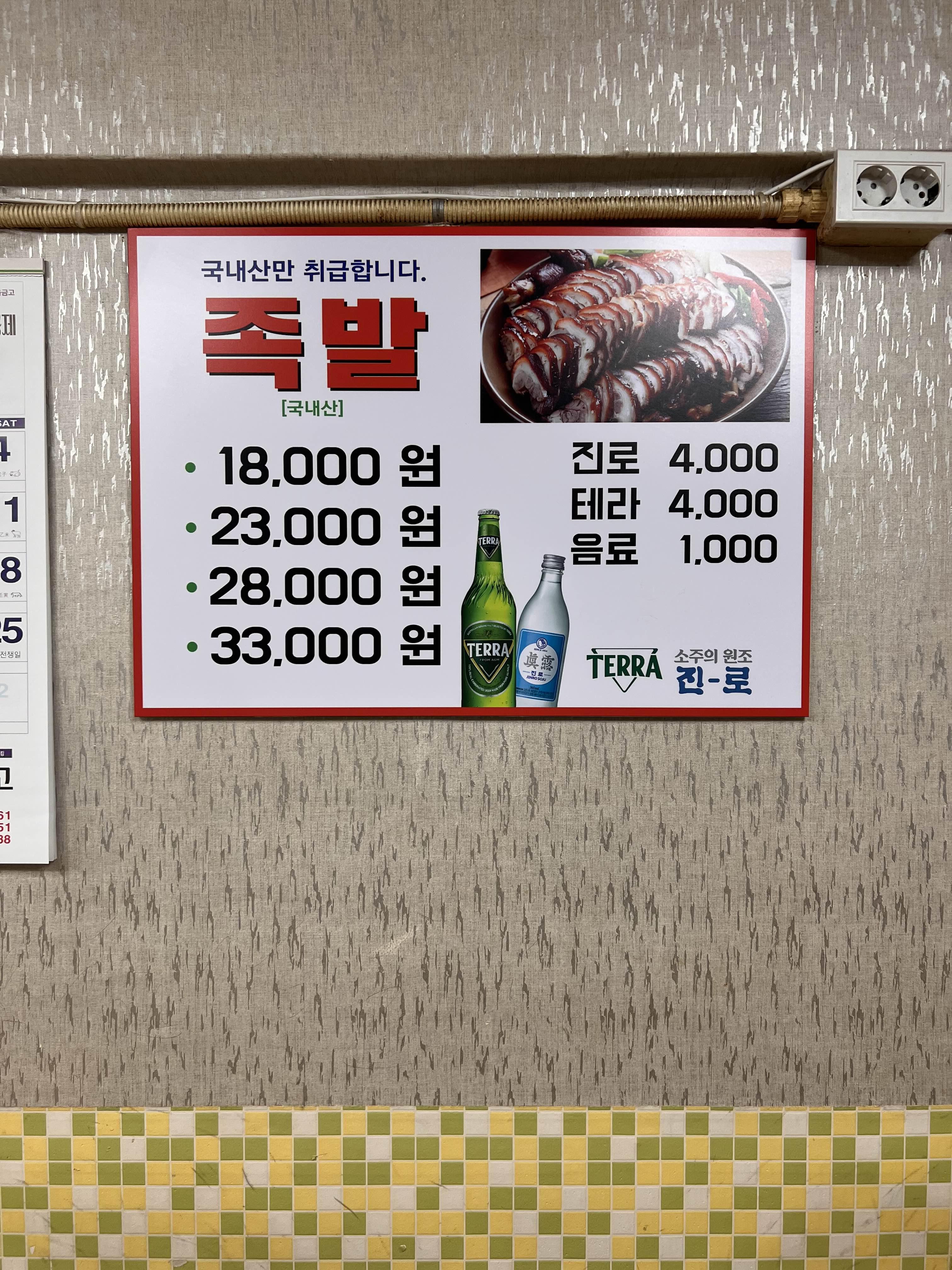 아직 소주도 맥주도 4천원이다. 그리고 음료는 1천원. 오래전과 비교하면 당연히 족발 가격이 많이 올랐지만, 그래도 싸다.
