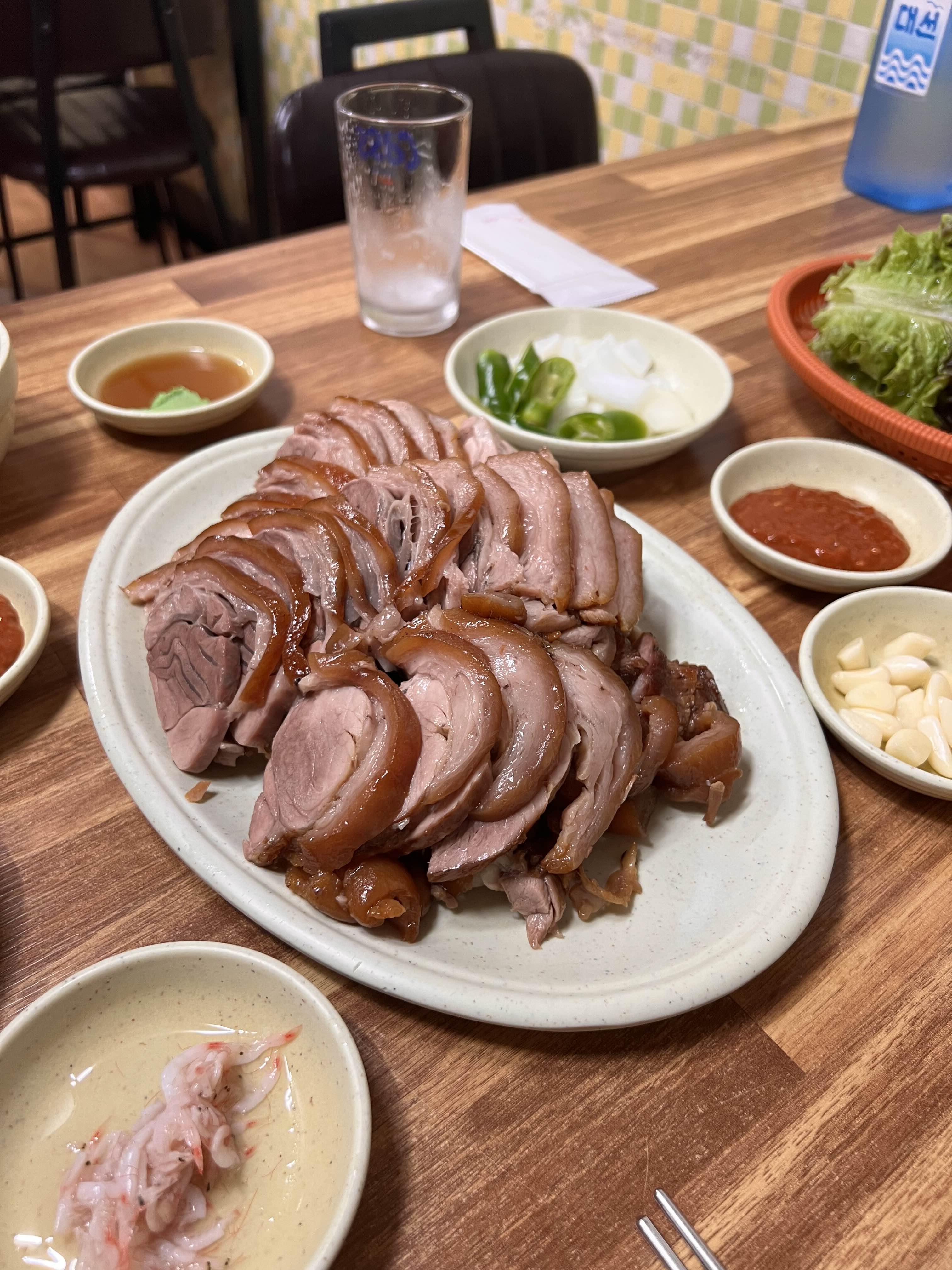 옛날보다 가격이 오르긴 했지만, 여전히 가성비 좋은 영심이왕족발. 곁들여지는 찬들은 족발이 느끼해서 물리지 않도록 꼭 필요한 재료들만 내어준다. 그렇다보니 족발에 오롯이 집중할 수 있는 집. 이 인근에 가격 착하고 맛난 집들이 많으니 도장깨기처럼 찾아다니는 재미도 있을 것 같다. 2차로 가려고 했던 바로 옆 집은 배가 불러 다음을 기약하고, 배가 부를 때 소주안주로 그만인 해물을 2차 장소로 정했다.