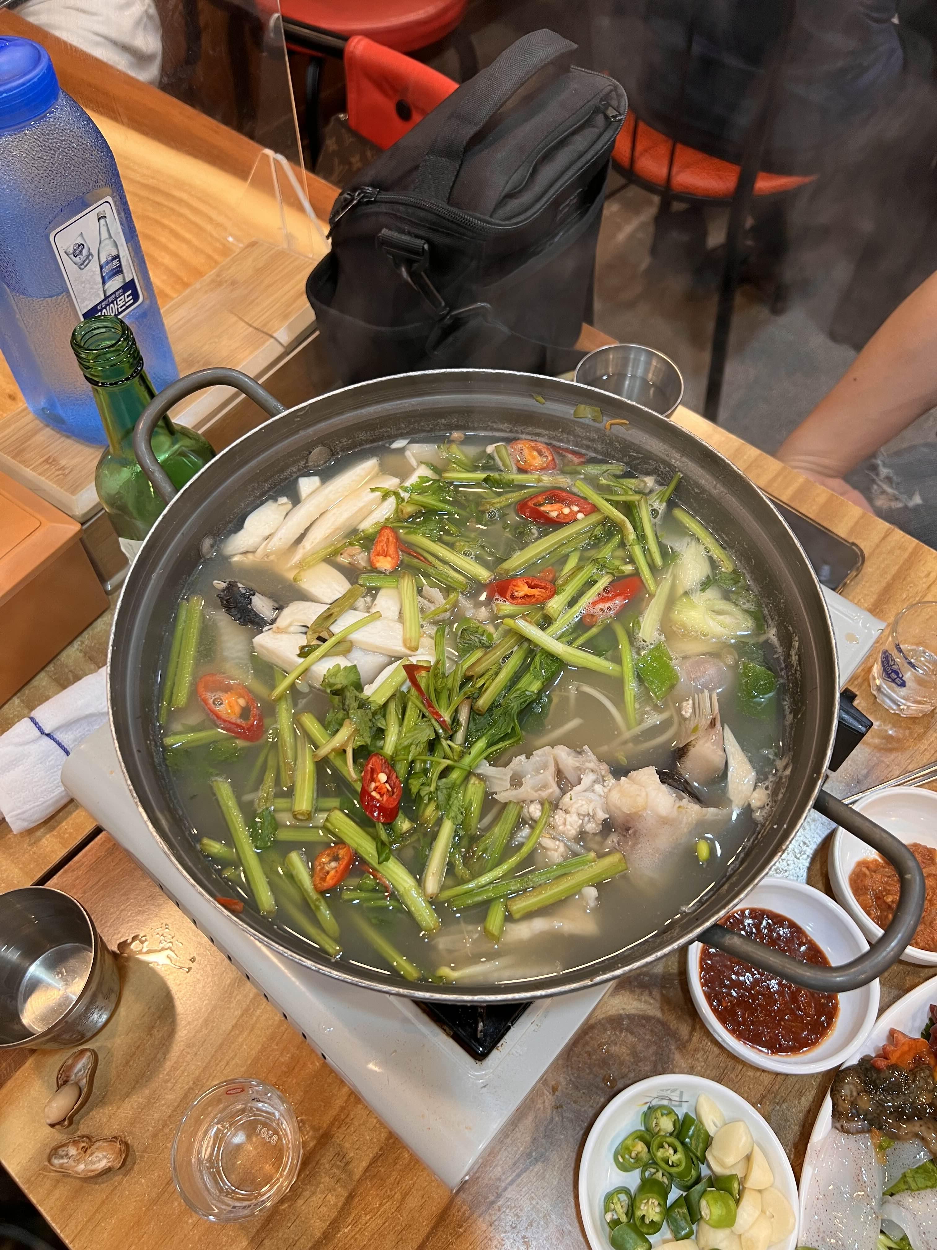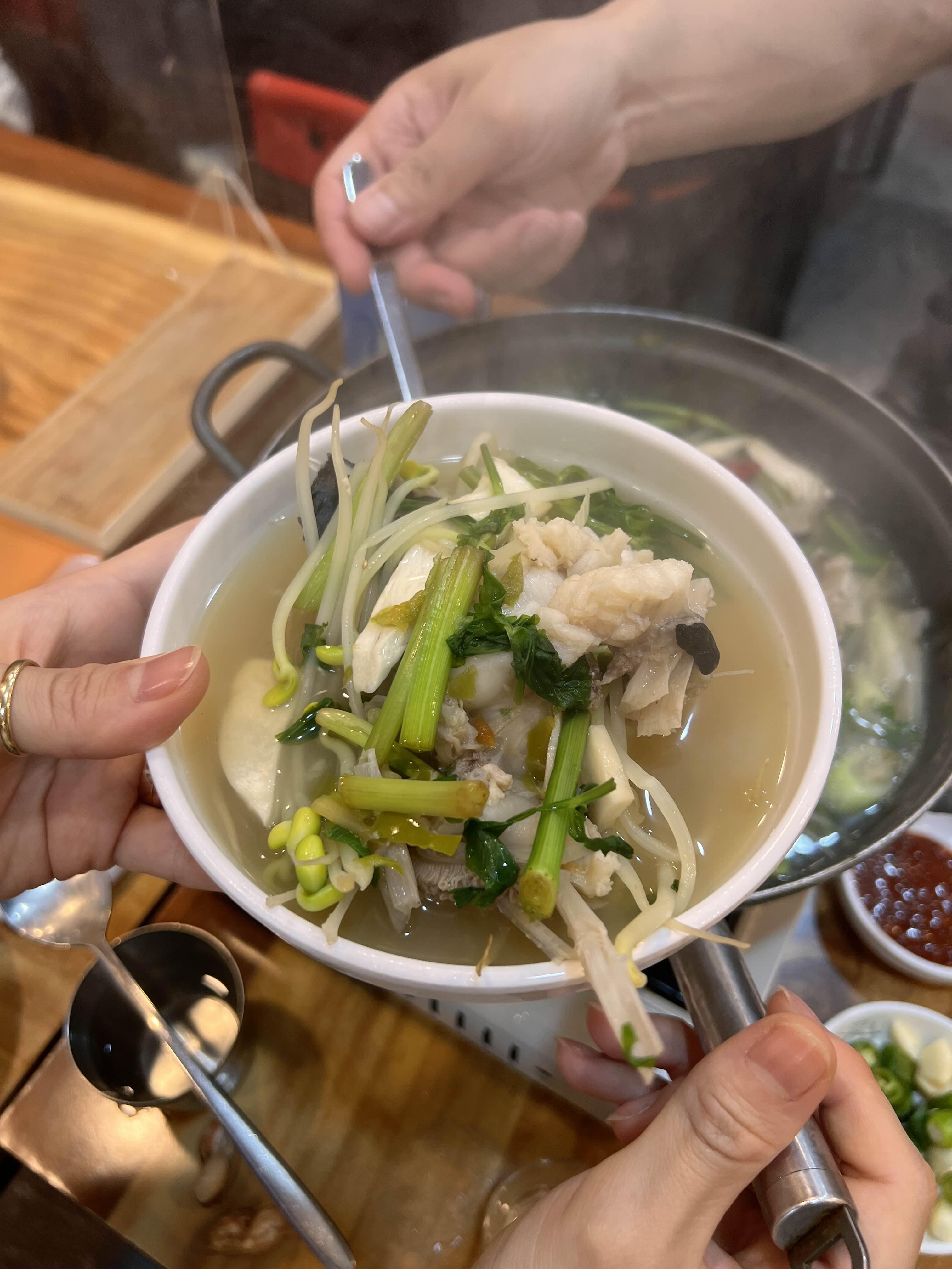 미나리가 듬뿍 들어간 아귀탕.