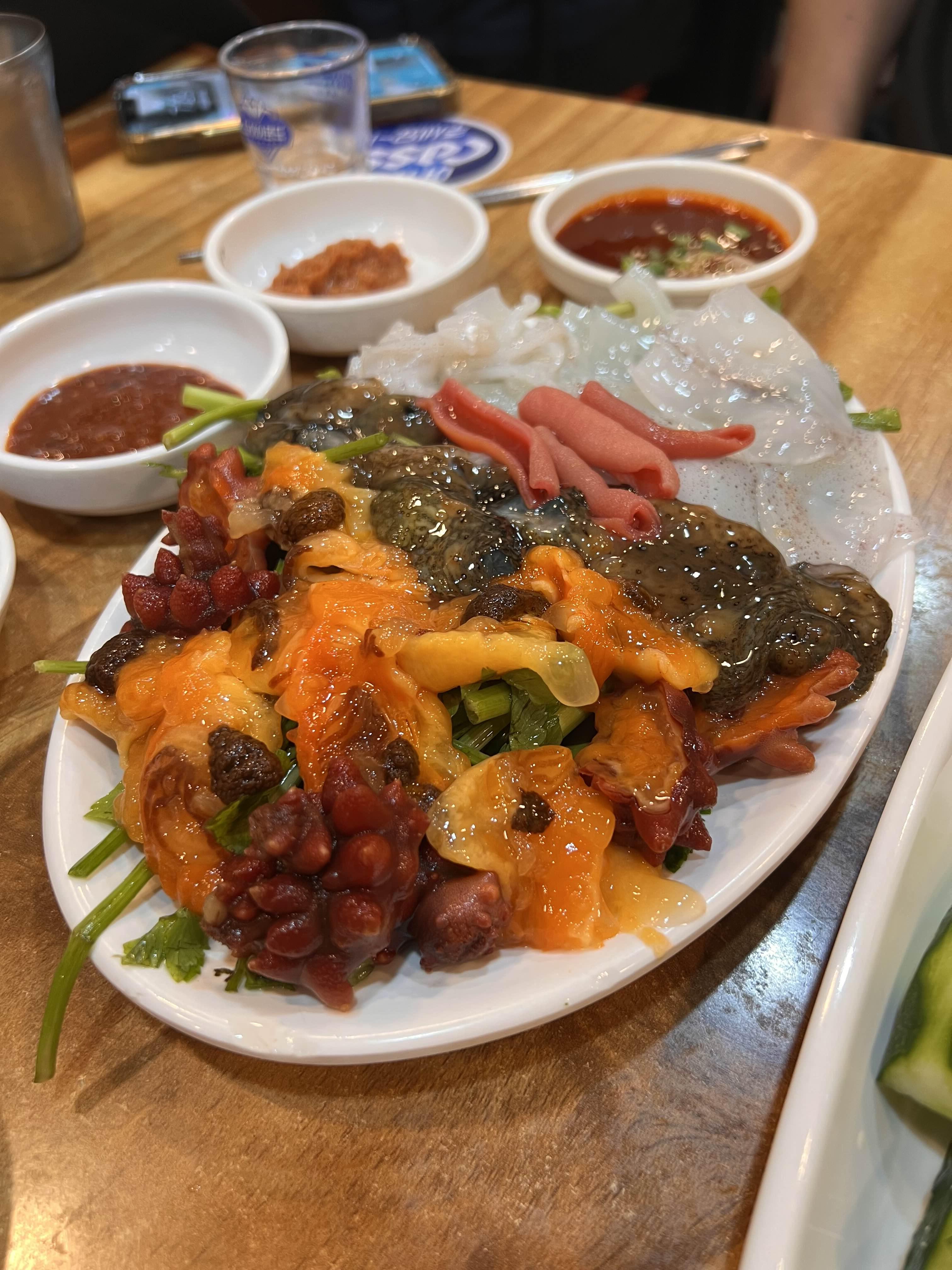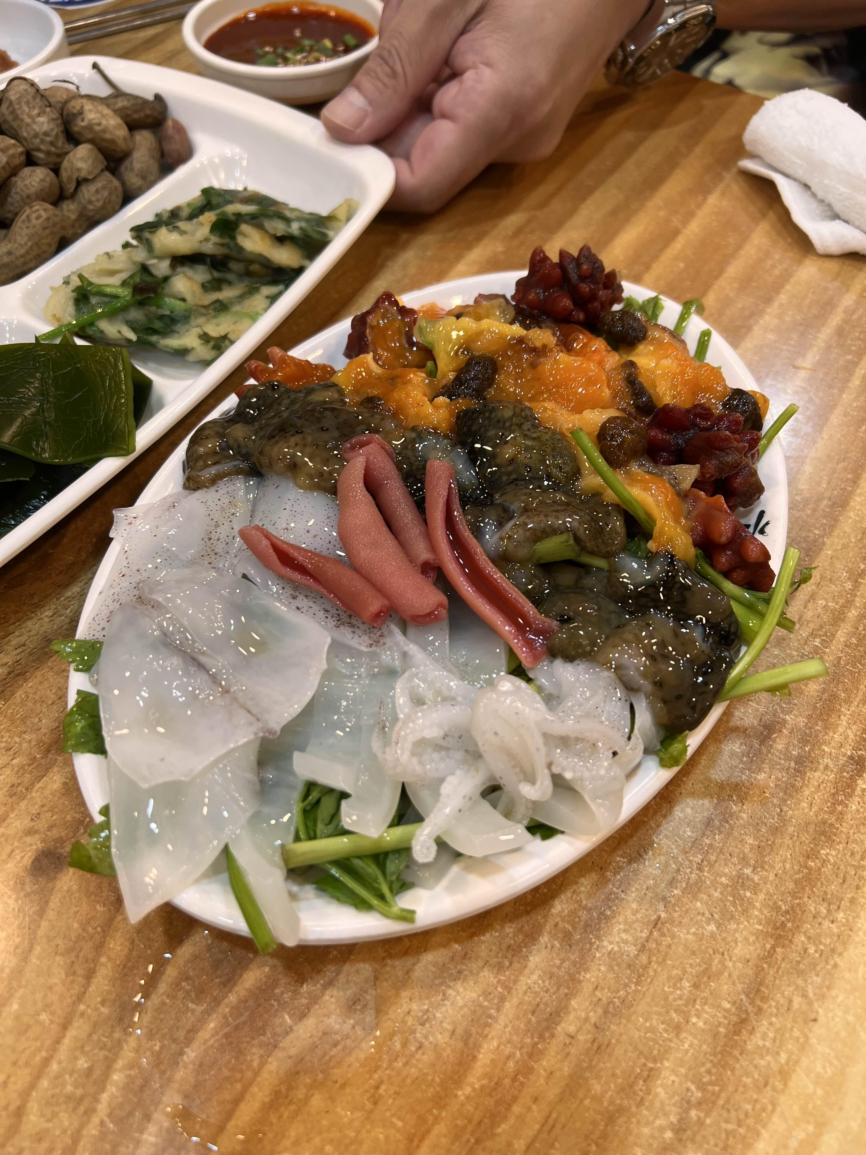 멍게, 해삼, 개불, 호래기로 한 접시가 구성되는데 양이 많지는 않아도 이것저것 맛볼 수 있는 구성이라 만족스럽다.