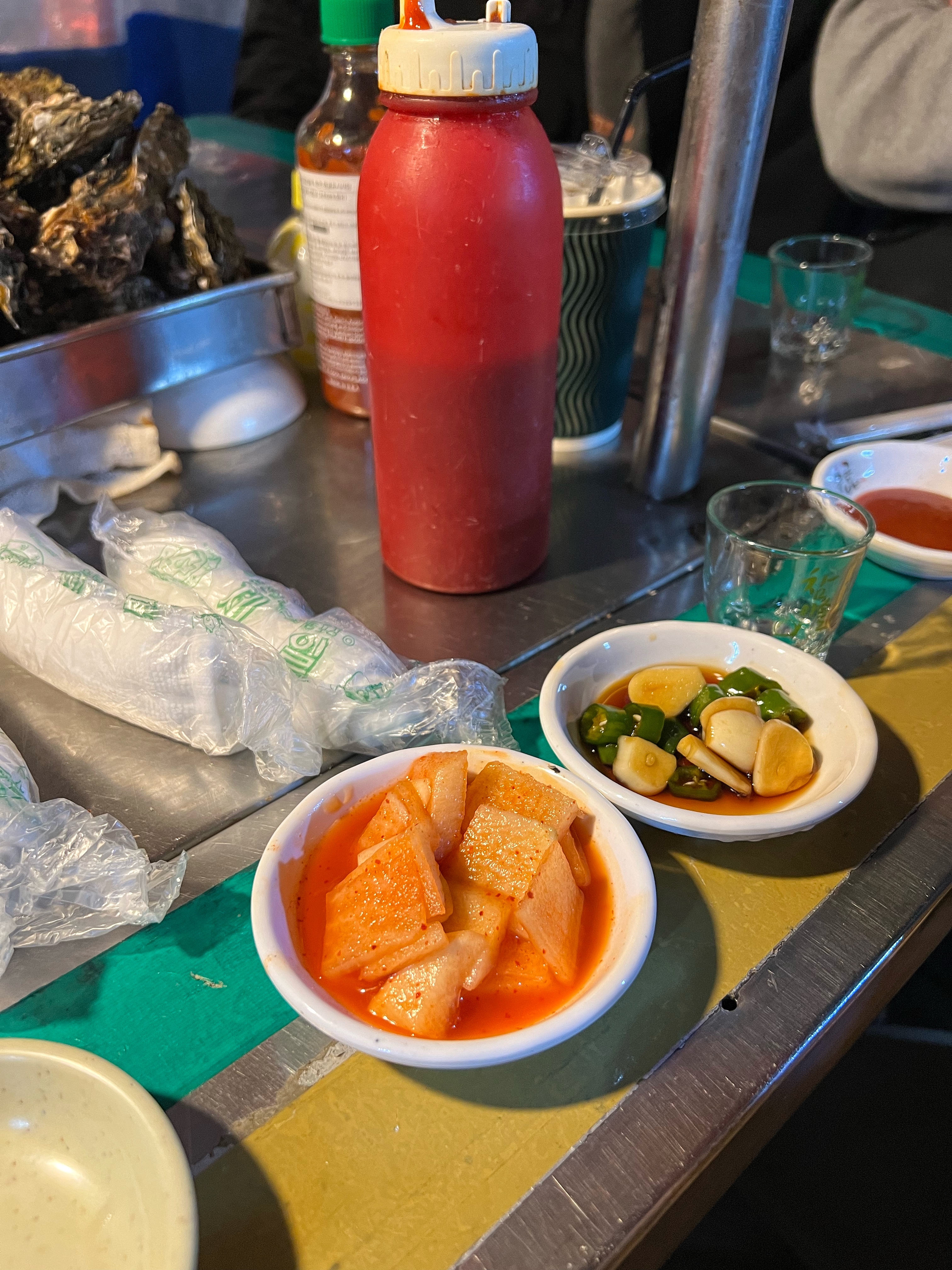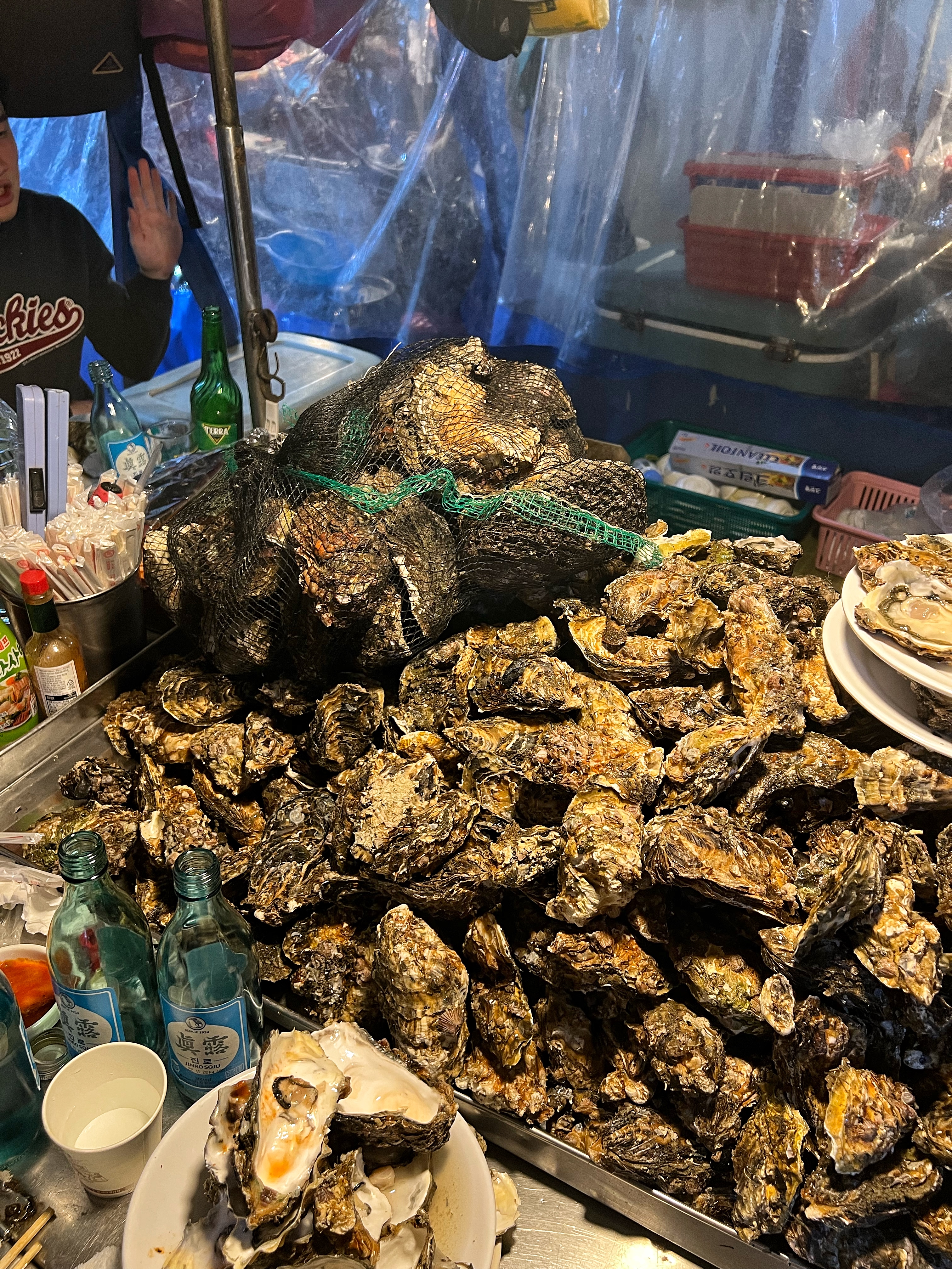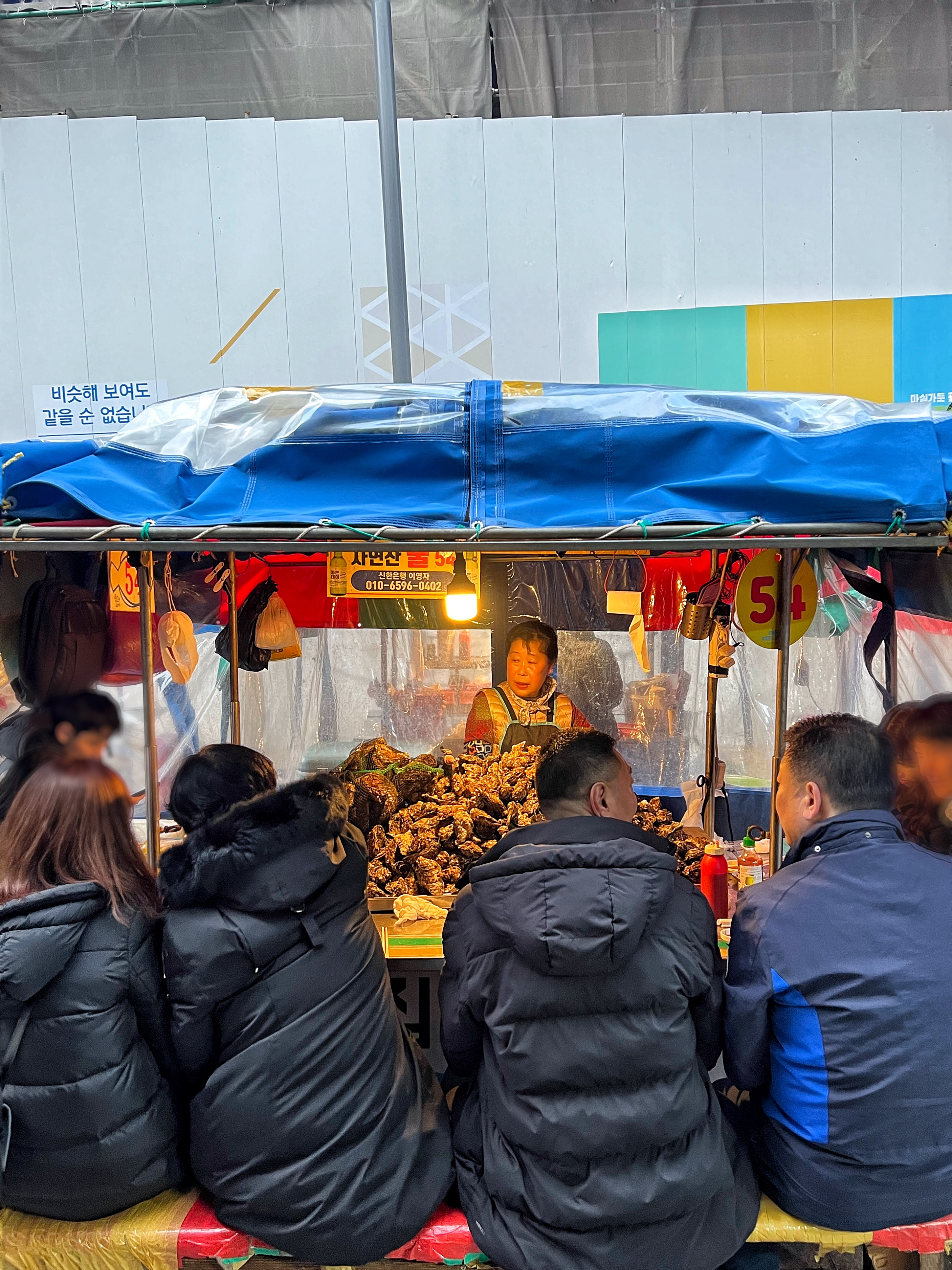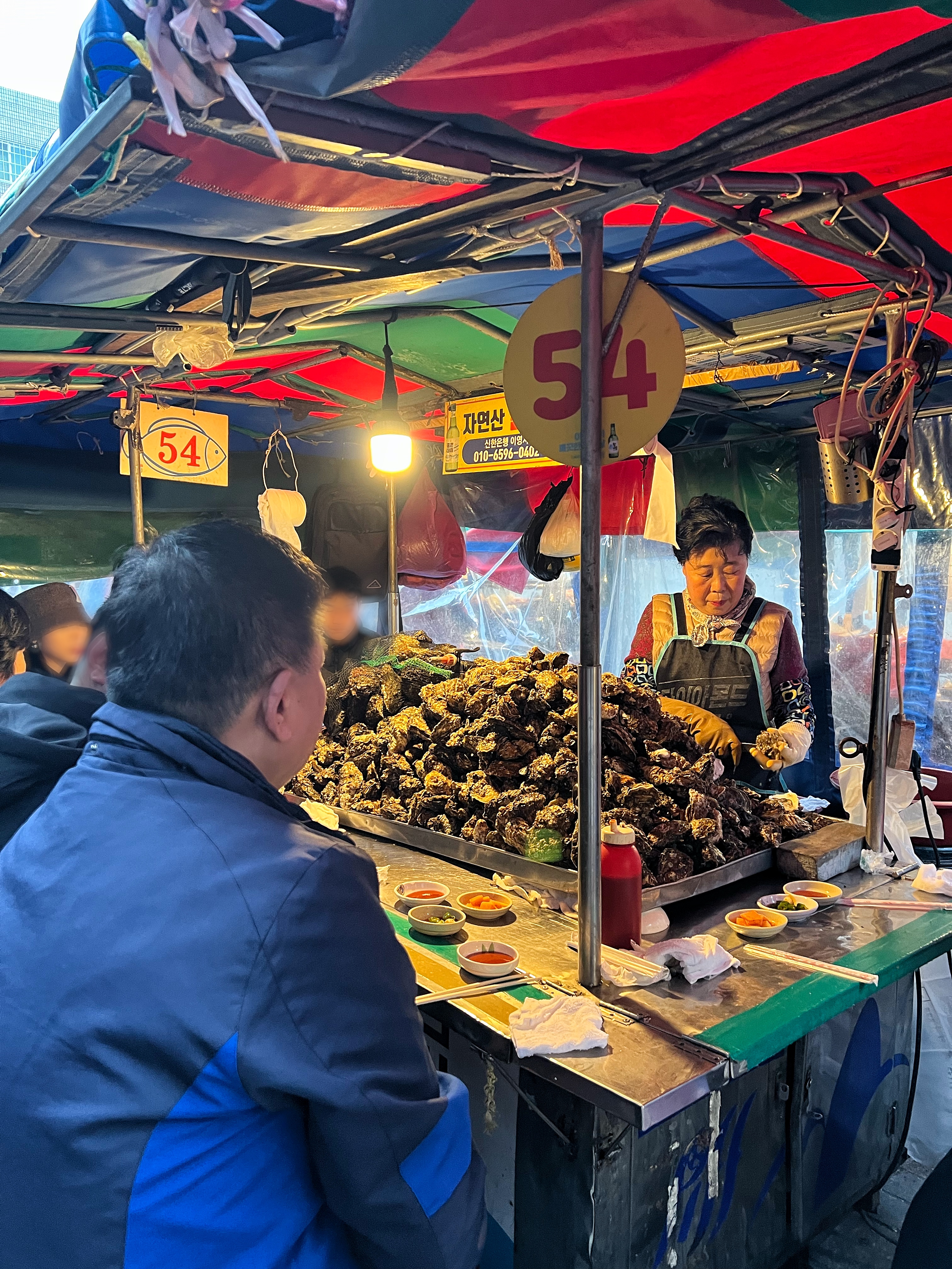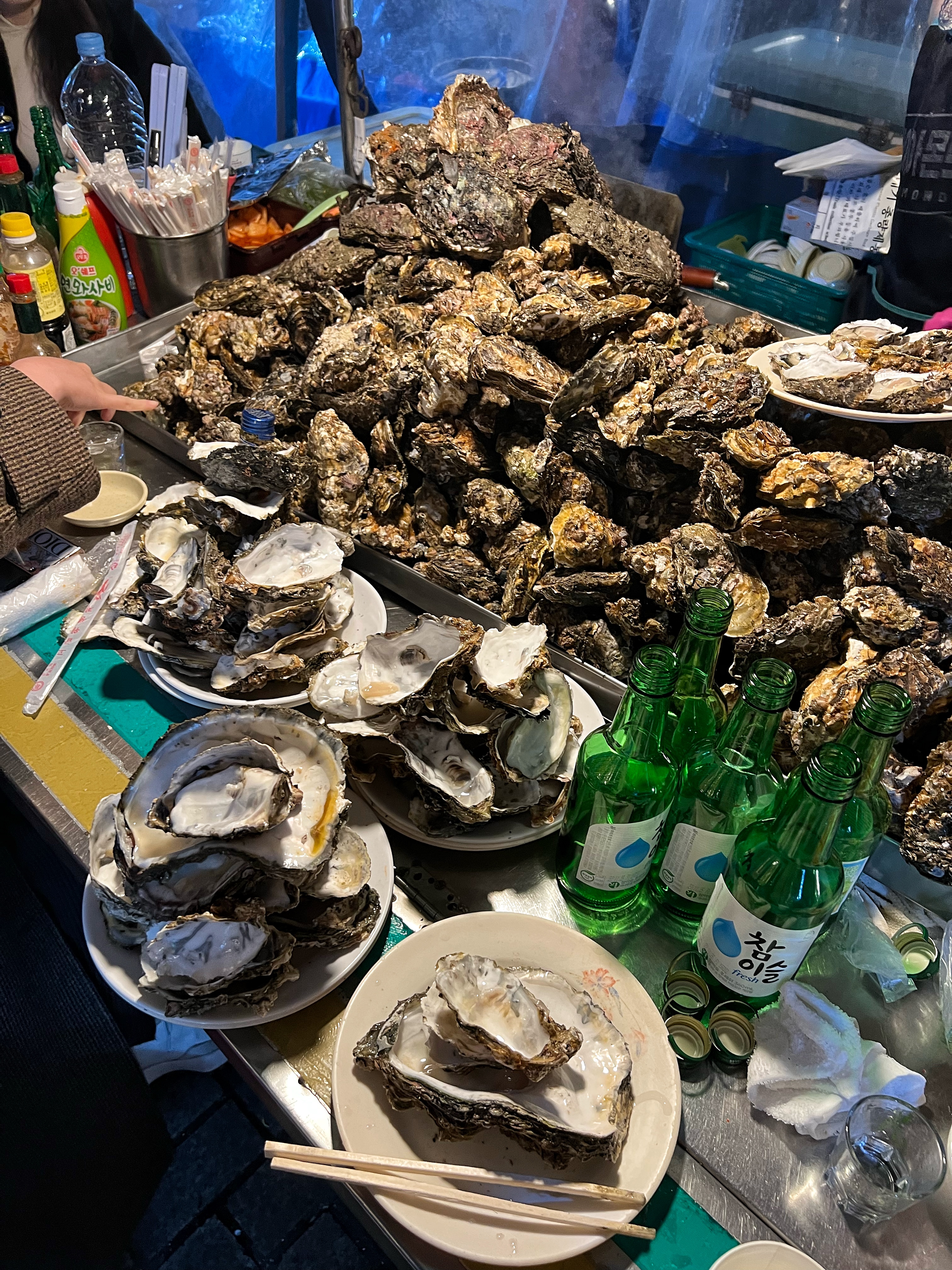 포장마차지만 뒤에 기다리는 사람들이 많다보니 편하게 먹을 생각은 없었다. 이런 분위기를 즐기며 급하지만 맛있게 빨리 흡입했다. 술도 쭉쭉 들어가고 굴도 쭉쭉 들어간 남포동 굴포차.