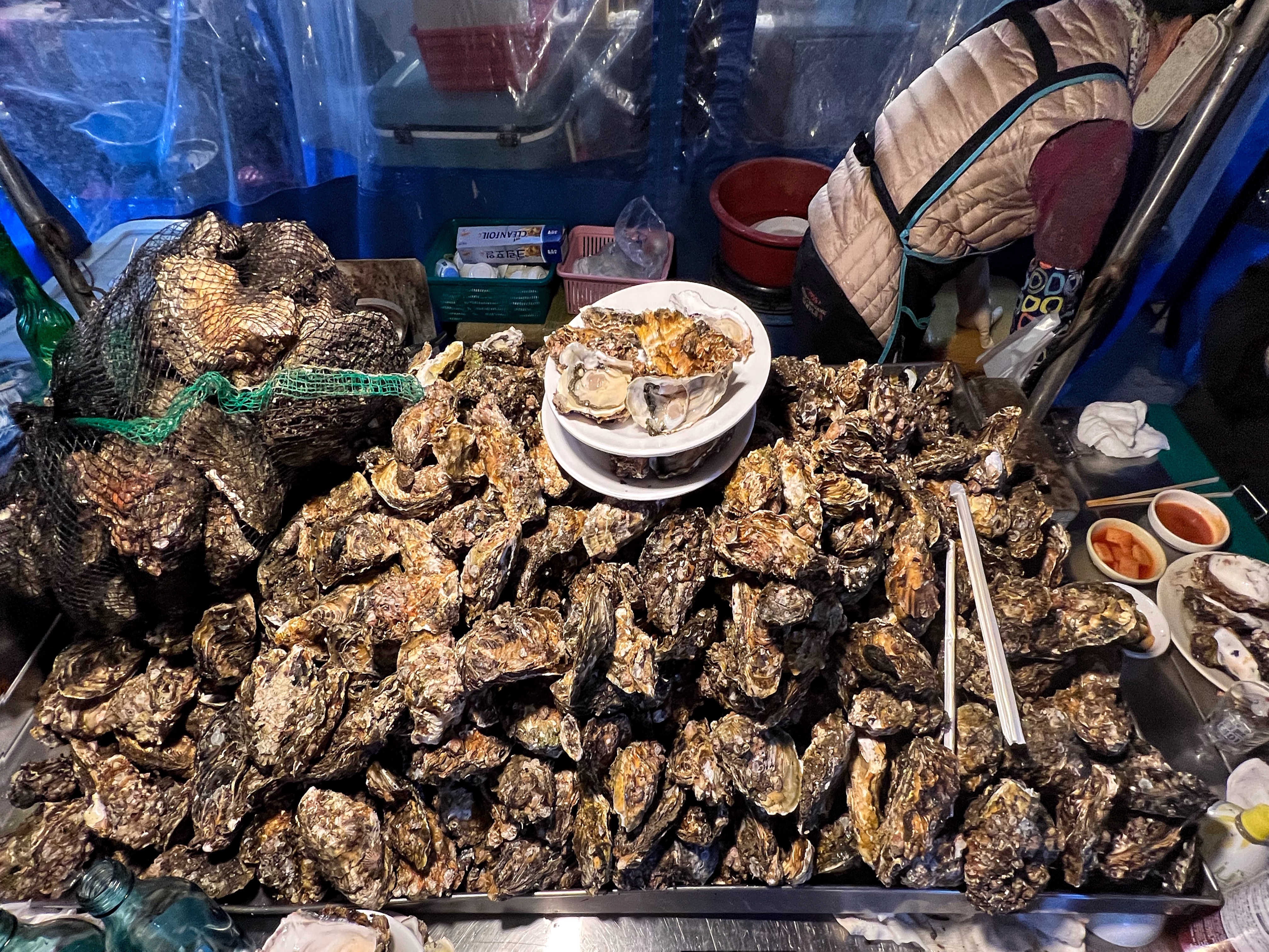 오랜만에 남포동 나들이. 굴이 산더미처럼 쌓인 굴포차를 방문했다.