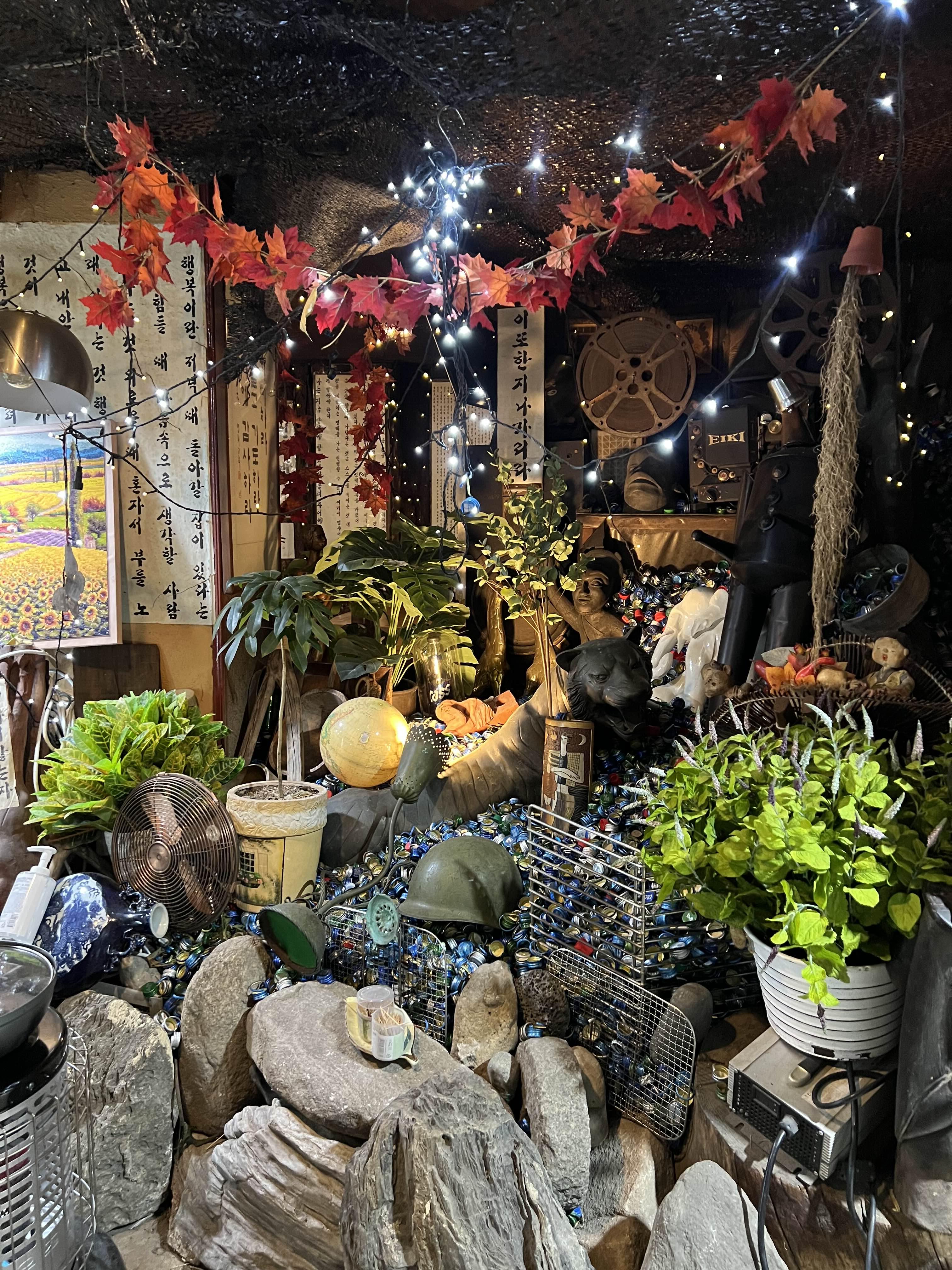 입구에 이렇게 소주 뚜껑이 산더미처럼 쌓여있다. 몇년 전에 지나가면서 봤을 때는 더 많은 뚜껑이 쌓여있었는데 그 보다는 적어지고, 골동품이 섞여있다.