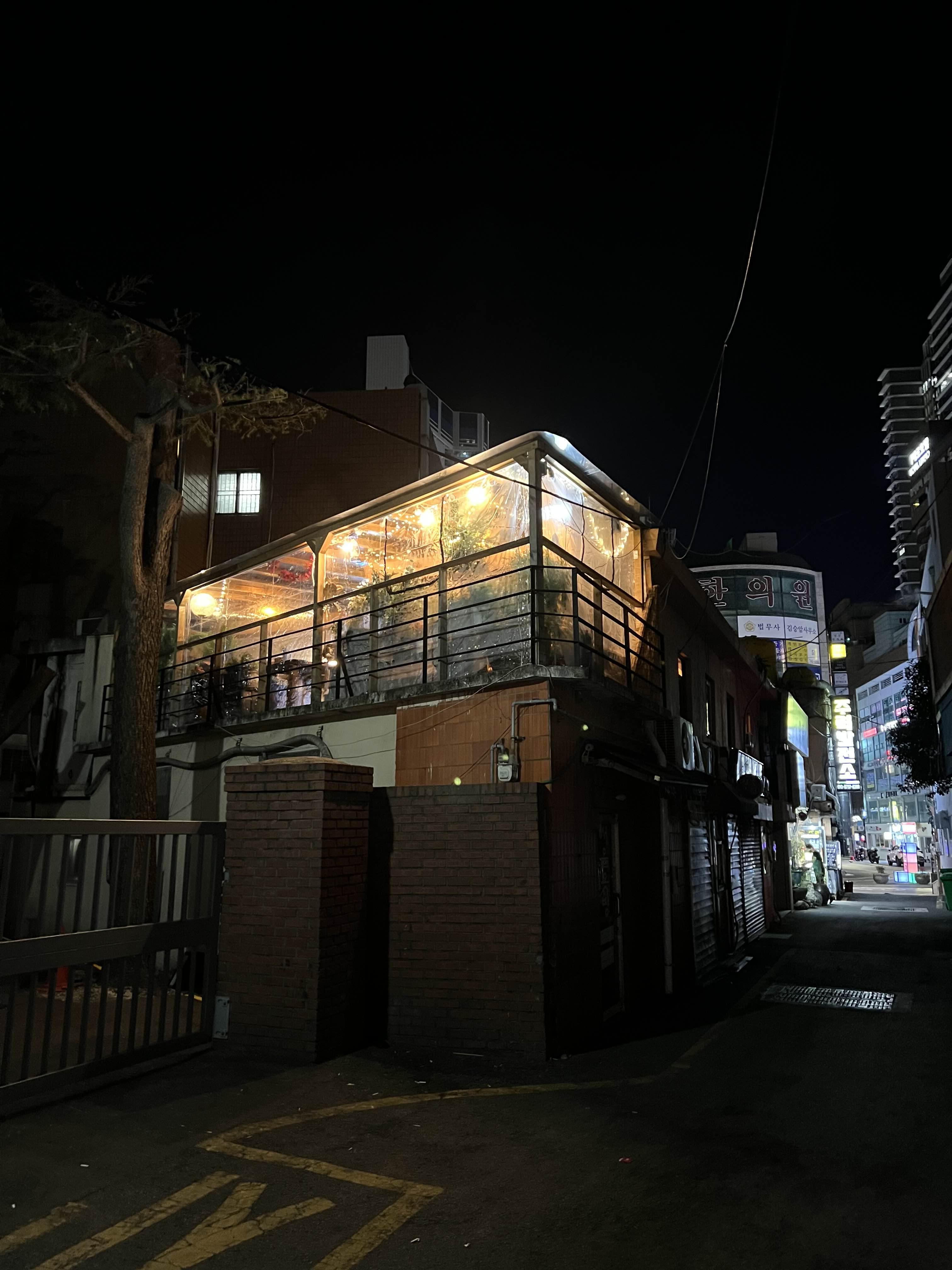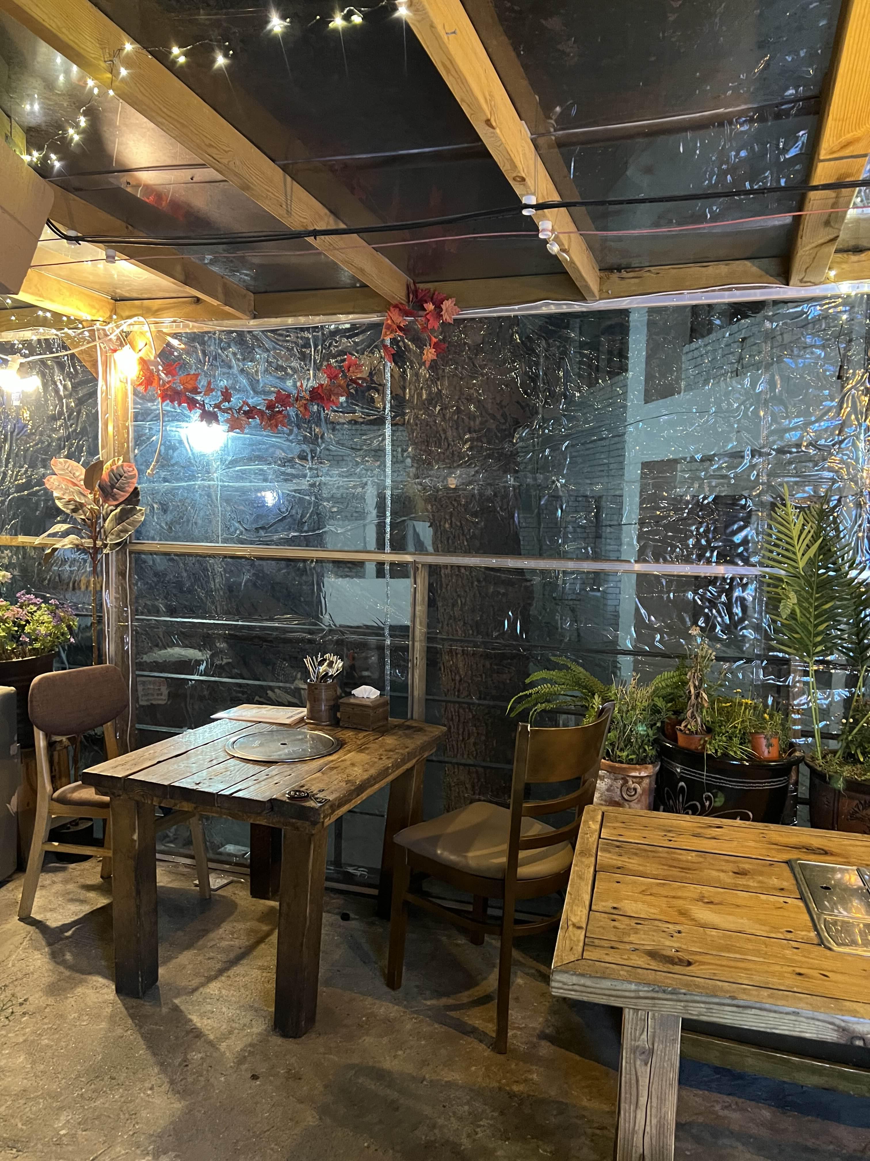 이렇게 분위기 좋은 테라스도 있었는데 겨울이라 방풍비닐을 쳐놨다. 날이 선선한 봄, 가을에는 이 자리에 앉아 소주한잔 기울여보고 싶다.