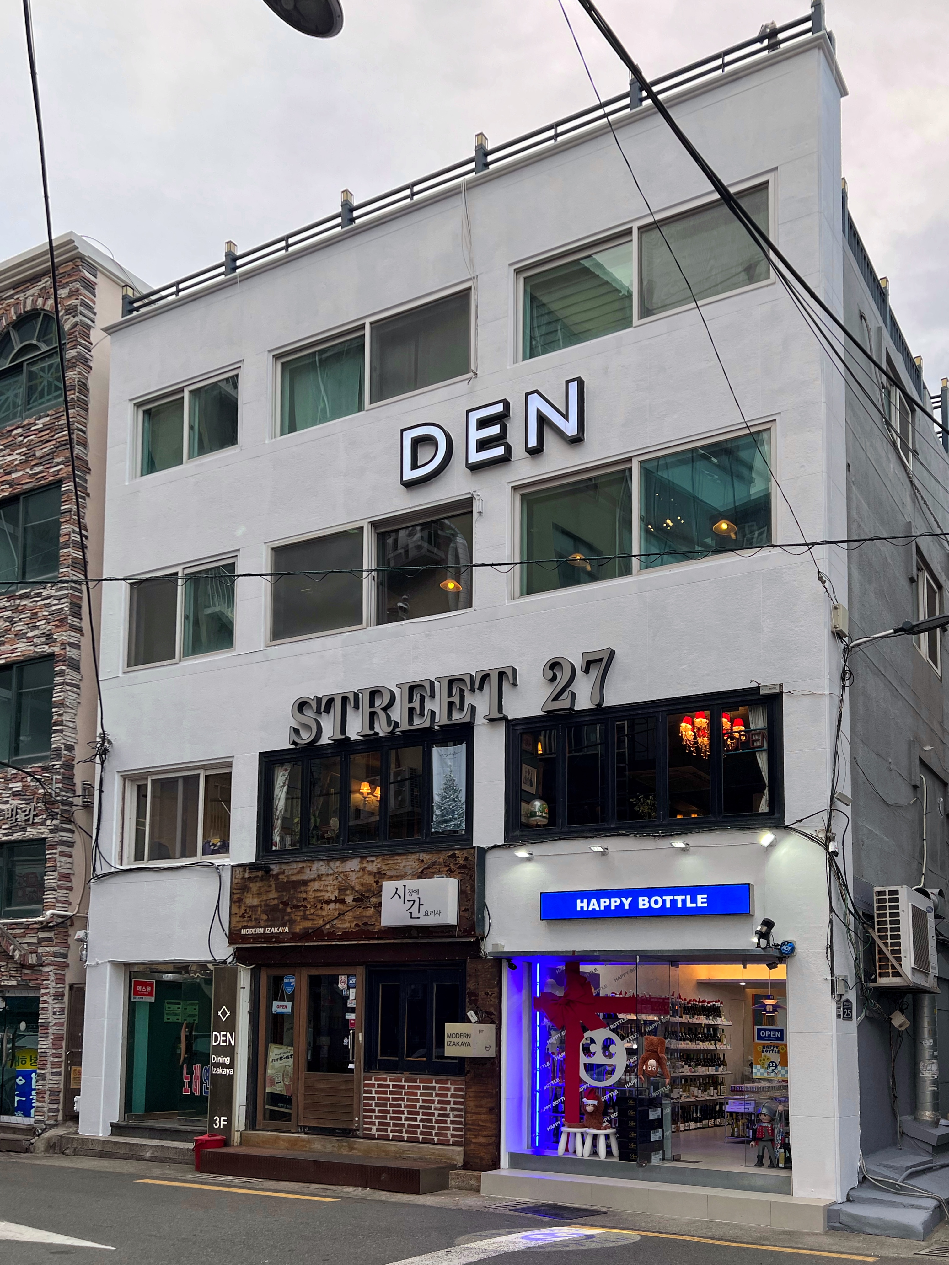 광안리에서 갈만한 이자카야를 찾아서. 옛 무비오빠가 있던 자리에 스트릿27이라는 펍이 생겼다. 그 위에는 바로 덴다이닝. 작년 가을즈음 방문했을 때는 만석이라 발길을 돌려야 했던 이자카야
