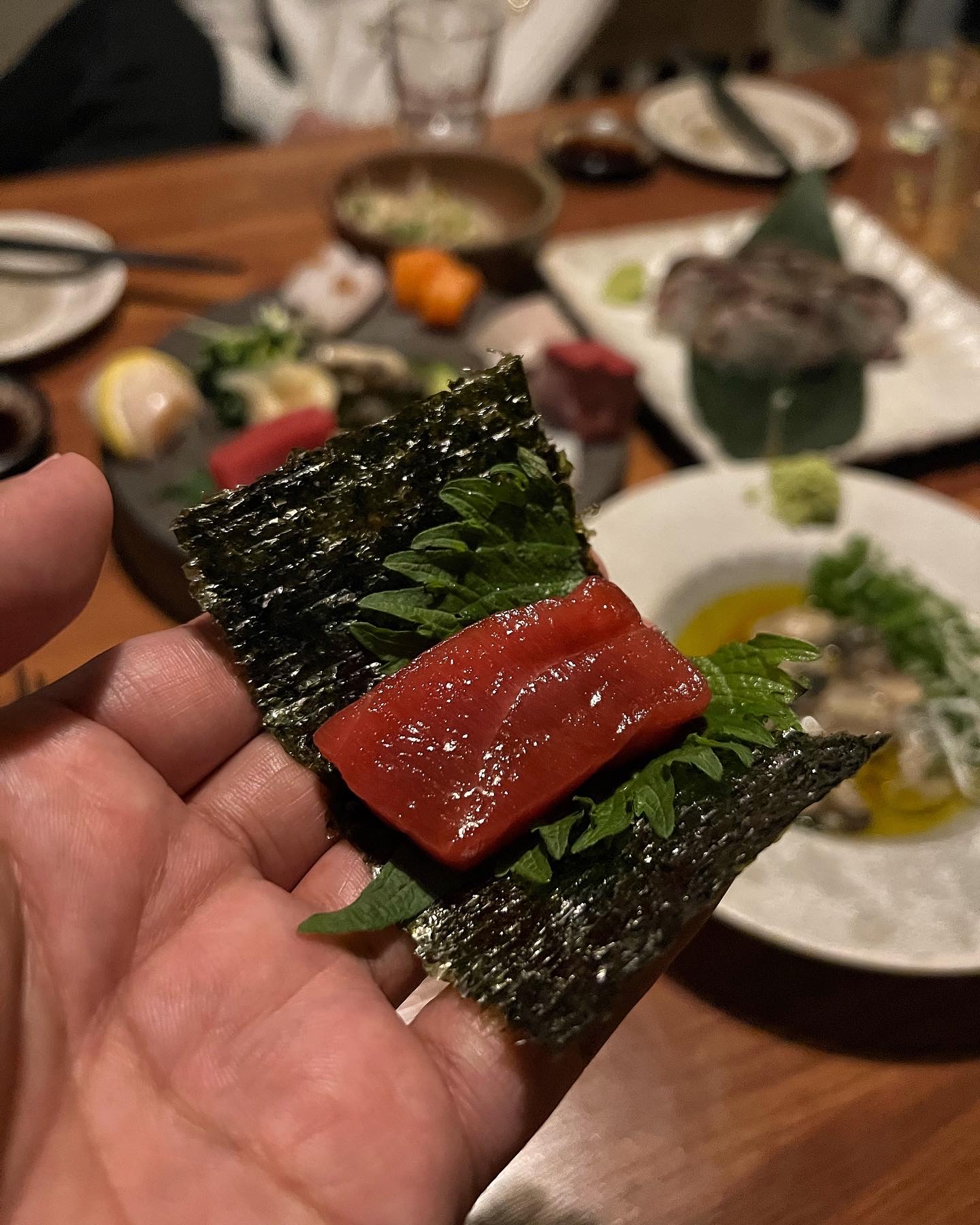 개인적으로 참치 속살은 간장에 푹 잠기도록 담궈뒀다가 차조기잎에 싸서 먹는 게 제일 맛있더라.