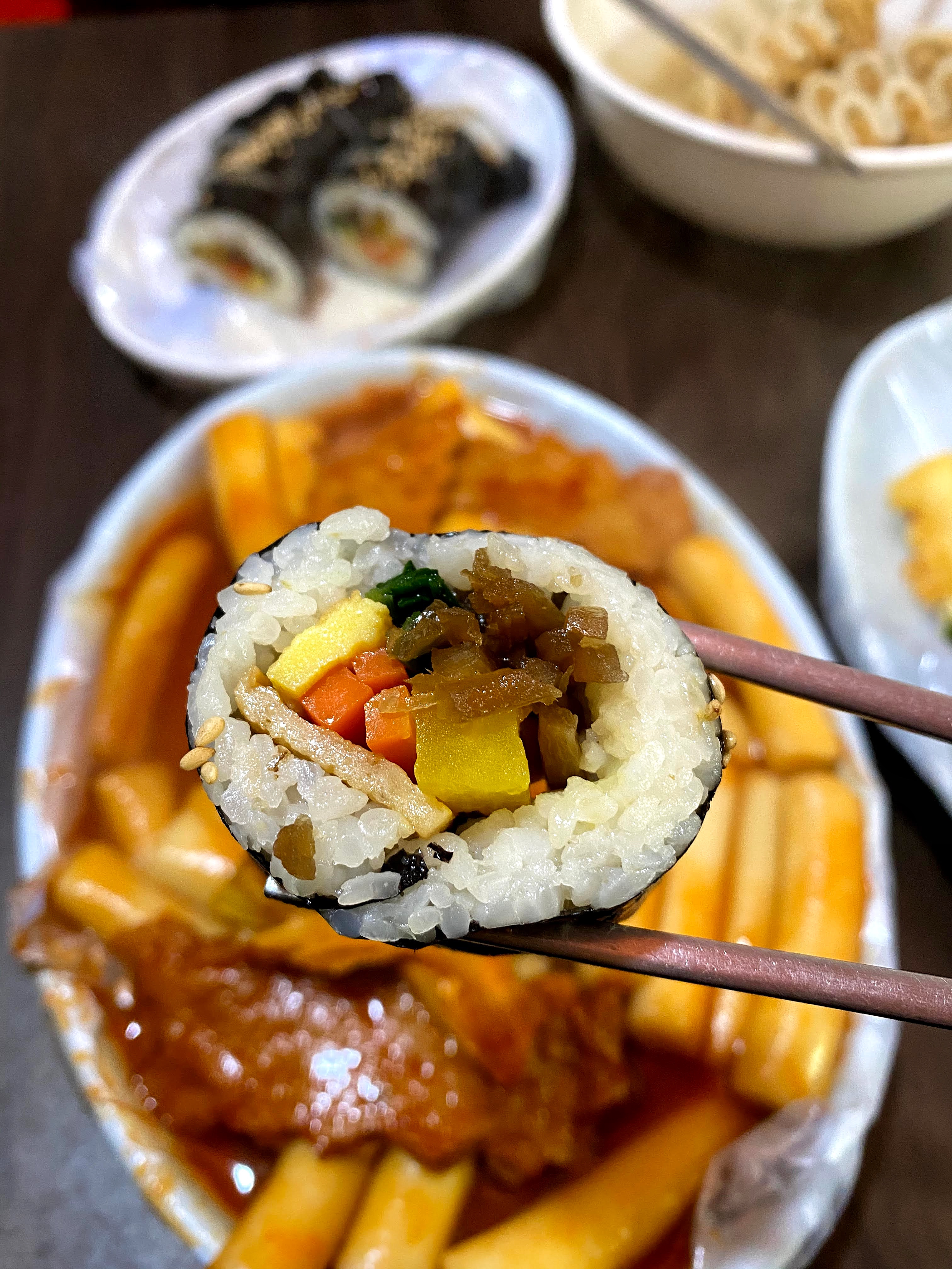 김밥도 워낙 좋아해서 떡볶이, 오뎅, 튀김과 함께 김밥 한줄 주문.