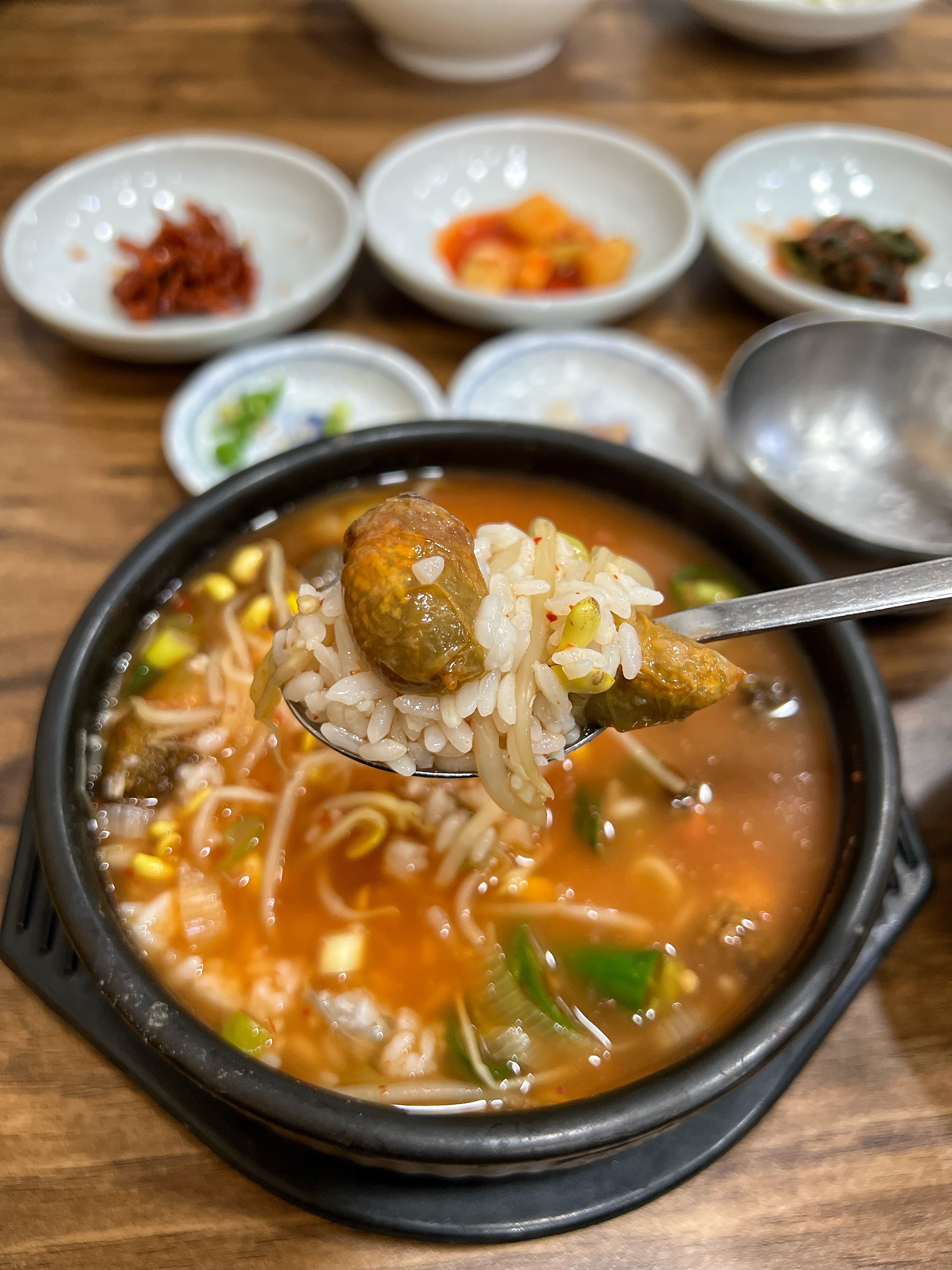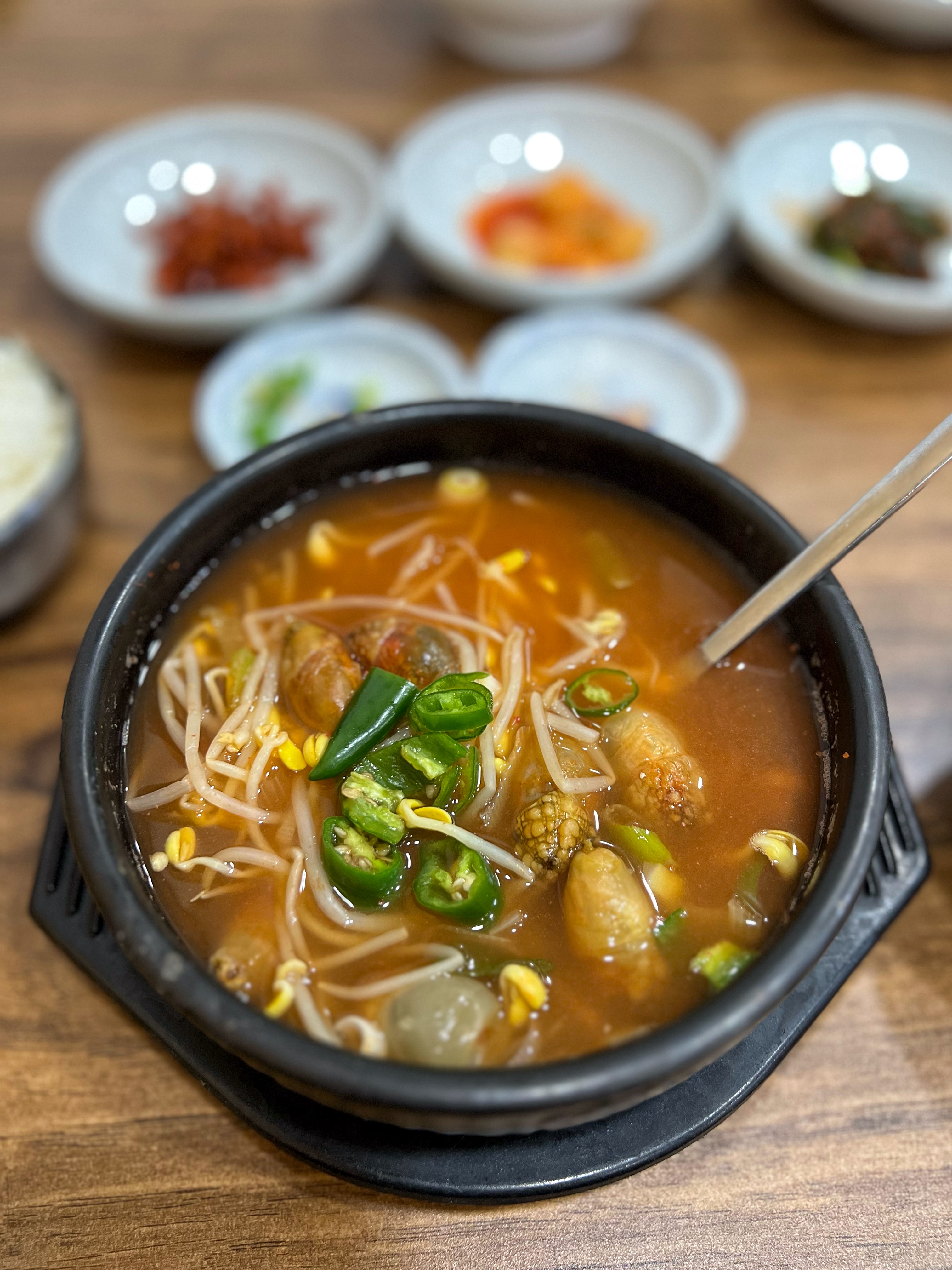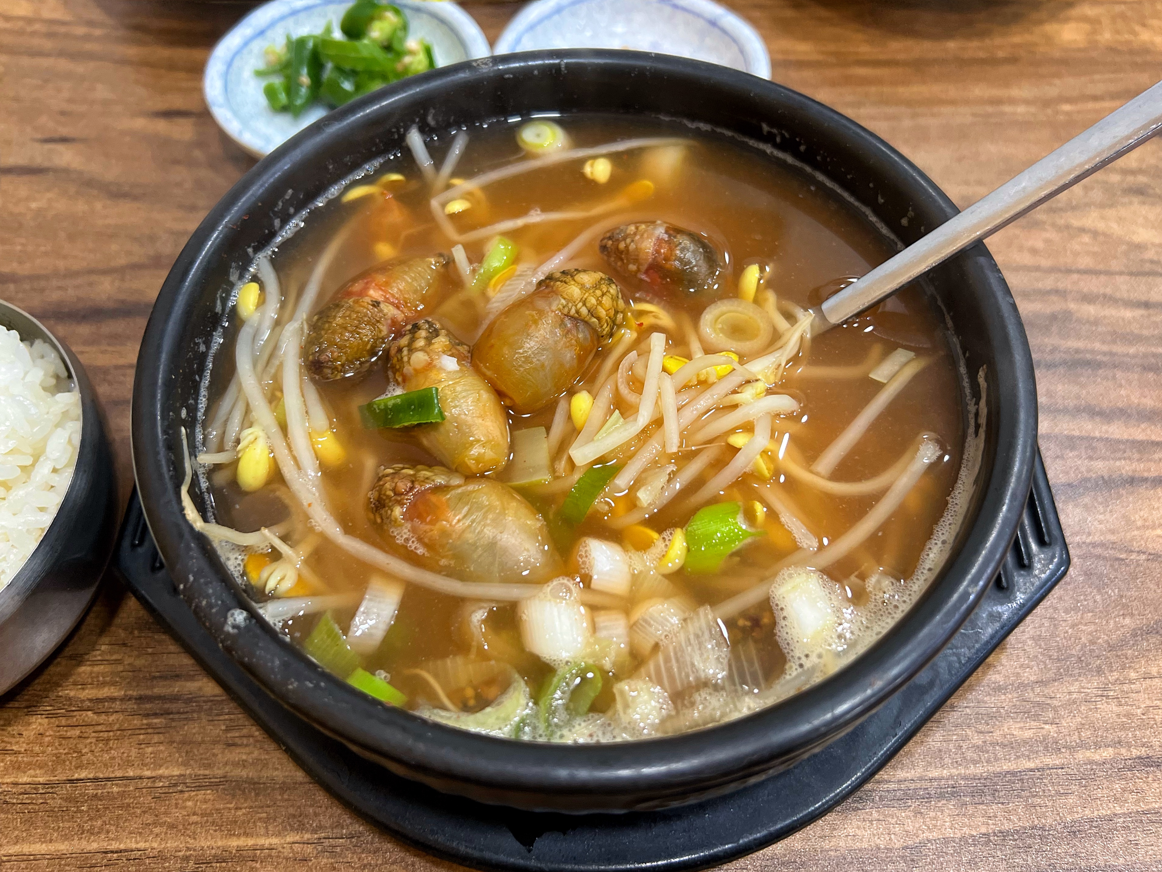 미더덕해장국에 공갓밥 투하