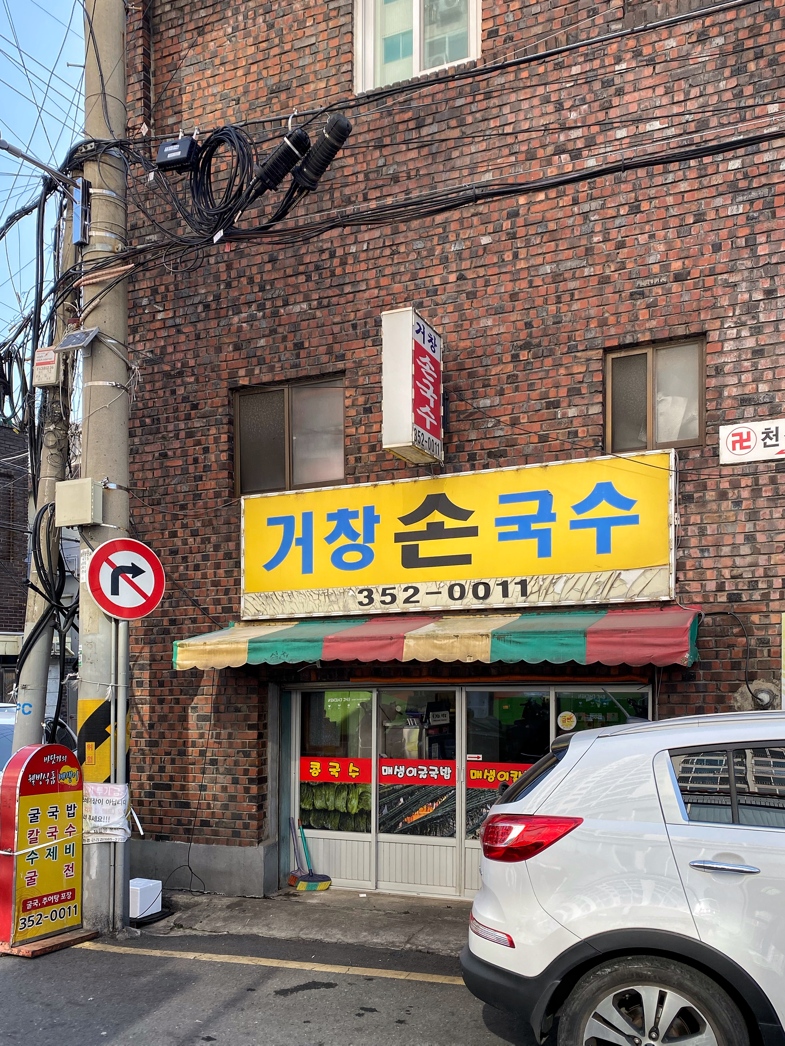 칠성동 주택가에 위치한 거창손국수. 이 날은 매생이굴전과 매생이 굴국밥이 목적이었다. 혼자가면 다 못 먹을까 걱정되어 둘이서 방문.