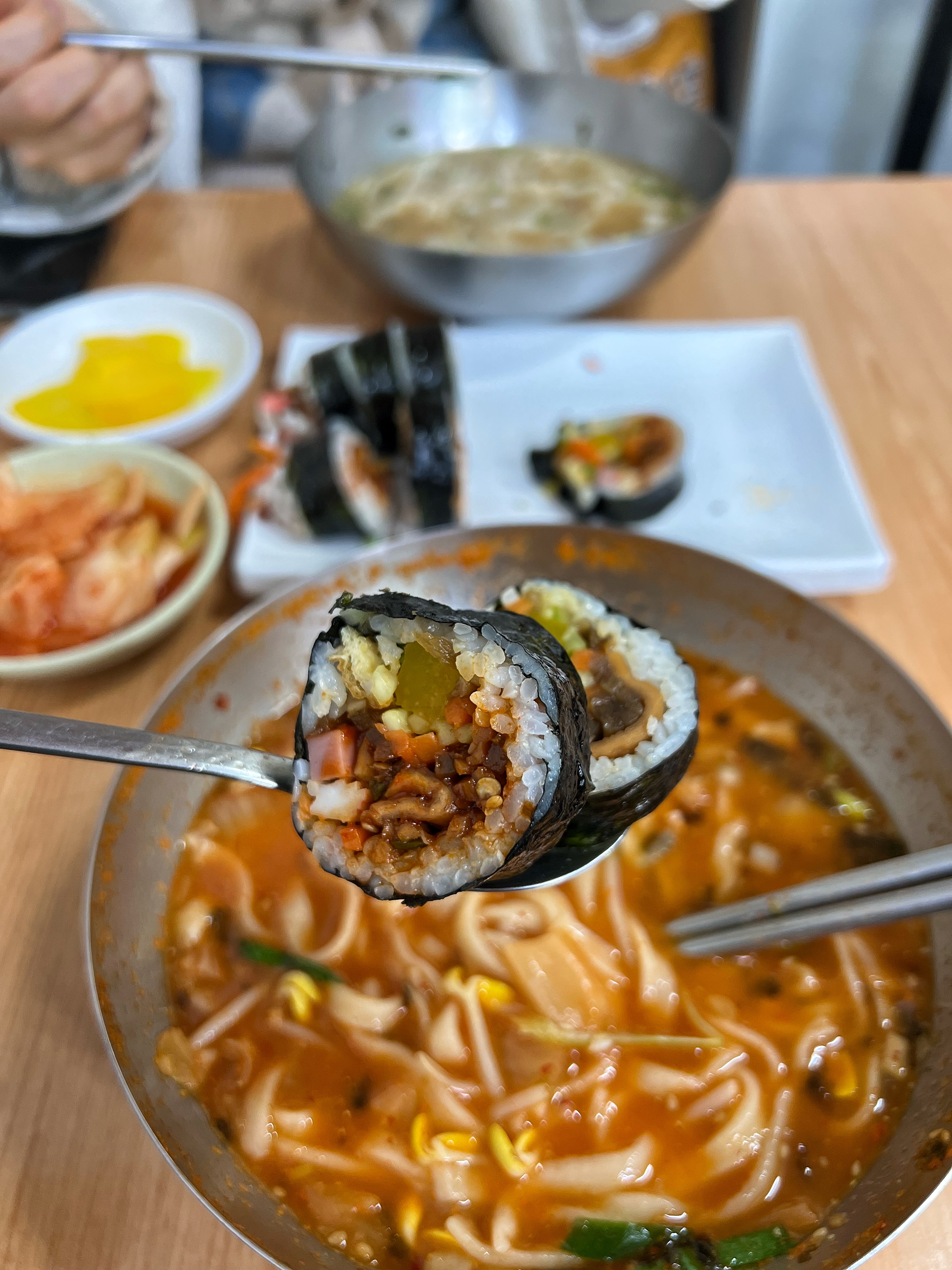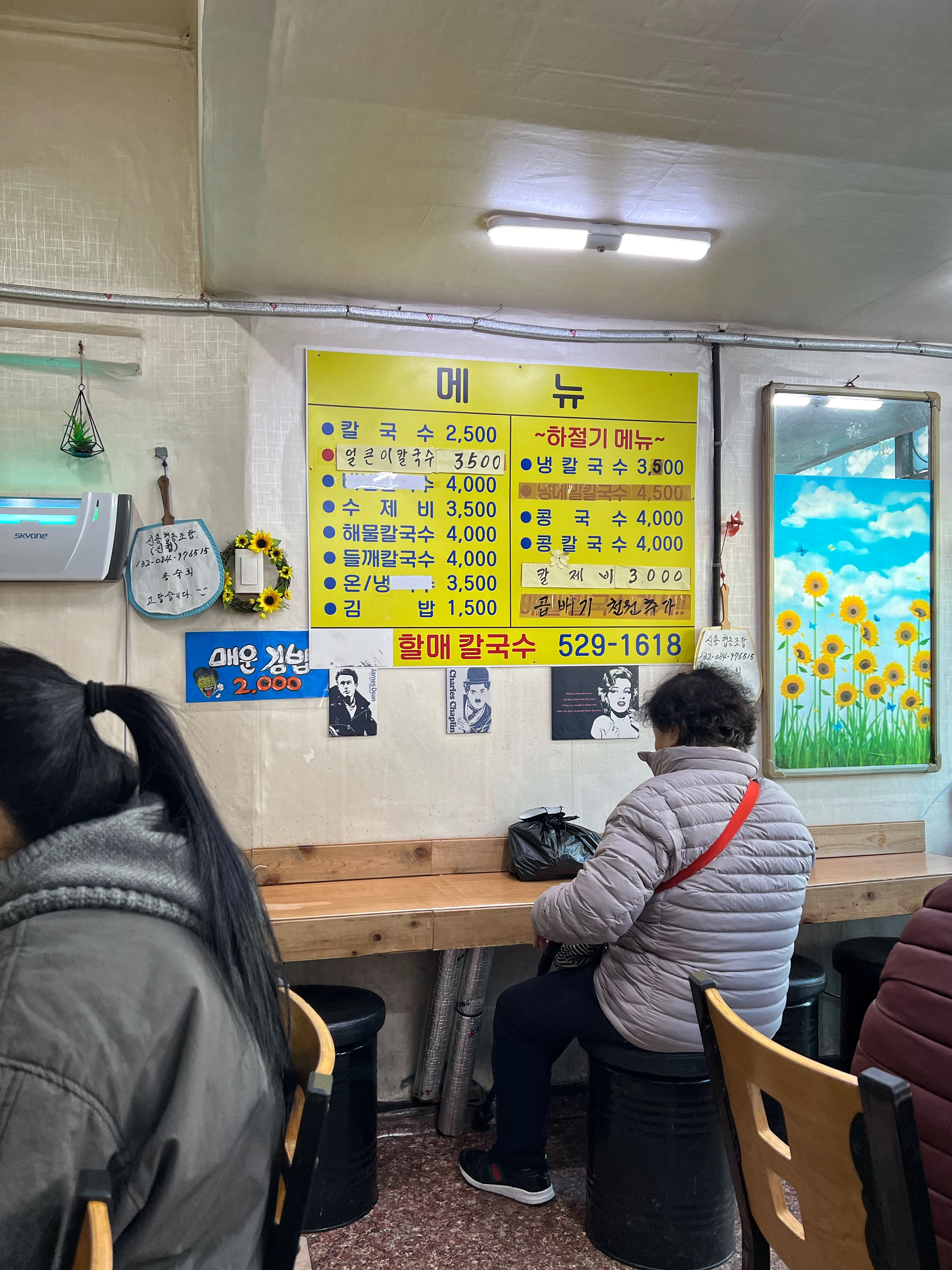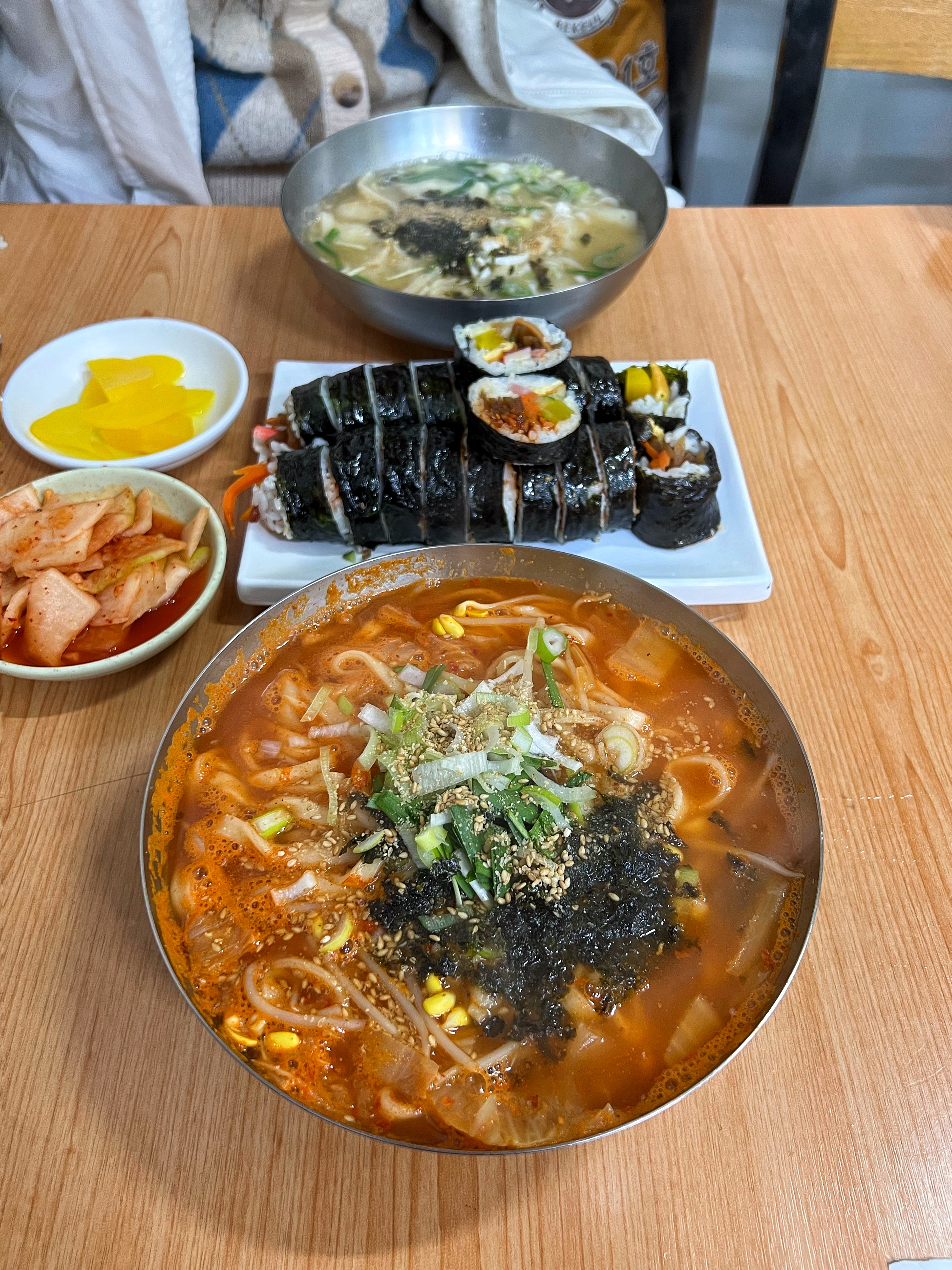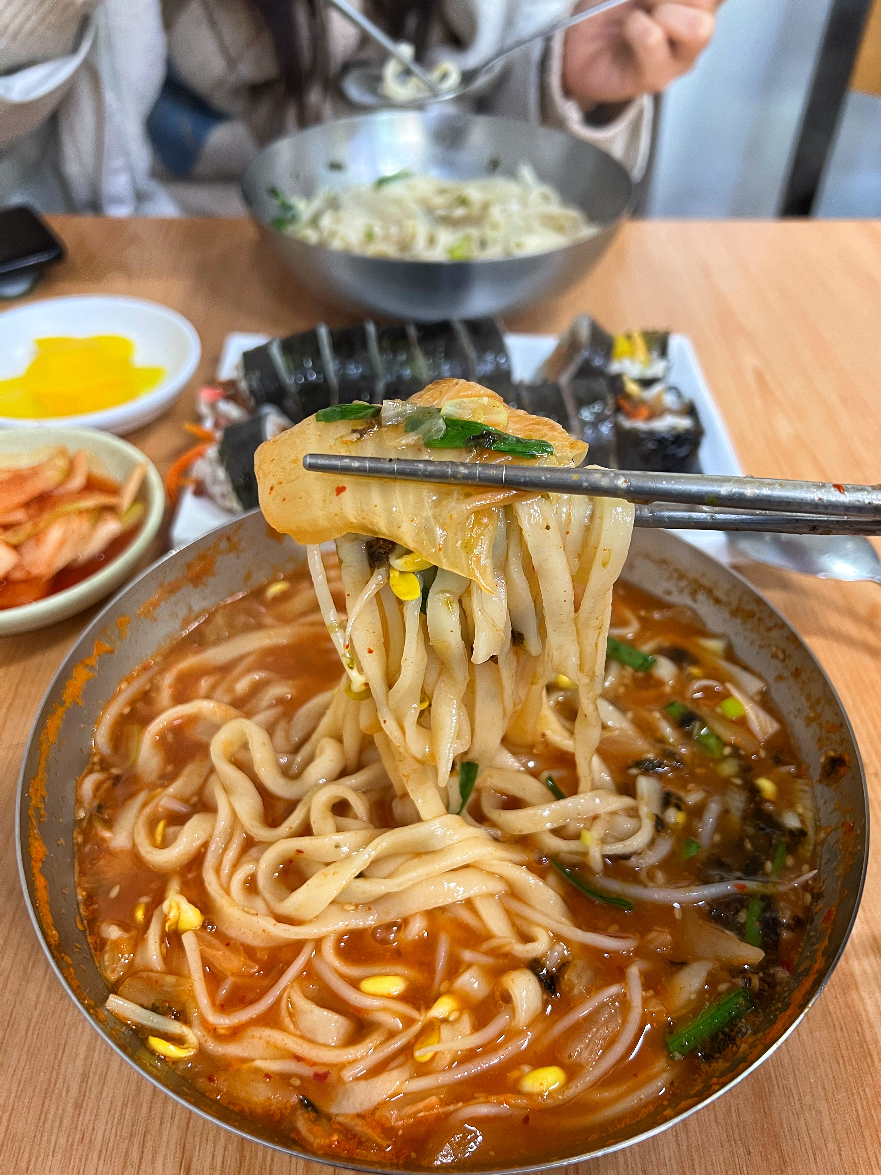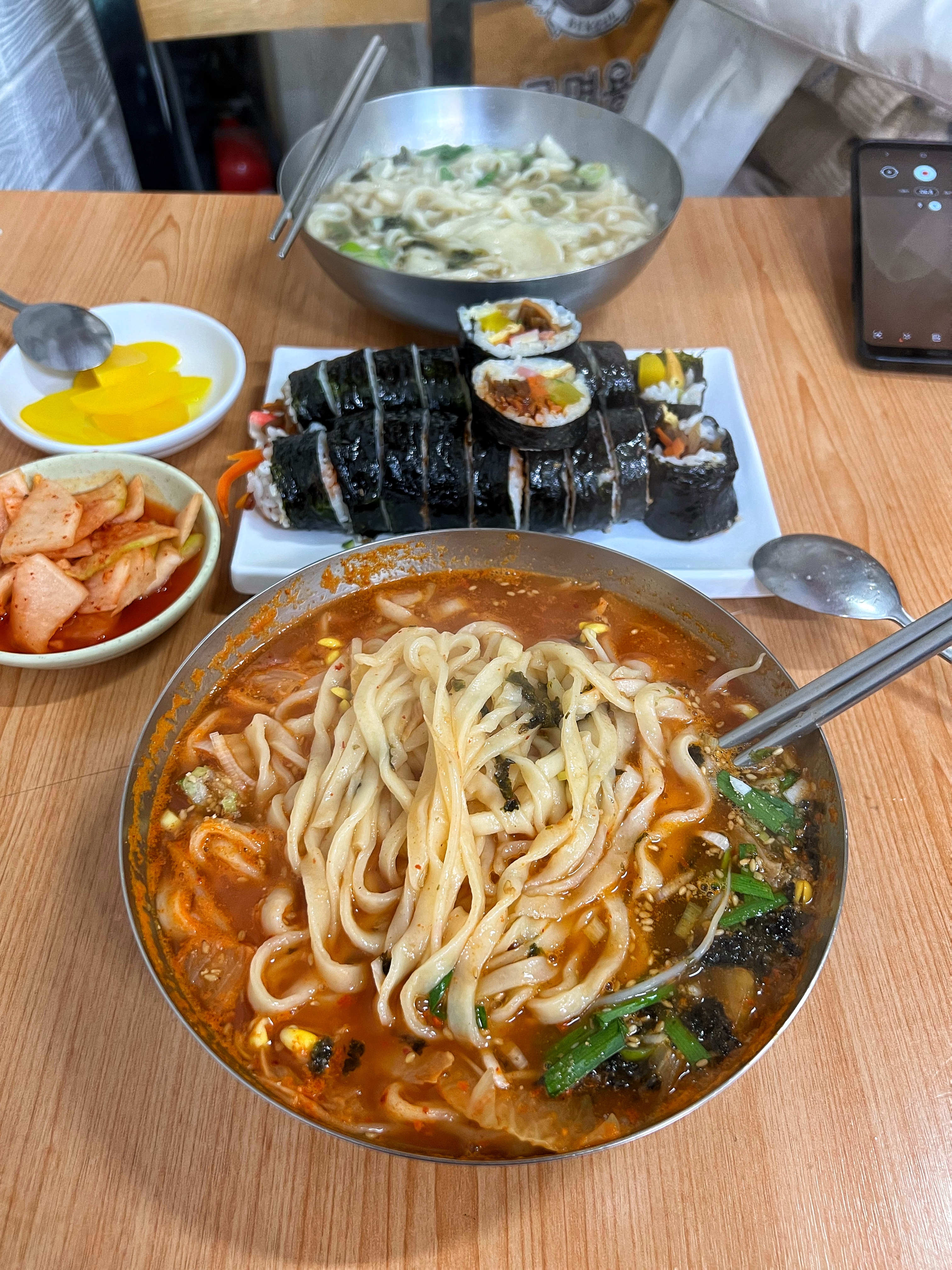 우리가 주문한 메뉴는 다 해서 1만원. 가장 가격이 저렴한 기본 김밥과 칼국수를 주문했으면 2인에 8,000원이다. 아무리 분식이라지만 요즘 세상에 이 가격으로 먹을 수 있는 곳이 얼마나 있을까. 최근에 서울은 칼국수 1만원 시대를 열었다는 기사도 봤다.