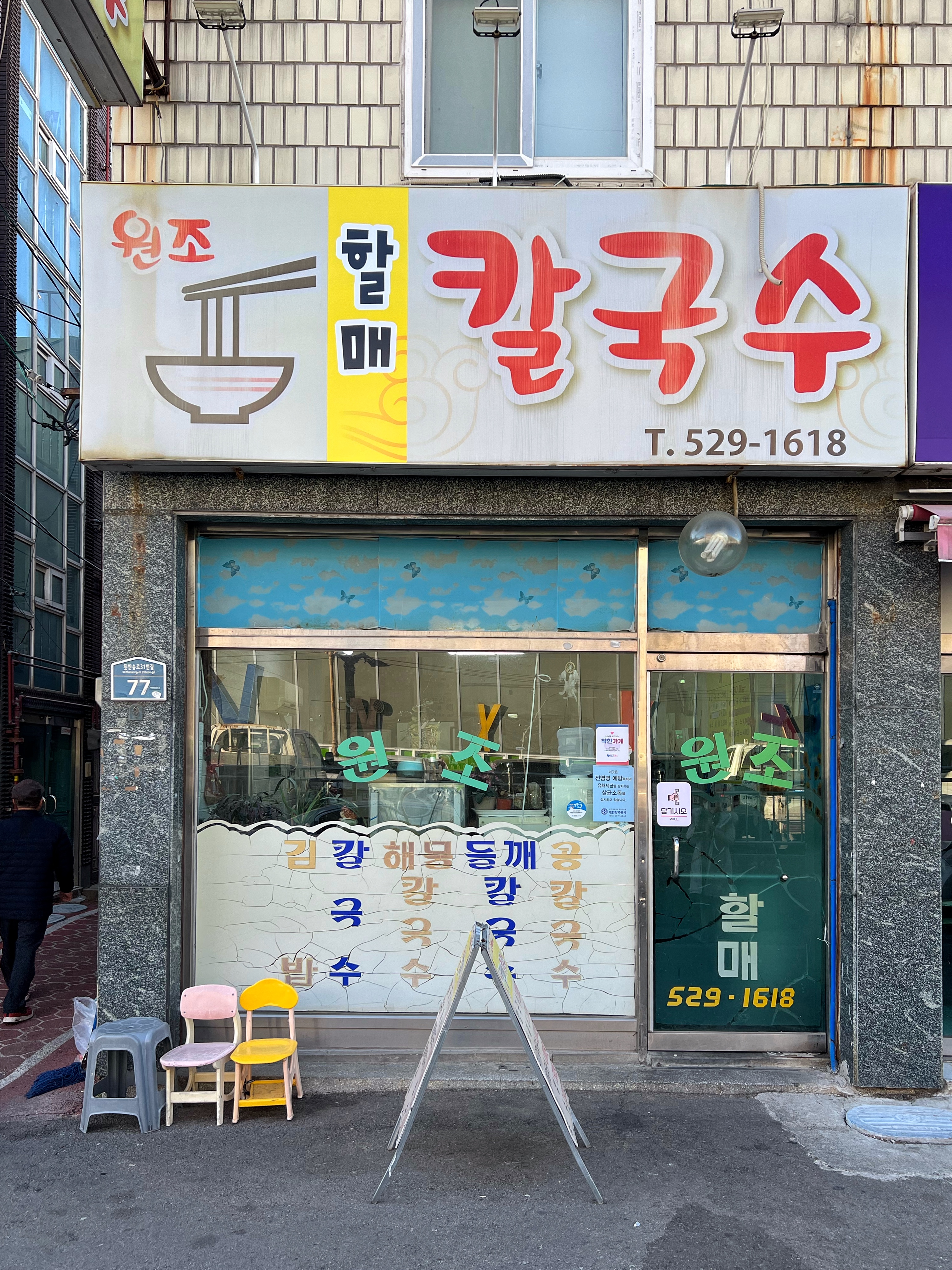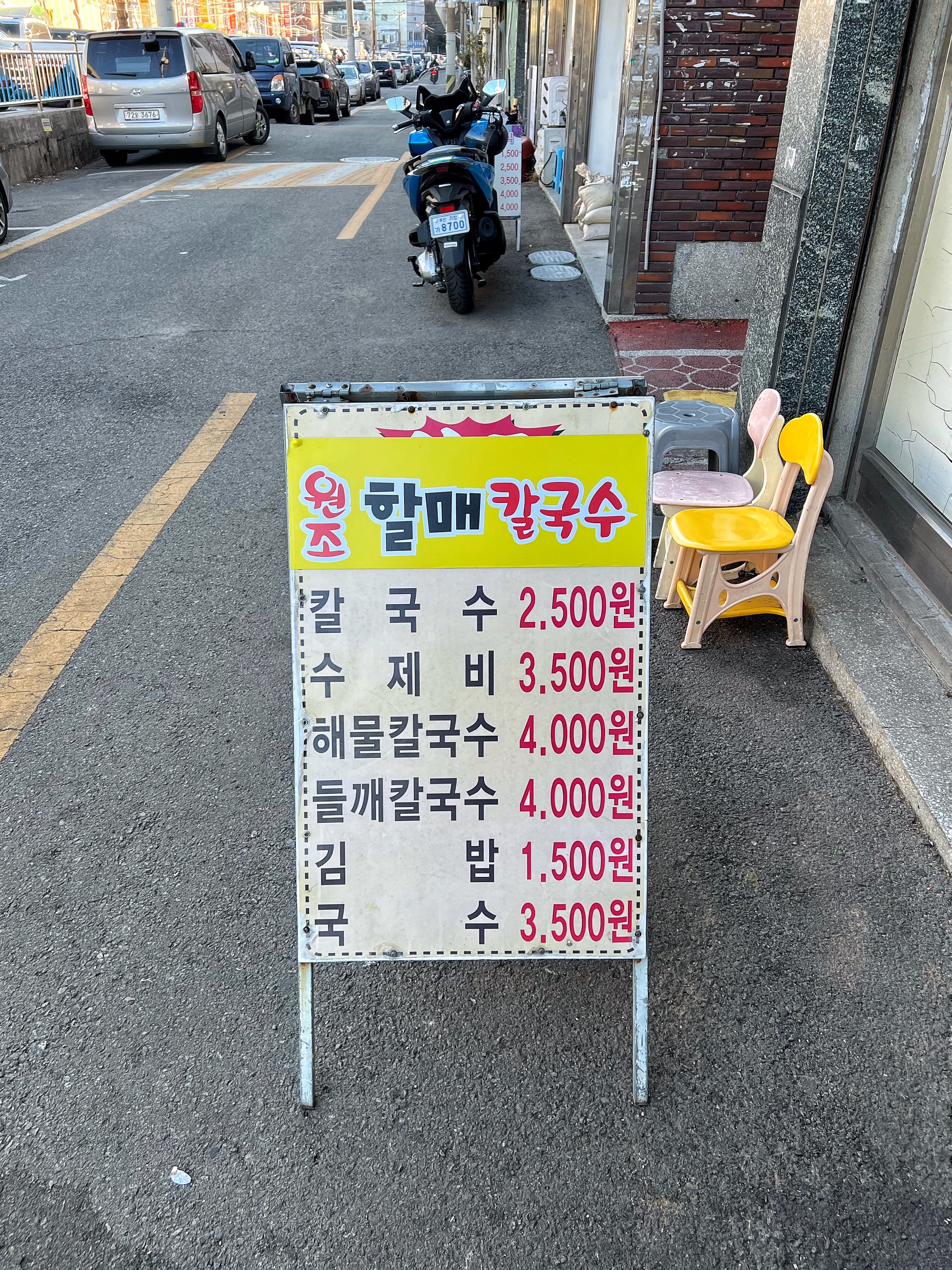반여농산물시장을 지나 영산대를 지나면 윗반송이라는 지하철4호선 역이 나온다. 반송큰시장앞에 가성비 엄청난 집이 있다는 맛있는부산 밴드 글을 보고 찜 해둔 곳 끝자할매칼국수.