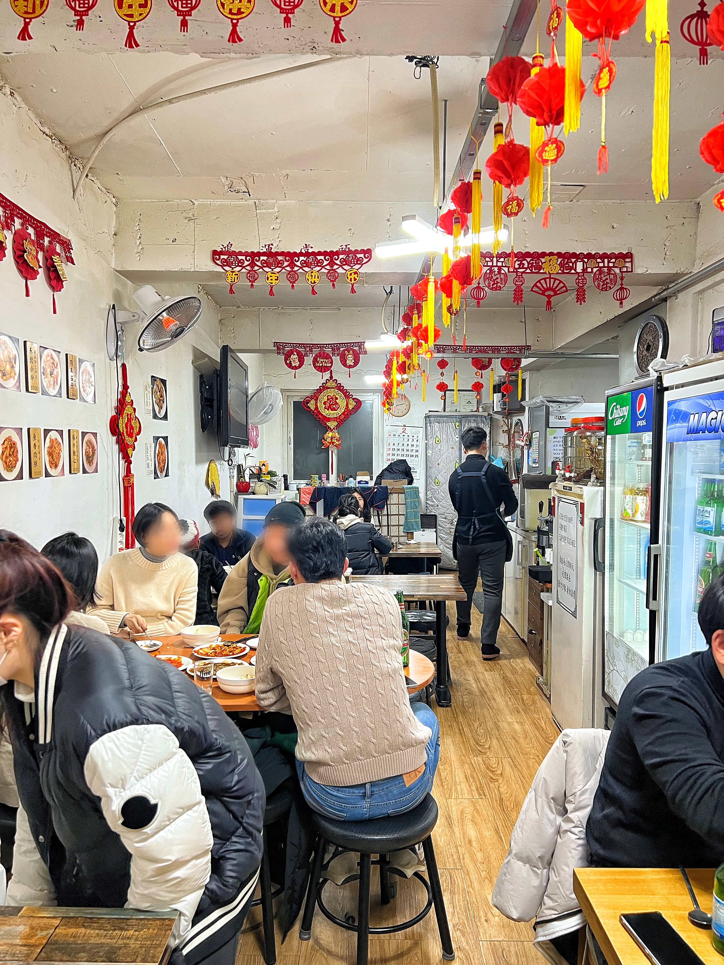 가게에는 복을 부르는 빨간 장식이 있지만 내부는 전반적으로 허름하고 투박하다.