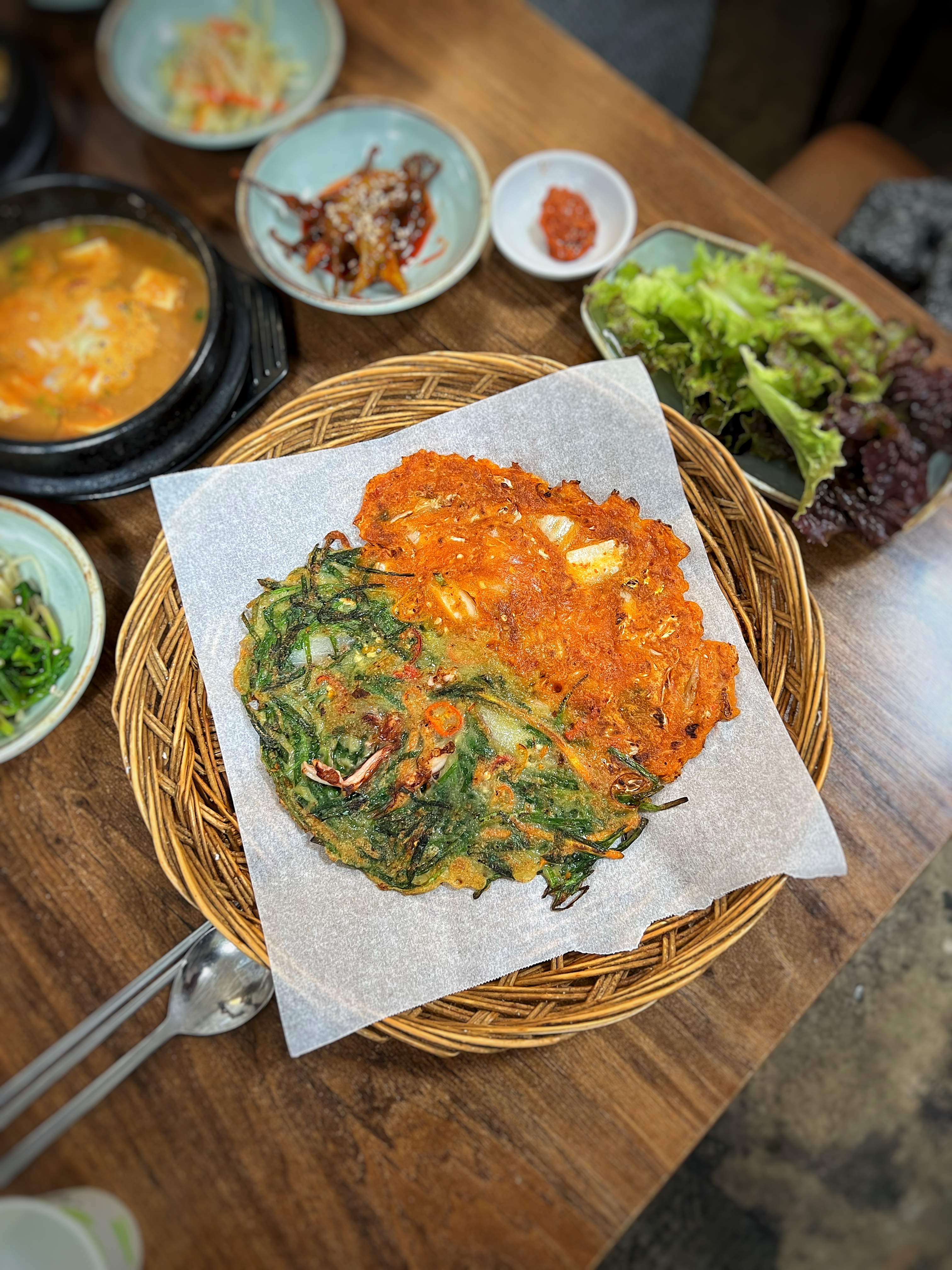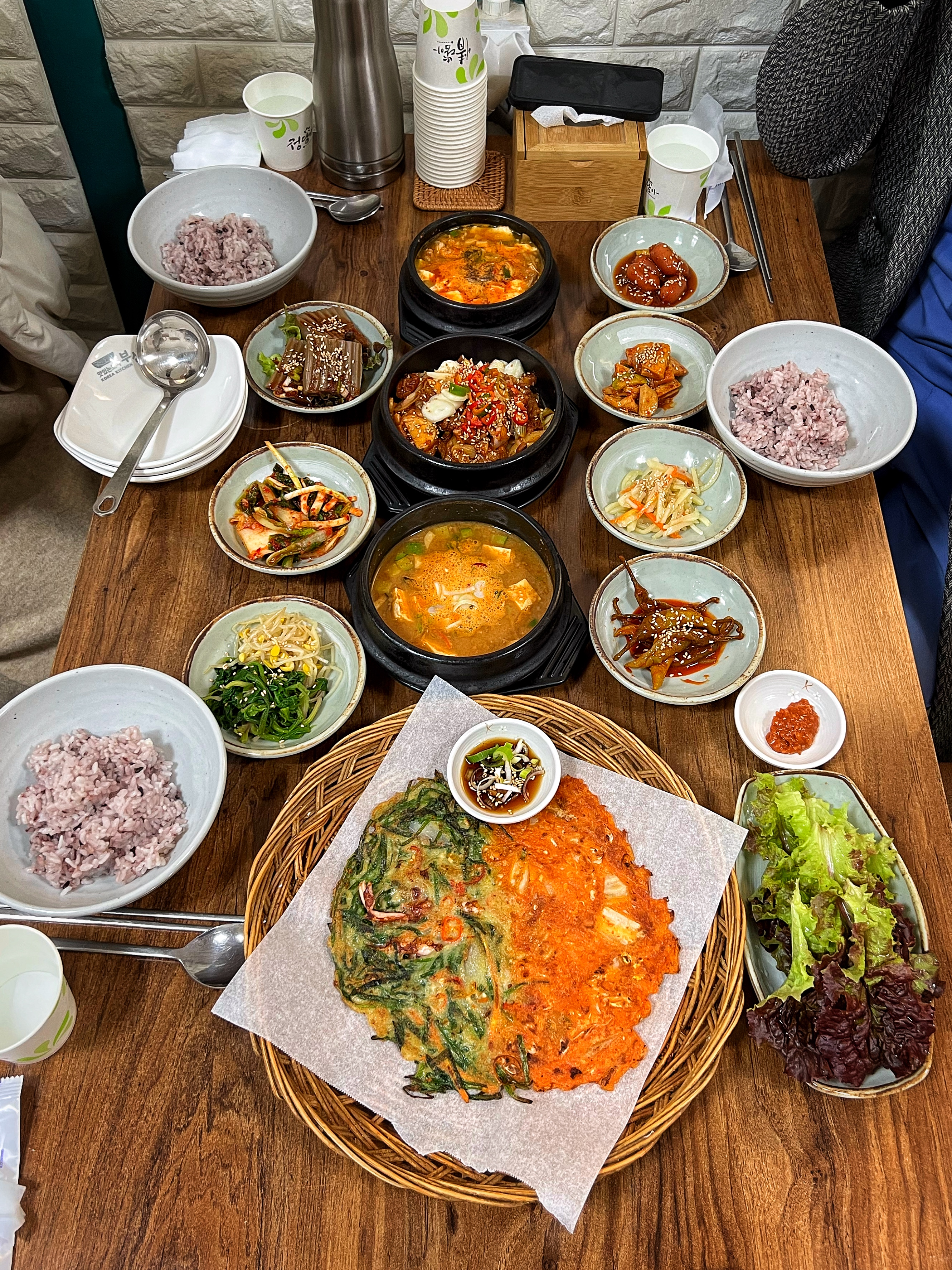 밥 한 공기는 두루치기와 쌈을 싸서 즐기고, 간간히 순두부를 곁들여준다. 두 번째 밥은 나물과 청국장을 함께 비벼서 먹으면 꿀맛이다.