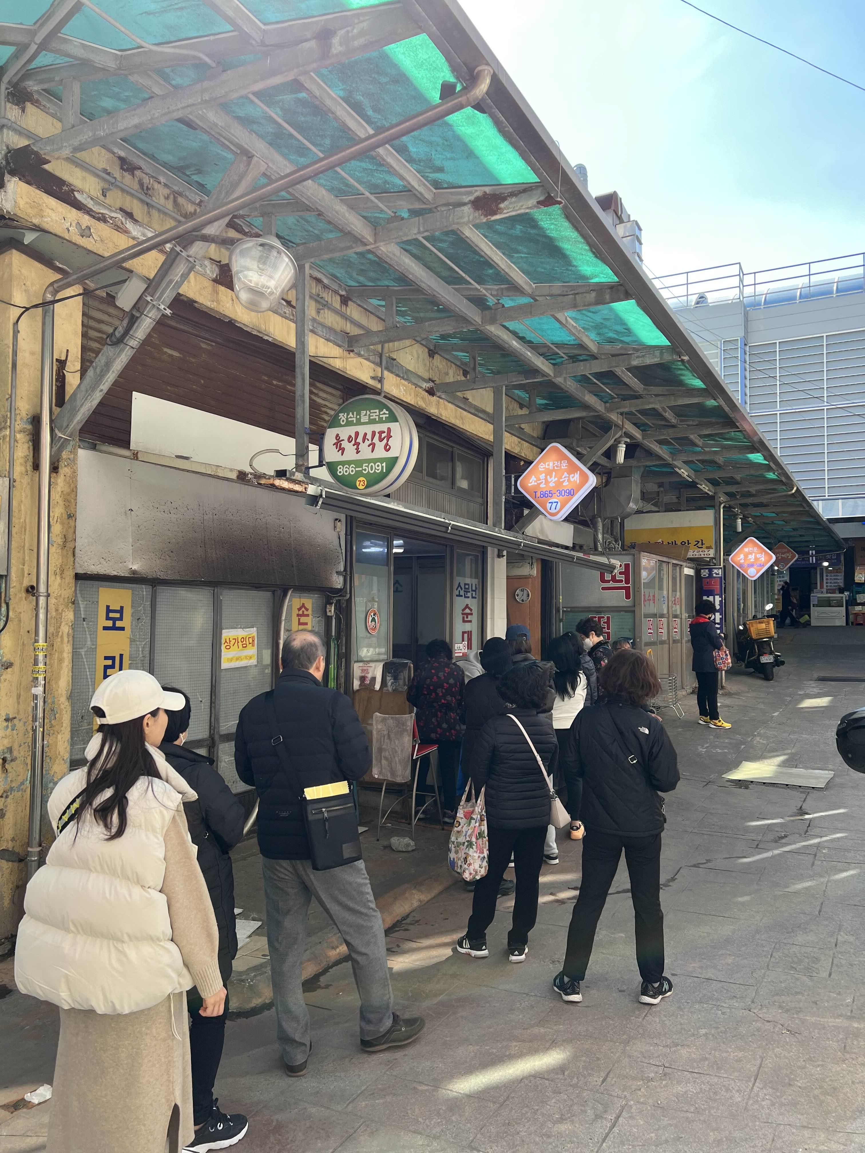 엄마식당을 방문했던 날도 소문난순대 집은 이미 줄이 길더라. 남녀노소 할 것 없이 줄을 서 기다리고 있는 것 보면 진짜 맛집이 아닐까. 소문난순대 외에도 미각칼국수와 손큰칼국수가 알려져 있고, 시장에서 멀지 않은 거리에 닭발에명가, 옛날집밥전문, 가덕도병어집, 수공미식 같은 집도 있다.