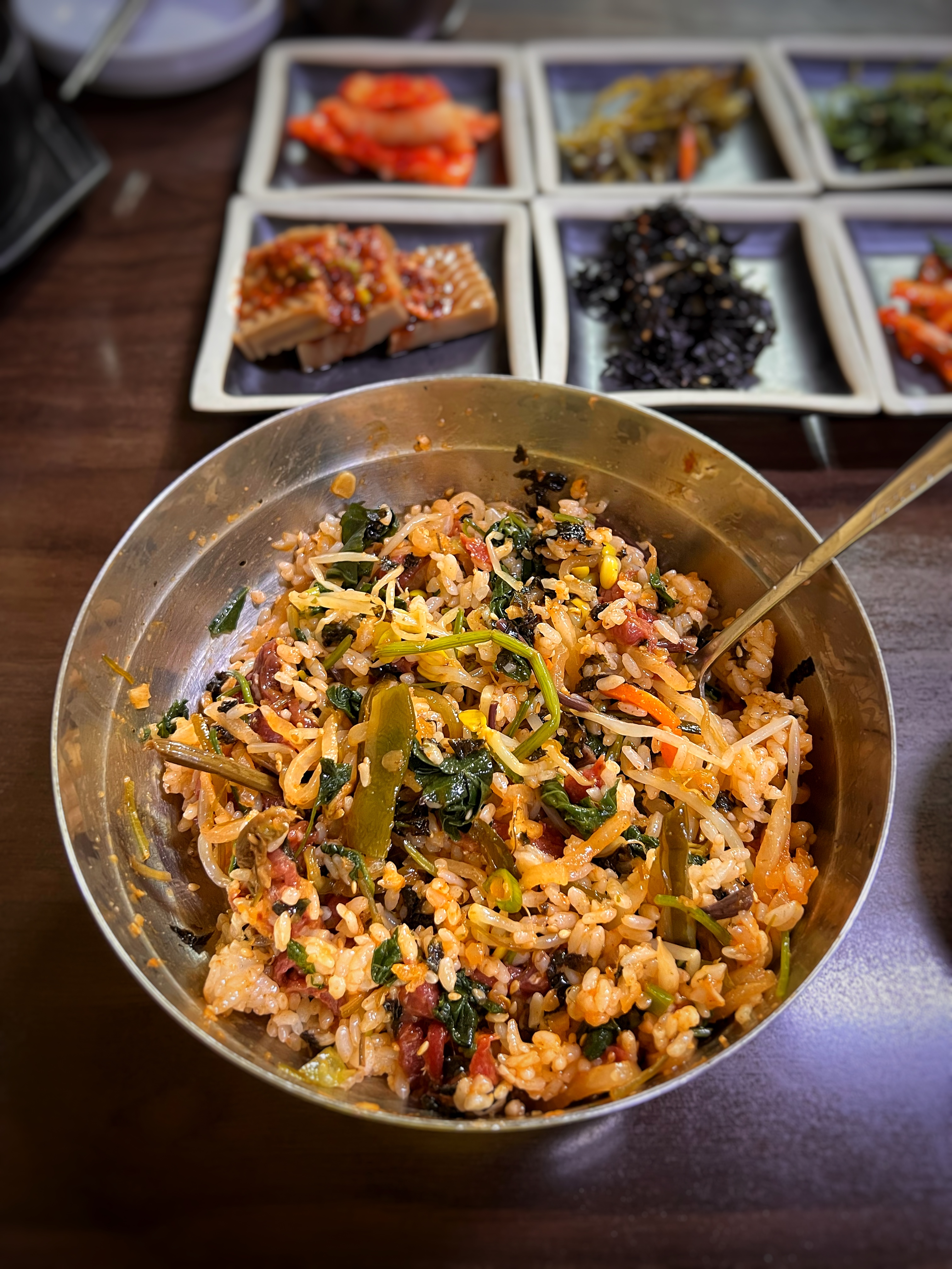 나물이 담긴 대접에 밥을 담고, 비벼준다. 기본 반찬 중에 나물과 대접의 나물은 거의 비슷하기에 나물이 부족하면 더 넣고 비벼줘도 되겠다.
